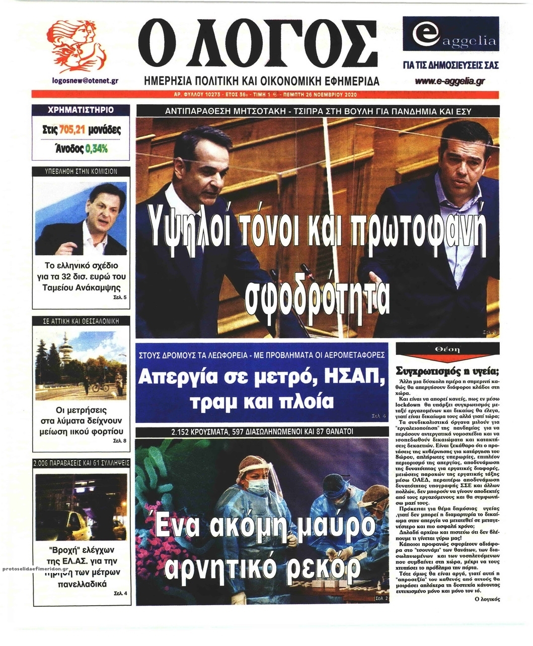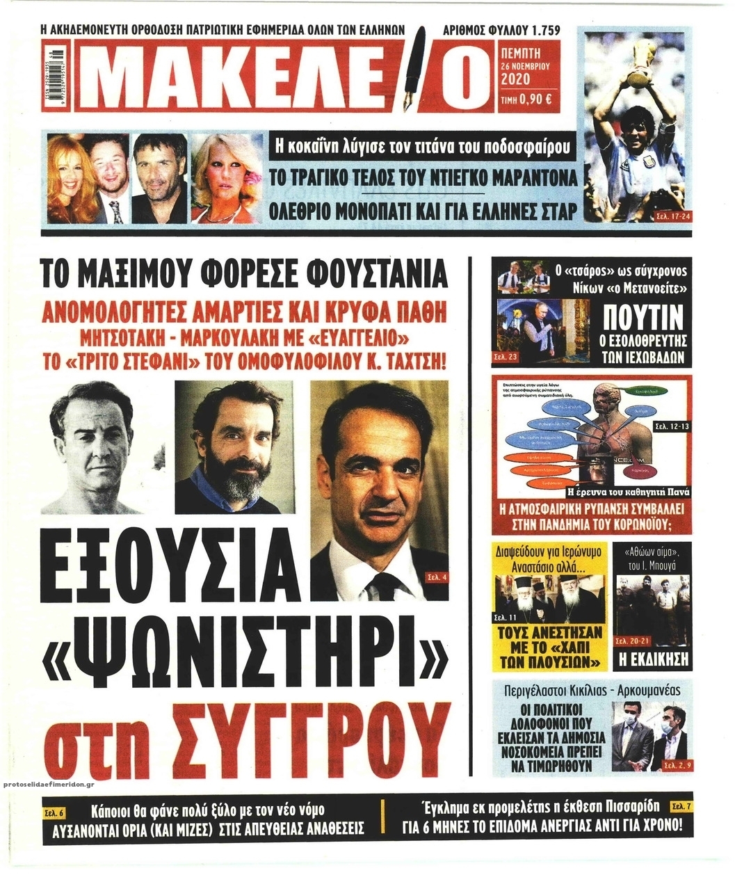 NewsMEDIASLIDER Διαβάστε όλα τα πρωτοσέλιδα των πολιτικών εφημερίδων της Πέμπτης 26 Νοεμβρίου 2020 FacebookTwitterEmailViberWhatsAppCopy URLΤυπώνω Διαβάστε όλα τα πρωτοσέλιδα των πολιτικών εφημερίδων της Πέμπτης 26 Νοεμβρίου. Πλήρης ενημέρωση με μια γρήγορη ματιά!