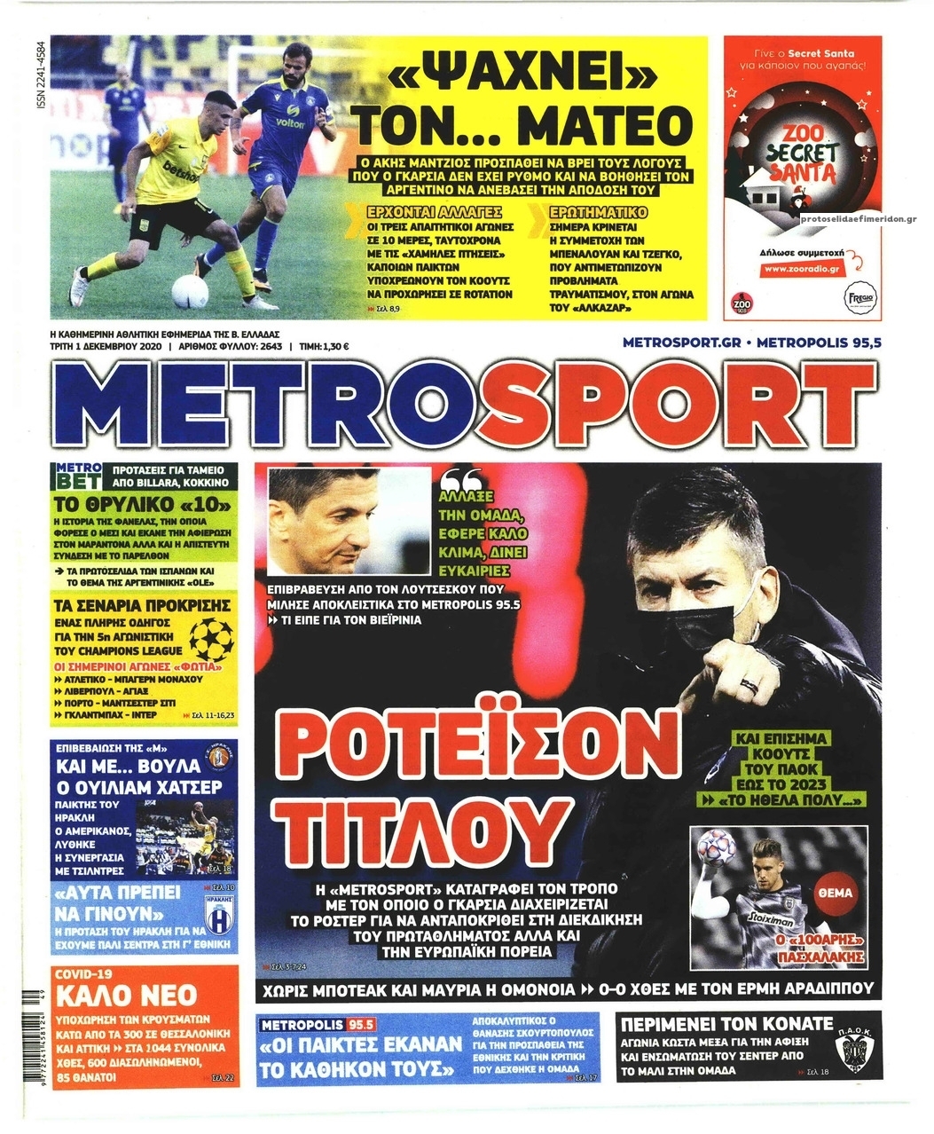 NewsMEDIA Διαβάστε όλα τα πρωτοσέλιδα των αθλητικών εφημερίδων της Τρίτης 1 Δεκεμβρίου 2020 FacebookTwitterEmailViberWhatsAppCopy URLΤυπώνω Διαβάστε όλα τα πρωτοσέλιδα των αθλητικών εφημερίδων της Τρίτης 1ης Δεκεμβρίου. Πλήρης ενημέρωση με μια γρήγορη ματιά!
