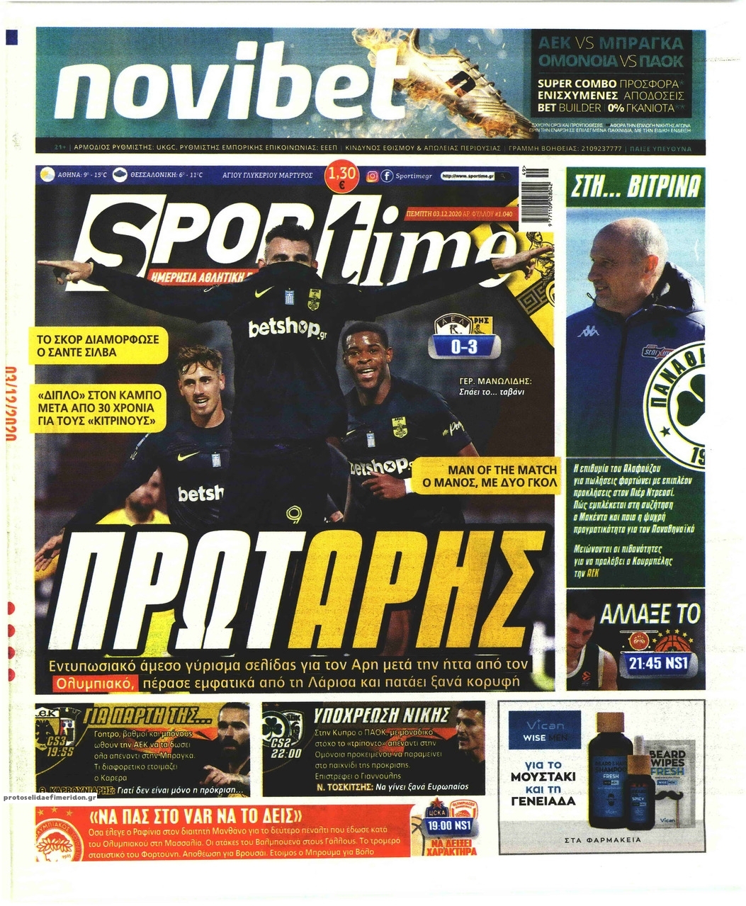 NewsMEDIA Διαβάστε όλα τα πρωτοσέλιδα των αθλητικών εφημερίδων της Πέμπτης 3 Δεκεμβρίου 2020 FacebookXEmailViberWhatsAppCopy URLΤυπώνω Διαβάστε όλα τα πρωτοσέλιδα των αθλητικών εφημερίδων της Πέμπτης 3 Δεκεμβρίου. Πλήρης ενημέρωση με μια γρήγορη ματιά!