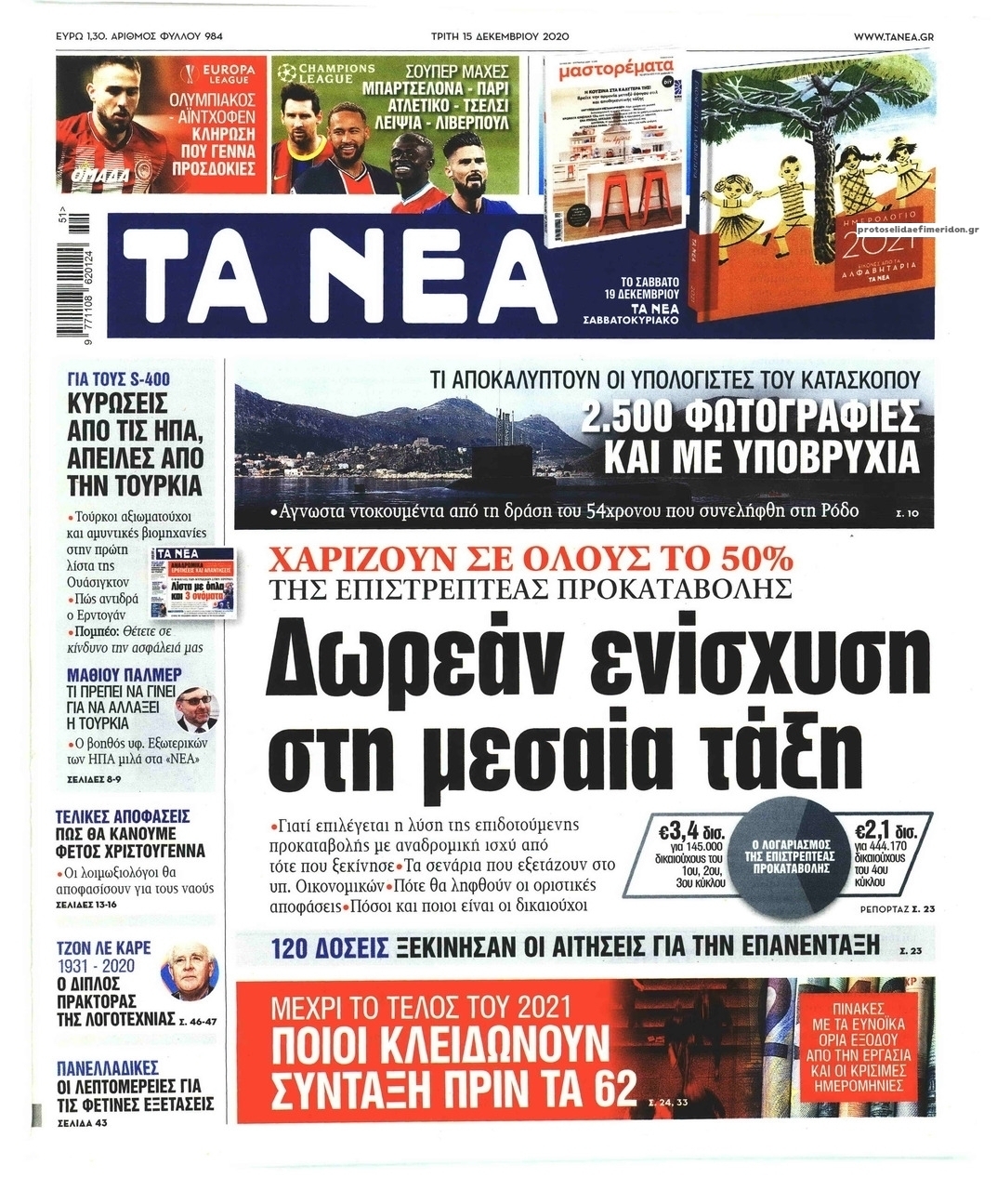 NewsMEDIASLIDER Διαβάστε όλα τα πρωτοσέλιδα των πολιτικών εφημερίδων της Τρίτης 15 Δεκεμβρίου 2020 FacebookTwitterEmailViberWhatsAppCopy URLΤυπώνω Διαβάστε όλα τα πρωτοσέλιδα των πολιτικών εφημερίδων της Τρίτης 15 Δεκεμβρίου. Πλήρης ενημέρωση με μια γρήγορη ματιά!