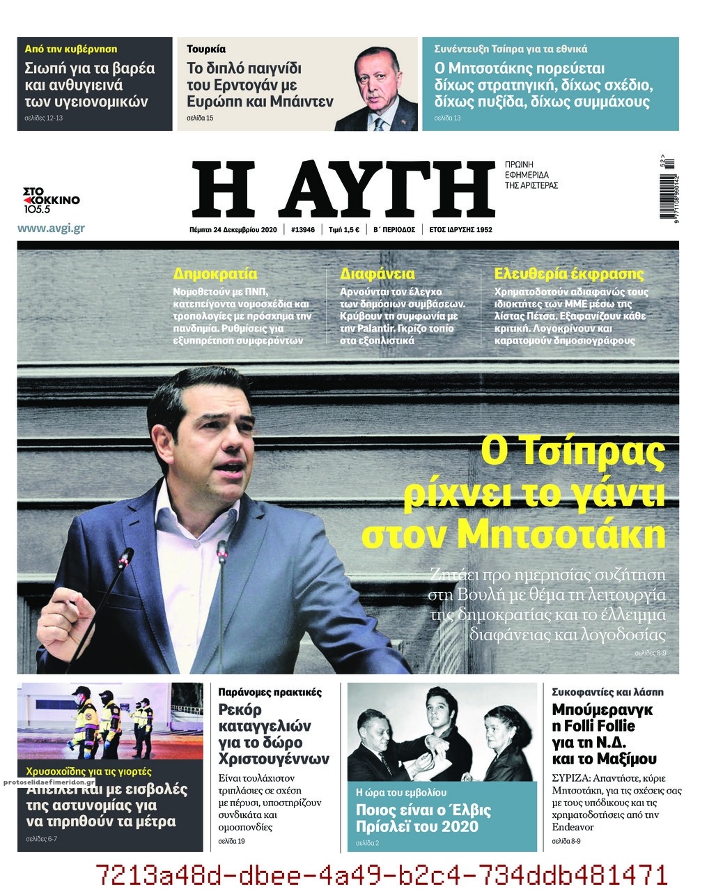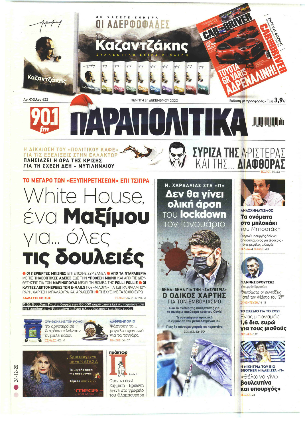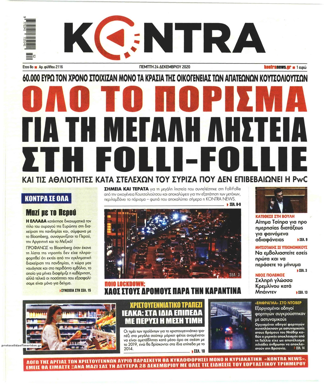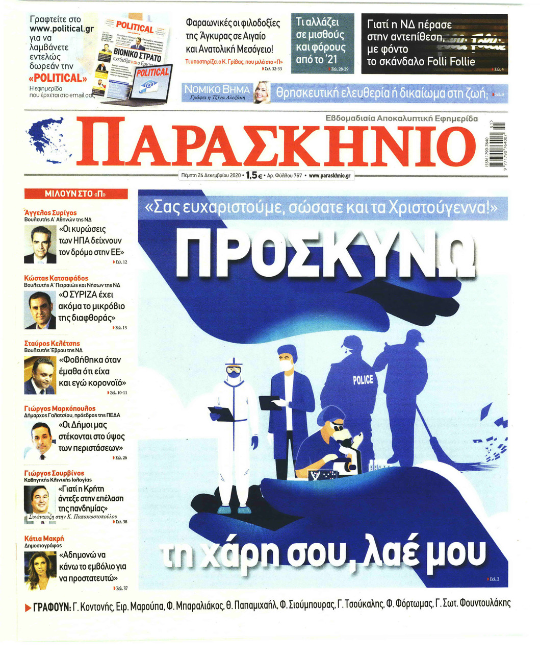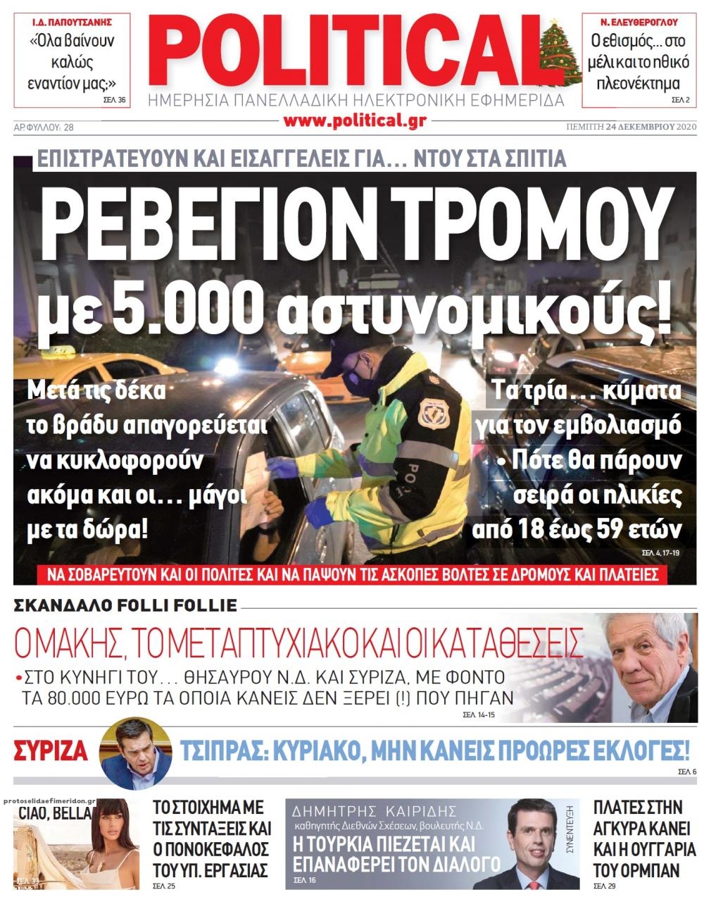 NewsMEDIA Διαβάστε όλα τα πρωτοσέλιδα των πολιτικών εφημερίδων της Πέμπτης 24 Δεκεμβρίου 2020 FacebookTwitterEmailViberWhatsAppCopy URLΤυπώνω Διαβάστε όλα τα πρωτοσέλιδα των πολιτικών εφημερίδων της Πέμπτης 24 Δεκεμβρίου. Πλήρης ενημέρωση με μια γρήγορη ματιά!