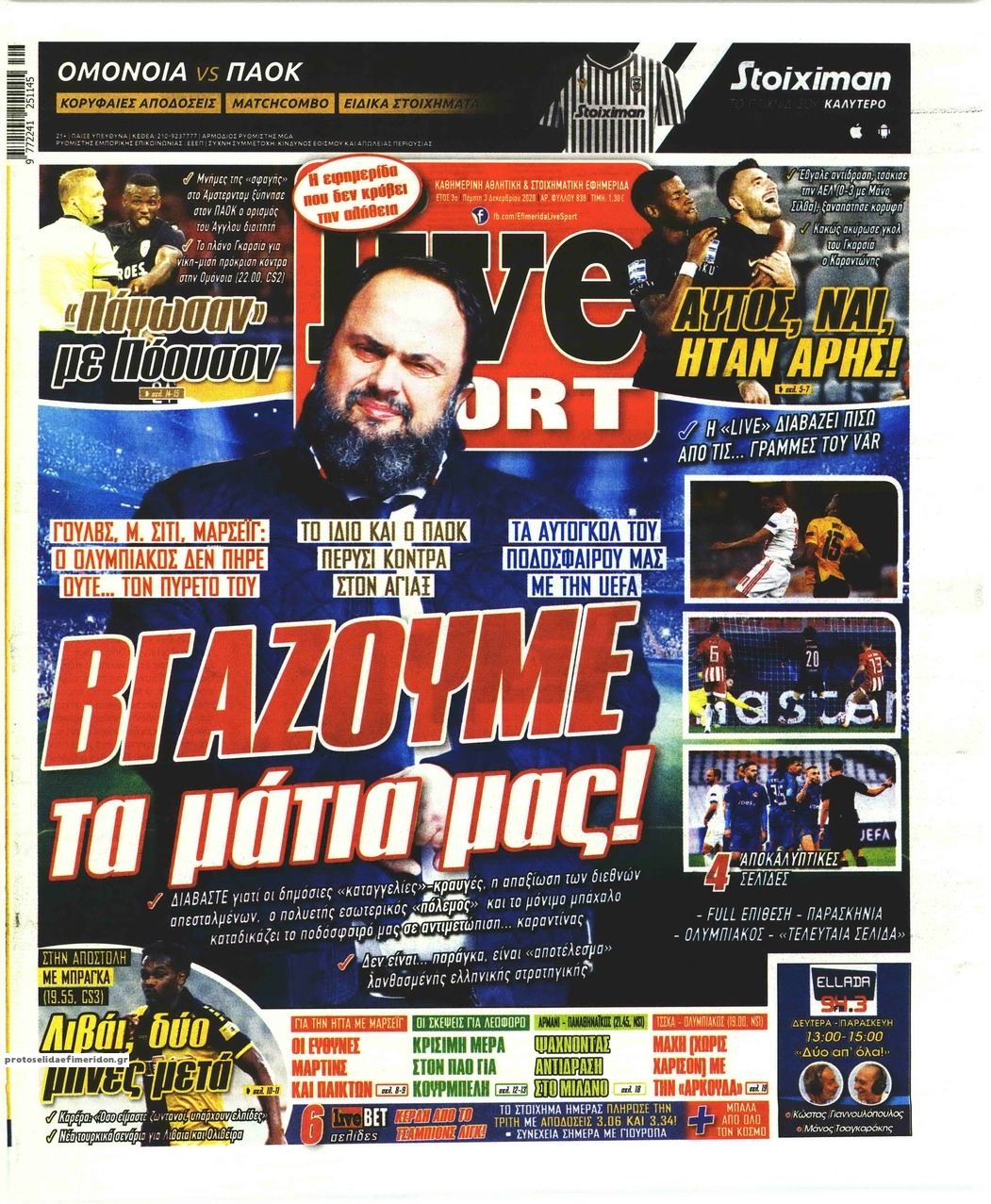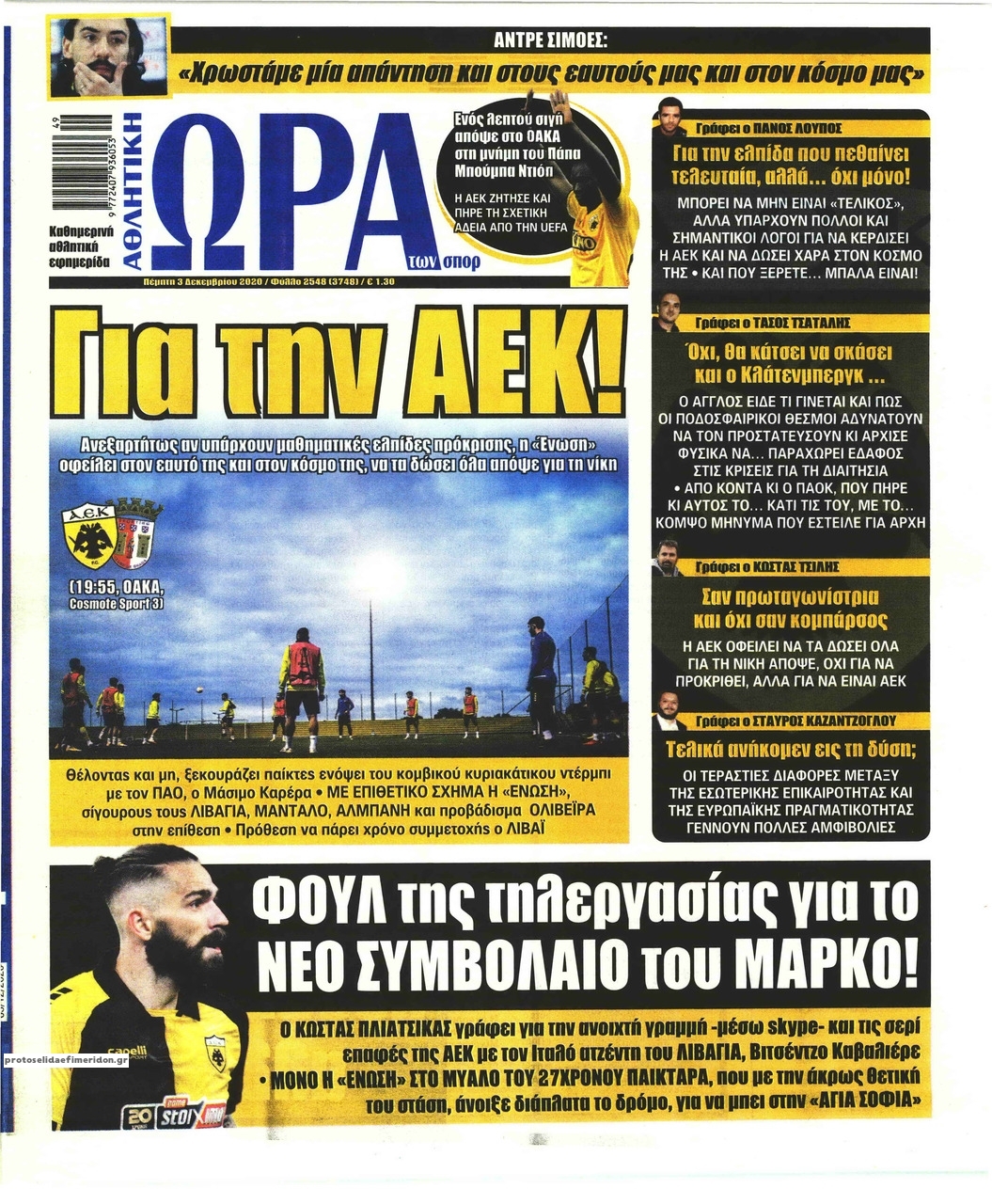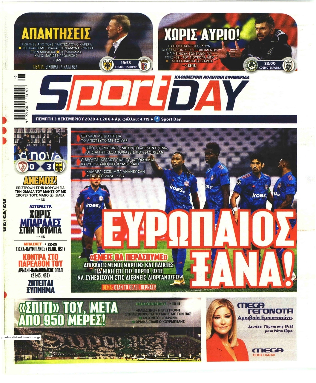 NewsMEDIA Διαβάστε όλα τα πρωτοσέλιδα των αθλητικών εφημερίδων της Πέμπτης 3 Δεκεμβρίου 2020 FacebookXEmailViberWhatsAppCopy URLΤυπώνω Διαβάστε όλα τα πρωτοσέλιδα των αθλητικών εφημερίδων της Πέμπτης 3 Δεκεμβρίου. Πλήρης ενημέρωση με μια γρήγορη ματιά!
