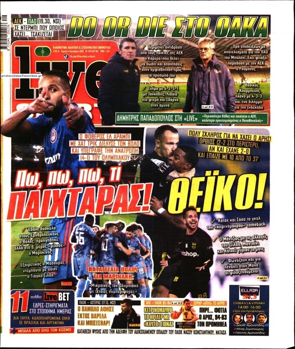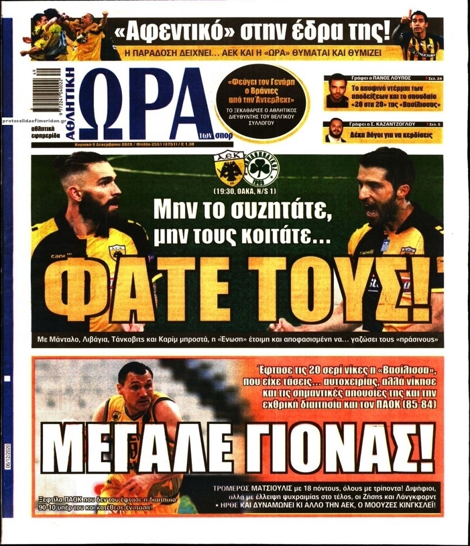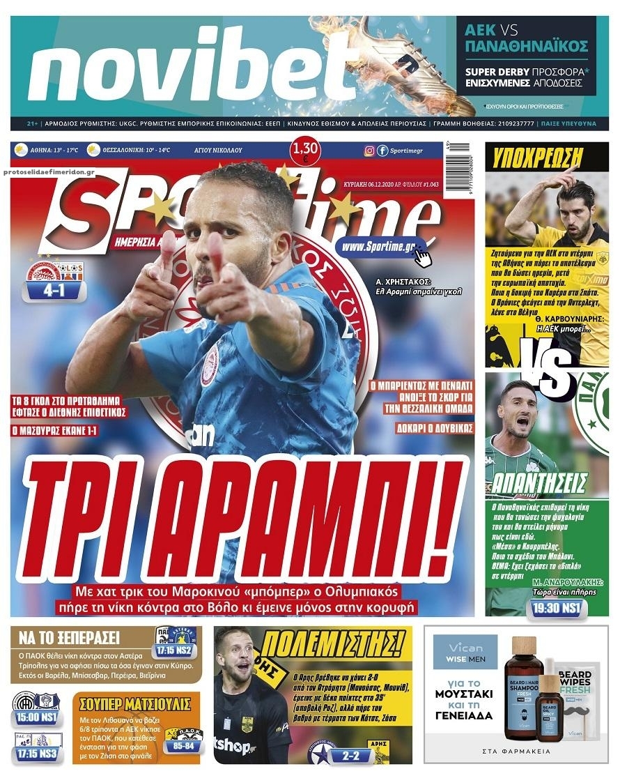 NewsMEDIA Διαβάστε όλα τα πρωτοσέλιδα των αθλητικών εφημερίδων της Κυριακής 6 Δεκεμβρίου 2020 FacebookTwitterEmailViberWhatsAppCopy URLΤυπώνω Διαβάστε όλα τα πρωτοσέλιδα των αθλητικών εφημερίδων της Κυριακής 6 Δεκεμβρίου. Πλήρης ενημέρωση με μια γρήγορη ματιά!