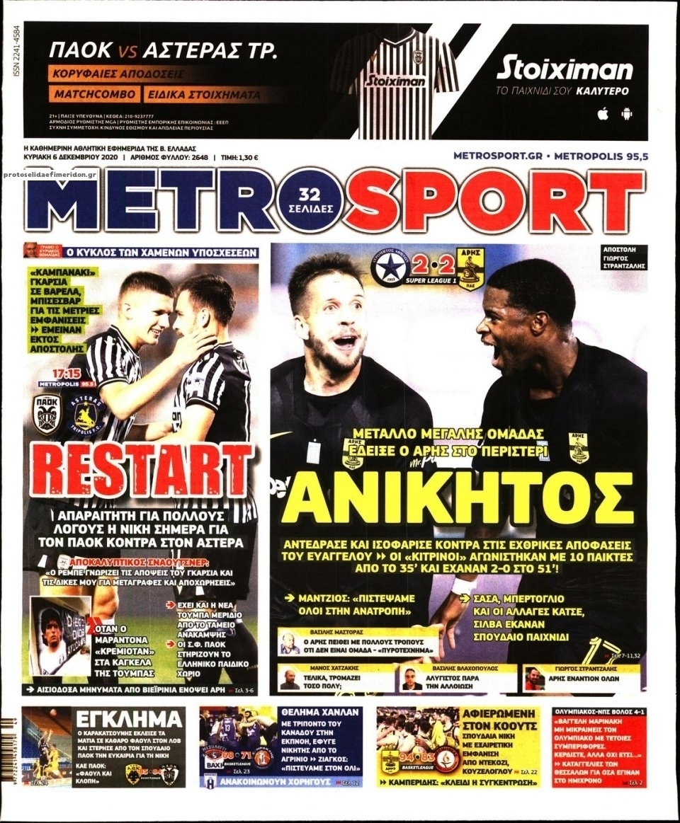 NewsMEDIA Διαβάστε όλα τα πρωτοσέλιδα των αθλητικών εφημερίδων της Κυριακής 6 Δεκεμβρίου 2020 FacebookXEmailViberWhatsAppCopy URLΤυπώνω Διαβάστε όλα τα πρωτοσέλιδα των αθλητικών εφημερίδων της Κυριακής 6 Δεκεμβρίου. Πλήρης ενημέρωση με μια γρήγορη ματιά!