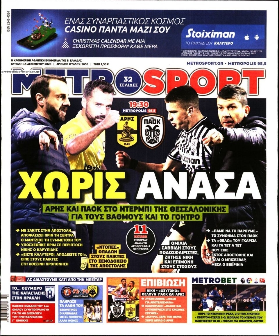 NewsMEDIA Διαβάστε όλα τα πρωτοσέλιδα των αθλητικών εφημερίδων της Κυριακής 13 Δεκεμβρίου 2020 FacebookTwitterEmailViberWhatsAppCopy URLΤυπώνω Διαβάστε όλα τα πρωτοσέλιδα των αθλητικών εφημερίδων της Κυριακής 13 Δεκεμβρίου. Πλήρης ενημέρωση με μια γρήγορη ματιά!