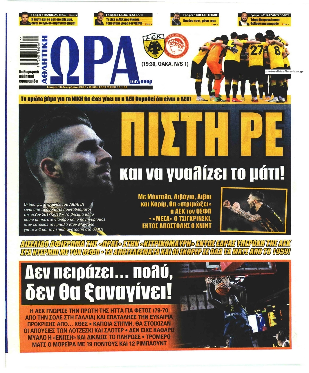 NewsMEDIA Διαβάστε όλα τα πρωτοσέλιδα των αθλητικών εφημερίδων της Τετάρτης 16 Δεκεμβρίου 2020 FacebookTwitterEmailViberWhatsAppCopy URLΤυπώνω Διαβάστε όλα τα πρωτοσέλιδα των αθλητικών εφημερίδων της Τετάρτης 9 Δεκεμβρίου. Πλήρης ενημέρωση με μια γρήγορη ματιά!