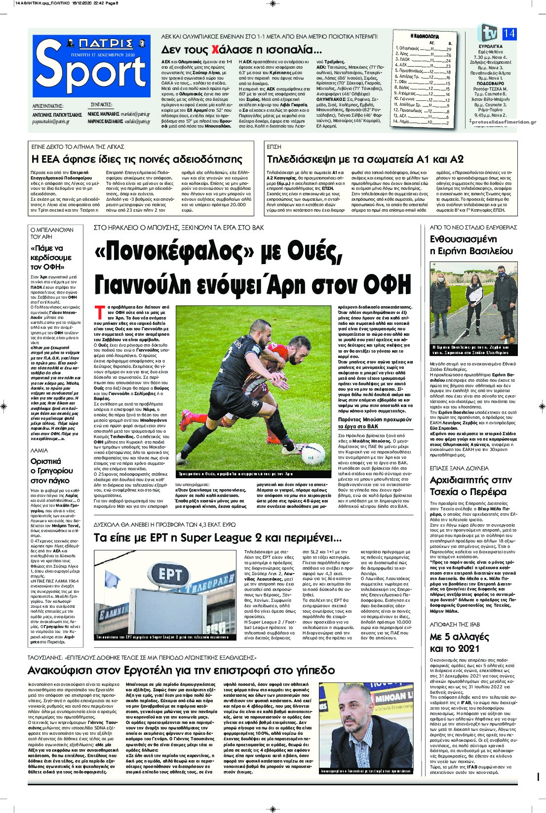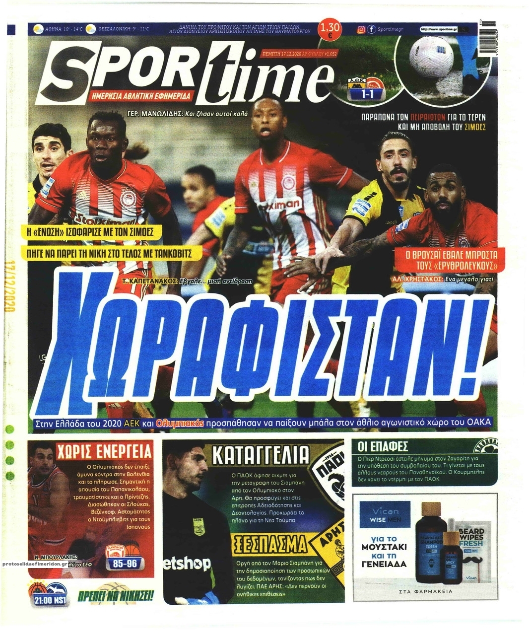 NewsMEDIA Διαβάστε όλα τα πρωτοσέλιδα των αθλητικών εφημερίδων της Πέμπτης 17 Δεκεμβρίου 2020 FacebookXEmailViberWhatsAppCopy URLΤυπώνω Διαβάστε όλα τα πρωτοσέλιδα των αθλητικών εφημερίδων της Πέμπτης 17 Δεκεμβρίου. Πλήρης ενημέρωση με μια γρήγορη ματιά!
