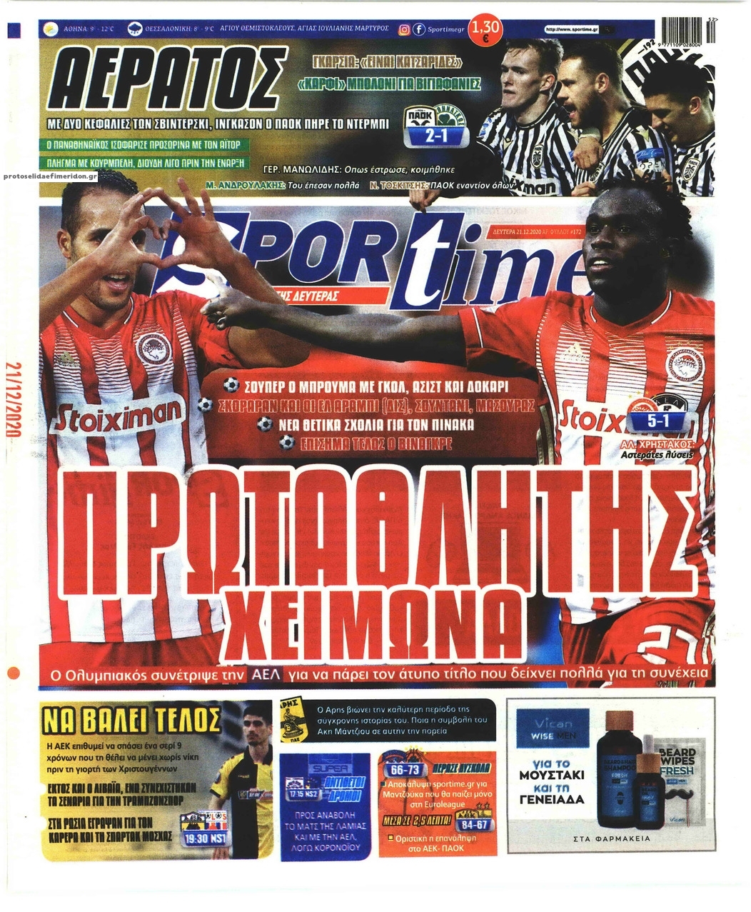 NewsMEDIA Διαβάστε όλα τα πρωτοσέλιδα των αθλητικών εφημερίδων της Δευτέρας 21 Δεκεμβρίου 2020 FacebookXEmailViberWhatsAppCopy URLΤυπώνω Διαβάστε όλα τα πρωτοσέλιδα των αθλητικών εφημερίδων της Δευτέρας 21 Δεκεμβρίου. Πλήρης ενημέρωση με μια γρήγορη ματιά!