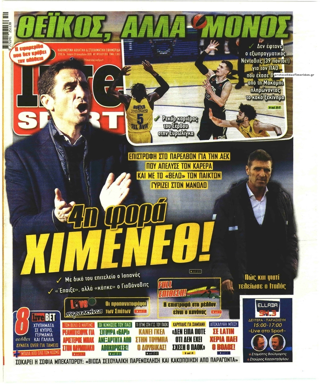 NewsMEDIA Διαβάστε όλα τα πρωτοσέλιδα των αθλητικών εφημερίδων της Τετάρτης 23 Δεκεμβρίου 2020 FacebookTwitterEmailViberWhatsAppCopy URLΤυπώνω Διαβάστε όλα τα πρωτοσέλιδα των αθλητικών εφημερίδων της Τετάρτης 23 Δεκεμβρίου. Πλήρης ενημέρωση με μια γρήγορη ματιά!