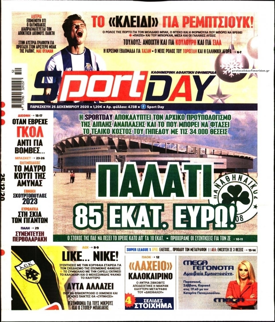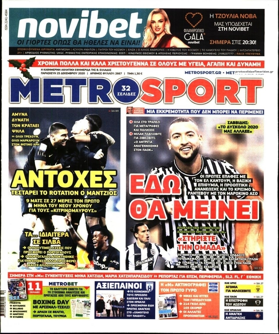 NewsMEDIA Διαβάστε όλα τα πρωτοσέλιδα των αθλητικών εφημερίδων τoυ Σαββατοκύριακου 27 Δεκεμβρίου 2020 FacebookTwitterEmailViberWhatsAppCopy URLΤυπώνω Διαβάστε όλα τα πρωτοσέλιδα των αθλητικών εφημερίδων του Σαββάτου 26 και της Κυριακής 27 Δεκεμβρίου. Πλήρης ενημέρωση με μια γρήγορη ματιά!