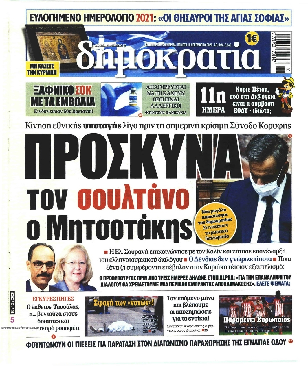 NewsMEDIASLIDER Διαβάστε όλα τα πρωτοσέλιδα των πολιτικών εφημερίδων της Πέμπτης 10 Δεκεμβρίου 2020 FacebookTwitterEmailViberWhatsAppCopy URLΤυπώνω Διαβάστε όλα τα πρωτοσέλιδα των πολιτικών εφημερίδων της Πέμπτης 10 Δεκεμβρίου. Πλήρης ενημέρωση με μια γρήγορη ματιά!