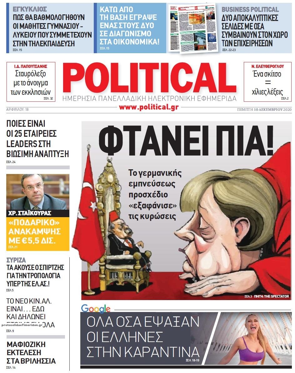 NewsMEDIASLIDER Διαβάστε όλα τα πρωτοσέλιδα των πολιτικών εφημερίδων της Πέμπτης 10 Δεκεμβρίου 2020 FacebookXEmailViberWhatsAppCopy URLΤυπώνω Διαβάστε όλα τα πρωτοσέλιδα των πολιτικών εφημερίδων της Πέμπτης 10 Δεκεμβρίου. Πλήρης ενημέρωση με μια γρήγορη ματιά!