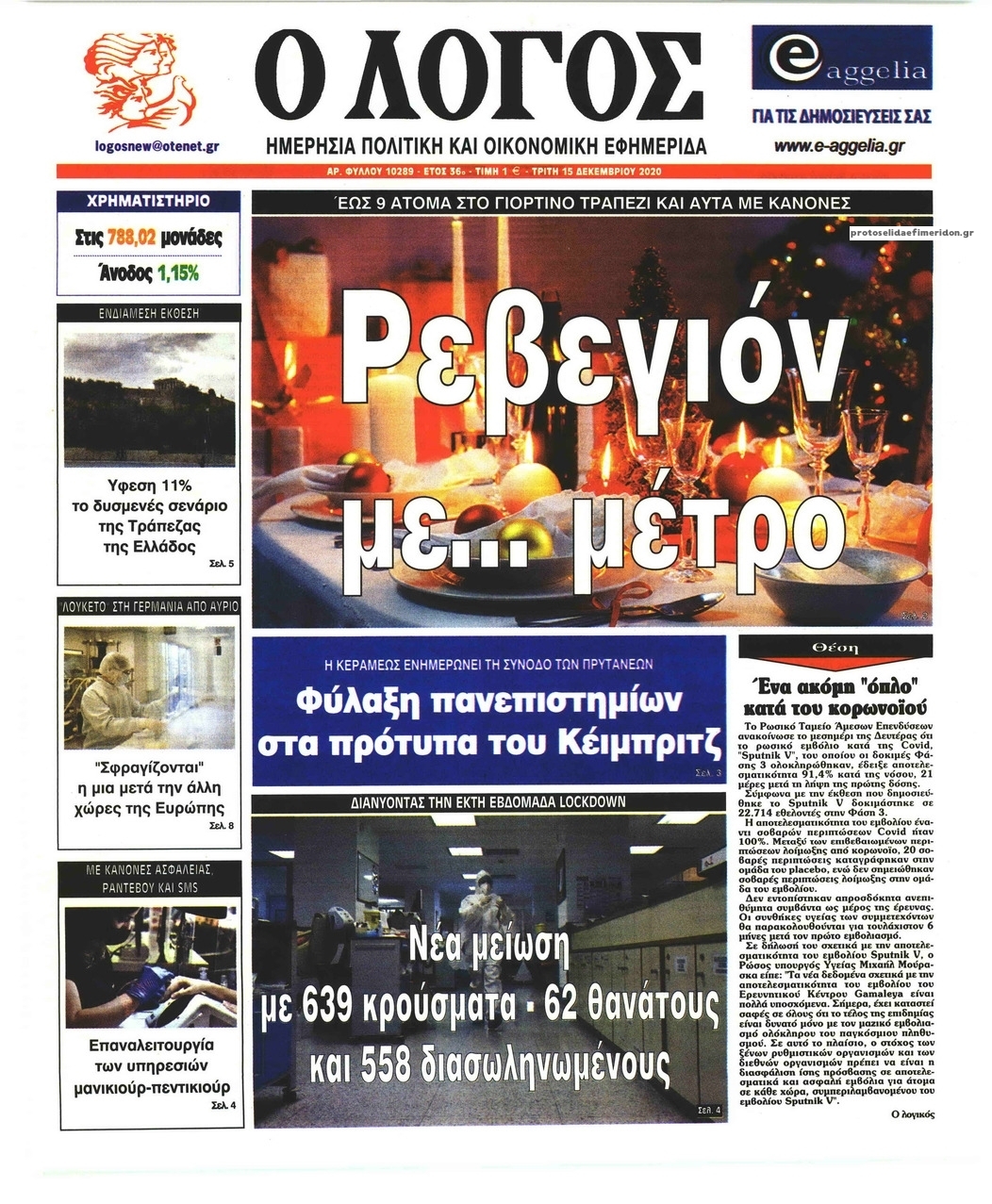 NewsMEDIASLIDER Διαβάστε όλα τα πρωτοσέλιδα των πολιτικών εφημερίδων της Τρίτης 15 Δεκεμβρίου 2020 FacebookTwitterEmailViberWhatsAppCopy URLΤυπώνω Διαβάστε όλα τα πρωτοσέλιδα των πολιτικών εφημερίδων της Τρίτης 15 Δεκεμβρίου. Πλήρης ενημέρωση με μια γρήγορη ματιά!