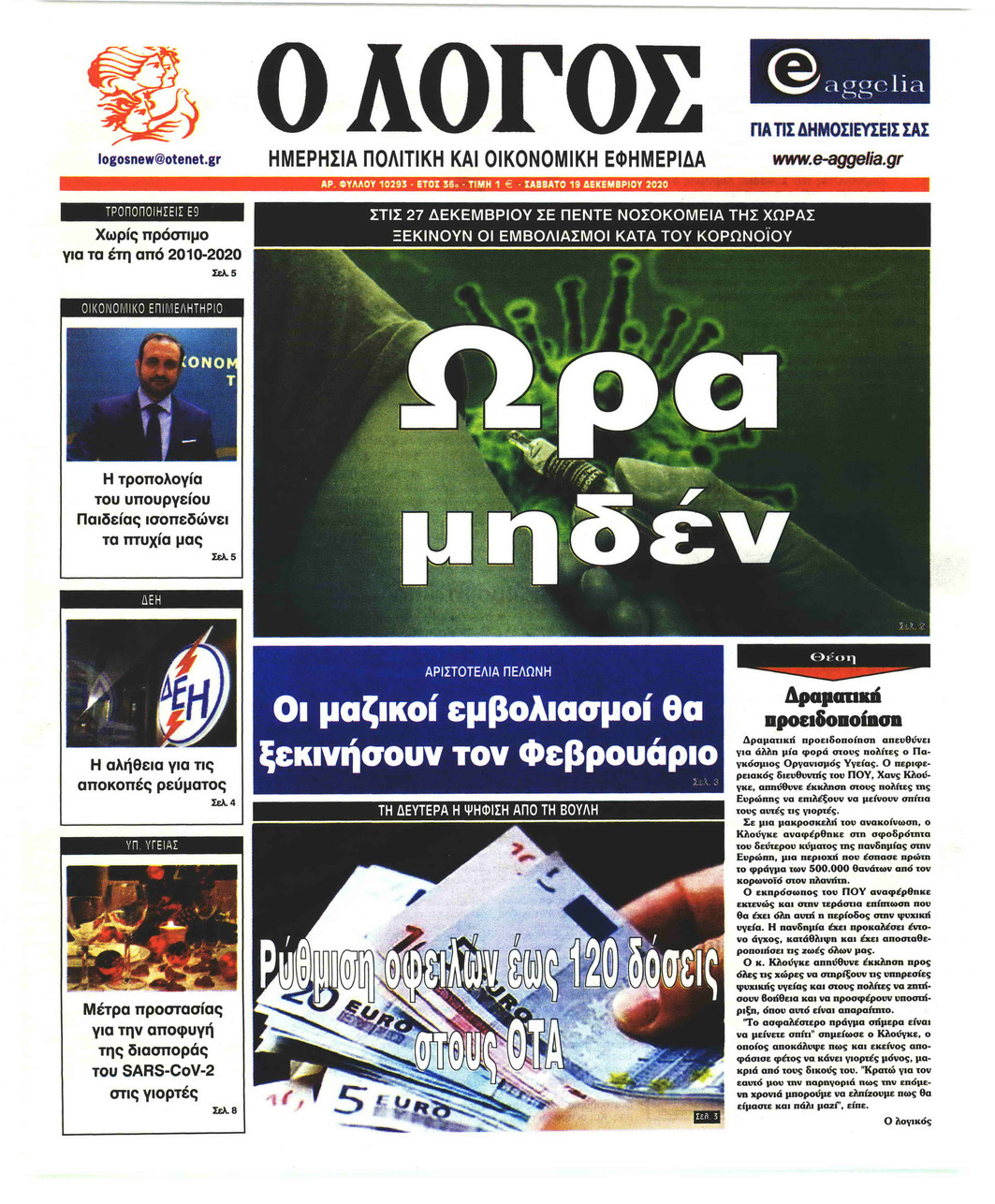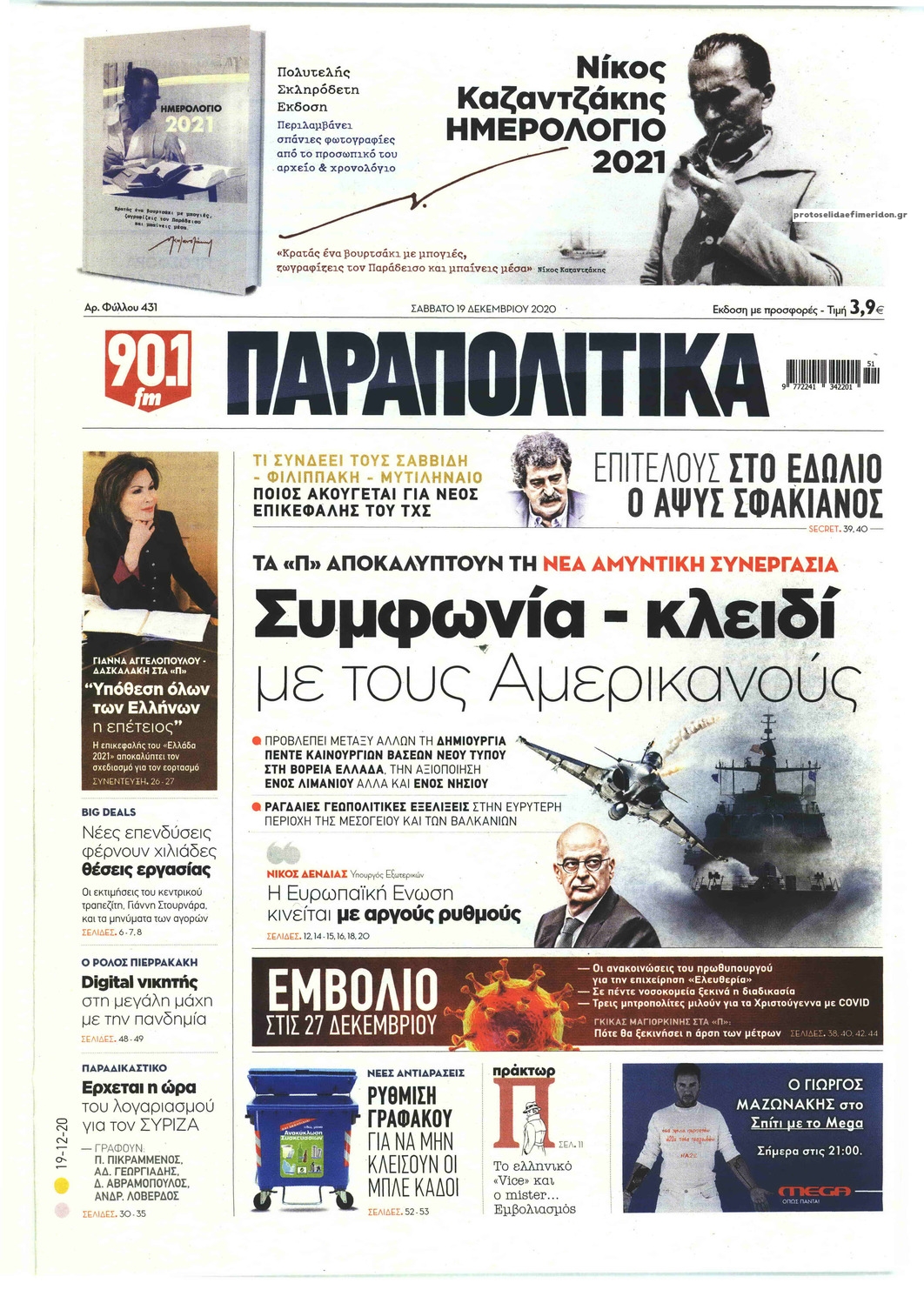 NewsMEDIASLIDER Διαβάστε όλα τα πρωτοσέλιδα των πολιτικών εφημερίδων του Σαββάτου 19 Δεκεμβρίου 2020 FacebookTwitterEmailViberWhatsAppCopy URLΤυπώνω Διαβάστε όλα τα πρωτοσέλιδα των πολιτικών εφημερίδων του Σαββάτου 19 Δεκεμβρίου. Πλήρης ενημέρωση με μια γρήγορη ματιά!