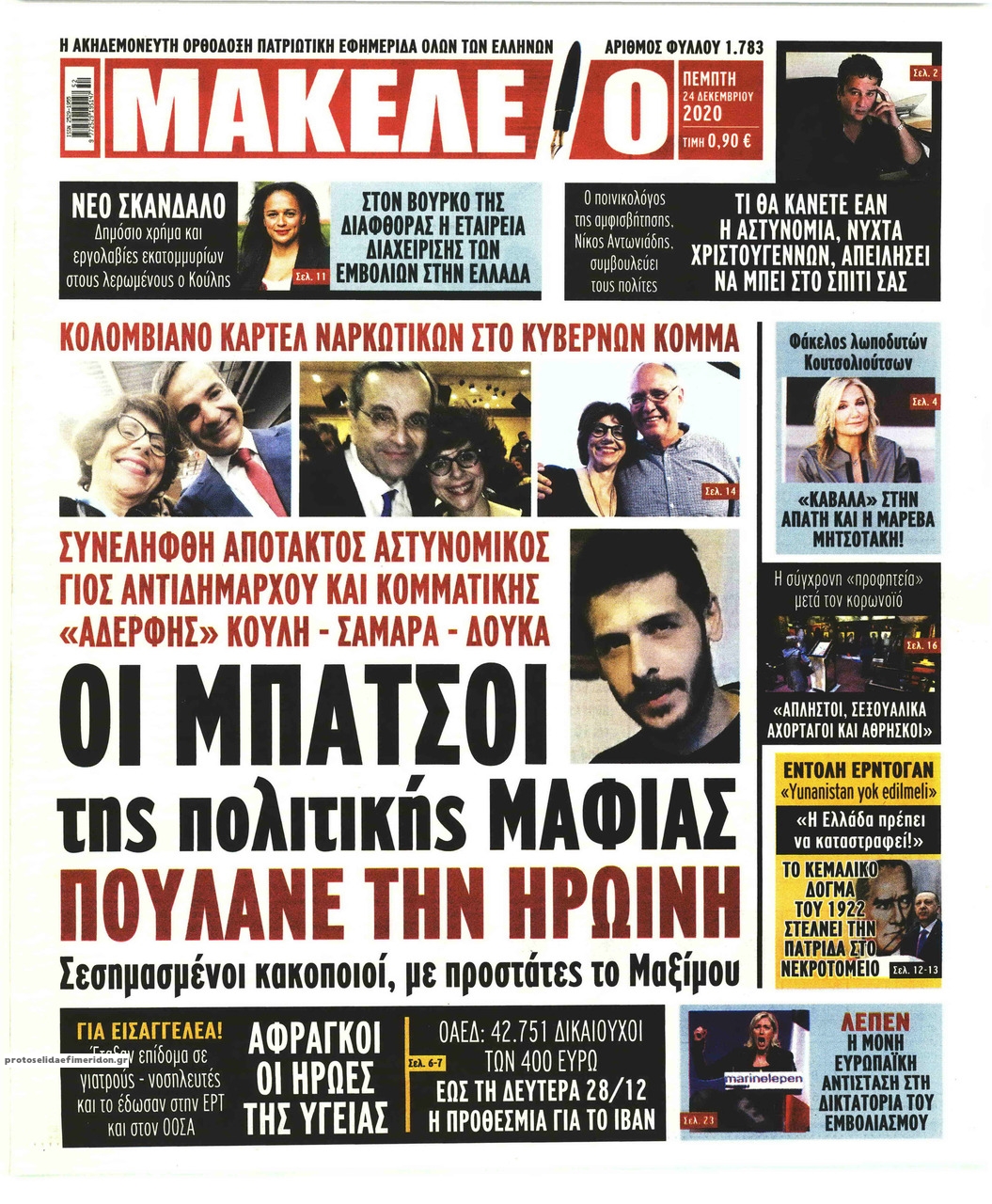 NewsMEDIA Διαβάστε όλα τα πρωτοσέλιδα των πολιτικών εφημερίδων της Πέμπτης 24 Δεκεμβρίου 2020 FacebookTwitterEmailViberWhatsAppCopy URLΤυπώνω Διαβάστε όλα τα πρωτοσέλιδα των πολιτικών εφημερίδων της Πέμπτης 24 Δεκεμβρίου. Πλήρης ενημέρωση με μια γρήγορη ματιά!