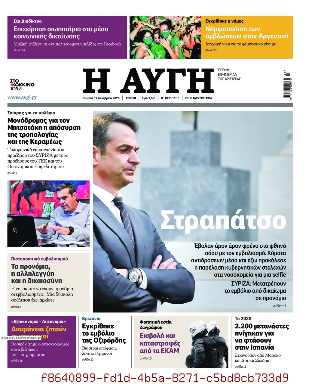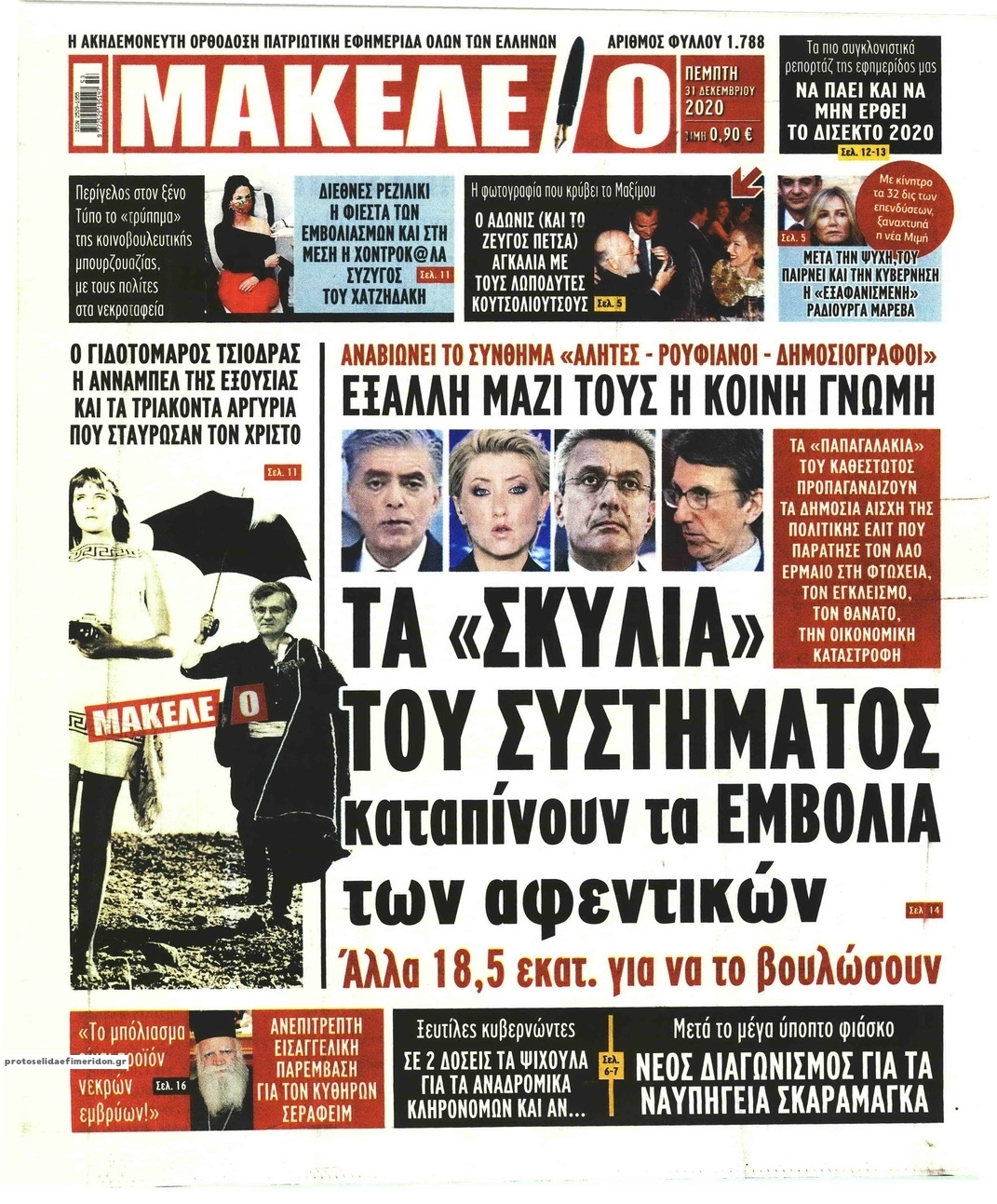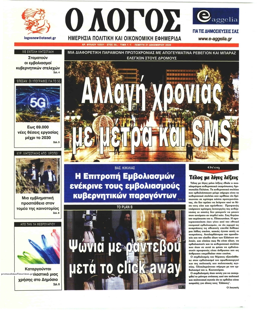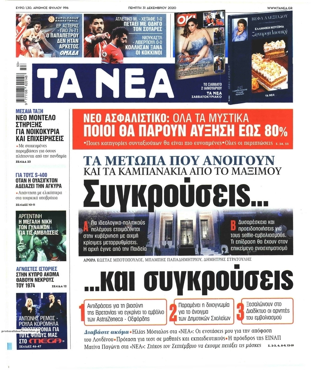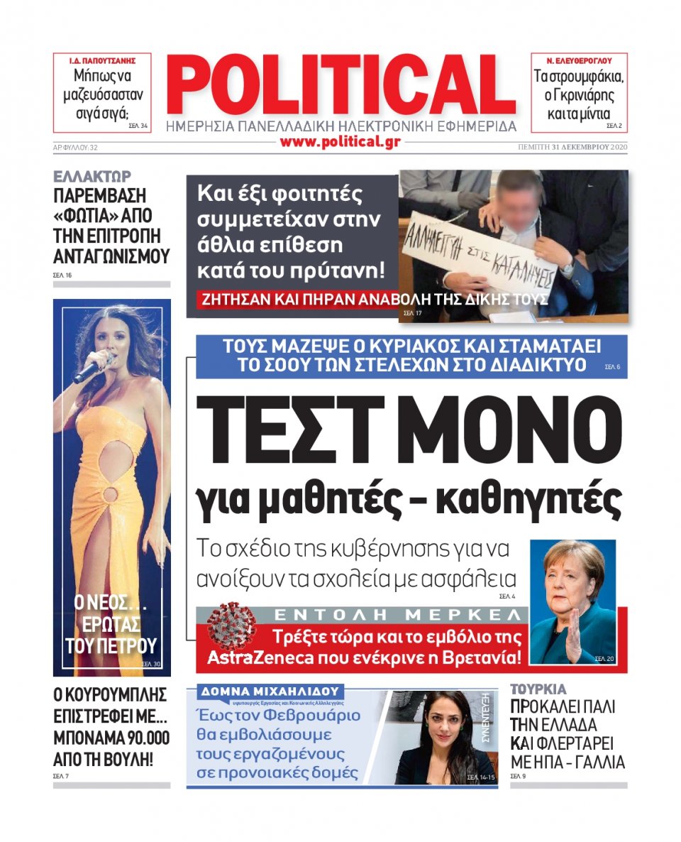NewsMEDIASLIDER Διαβάστε όλα τα πρωτοσέλιδα των πολιτικών εφημερίδων της Πέμπτης 31 Δεκεμβρίου 2020 FacebookXEmailViberWhatsAppCopy URLΤυπώνω Διαβάστε όλα τα πρωτοσέλιδα των πολιτικών εφημερίδων της Πέμπτης 31 Δεκεμβρίου. Πλήρης ενημέρωση με μια γρήγορη ματιά!