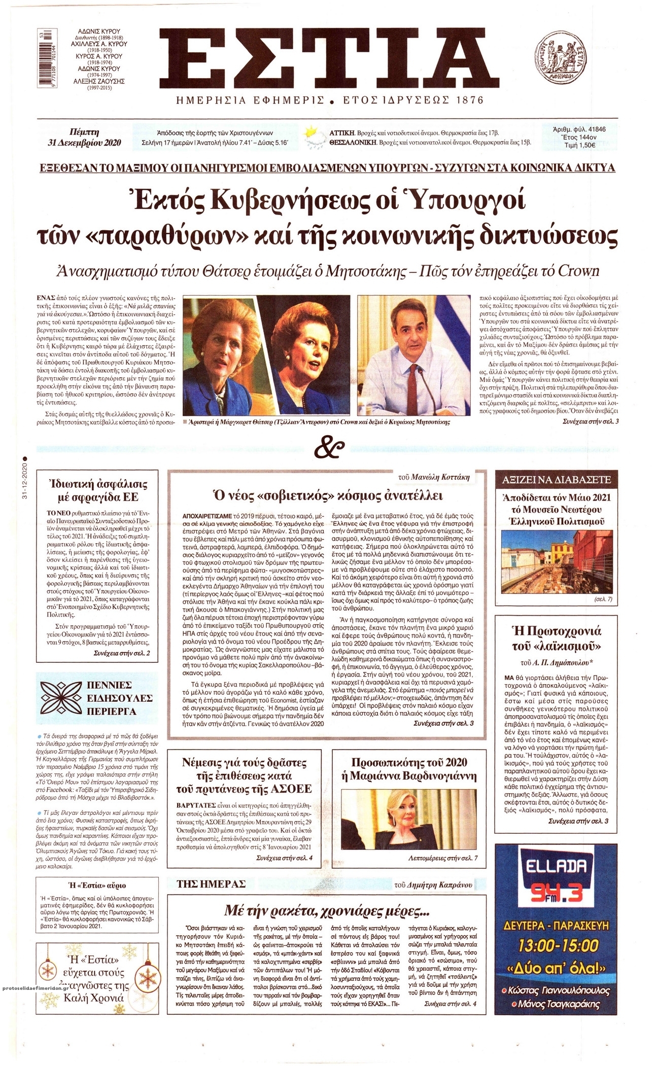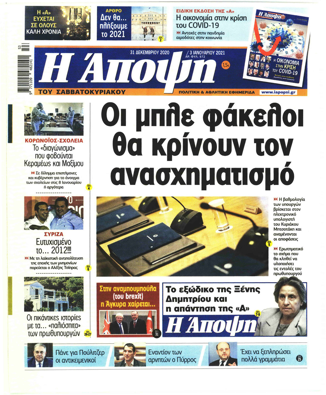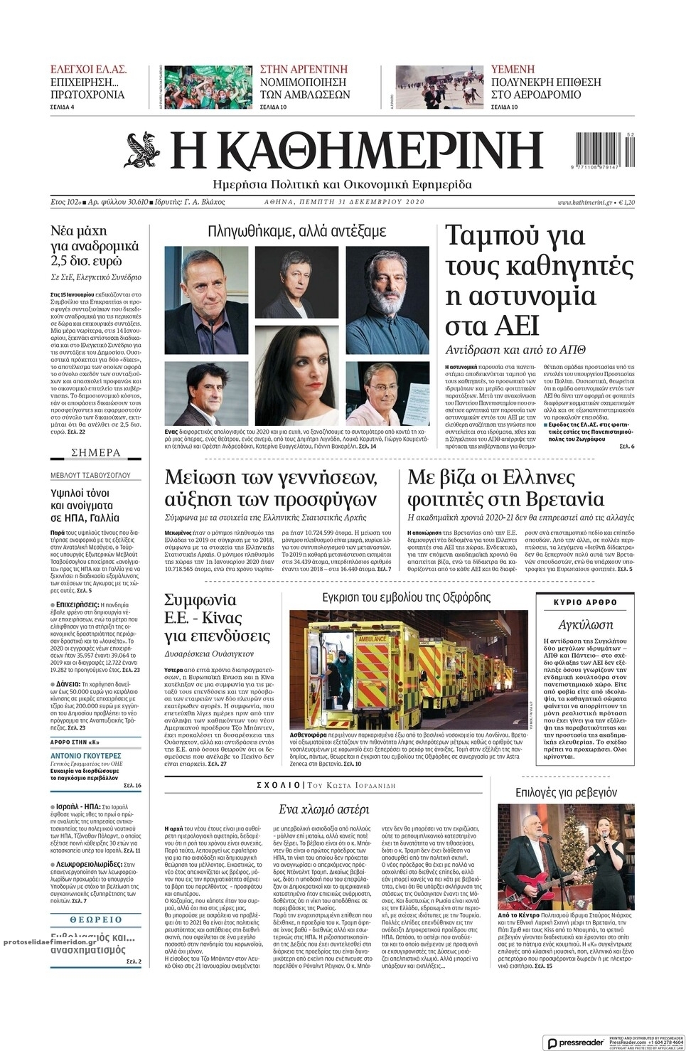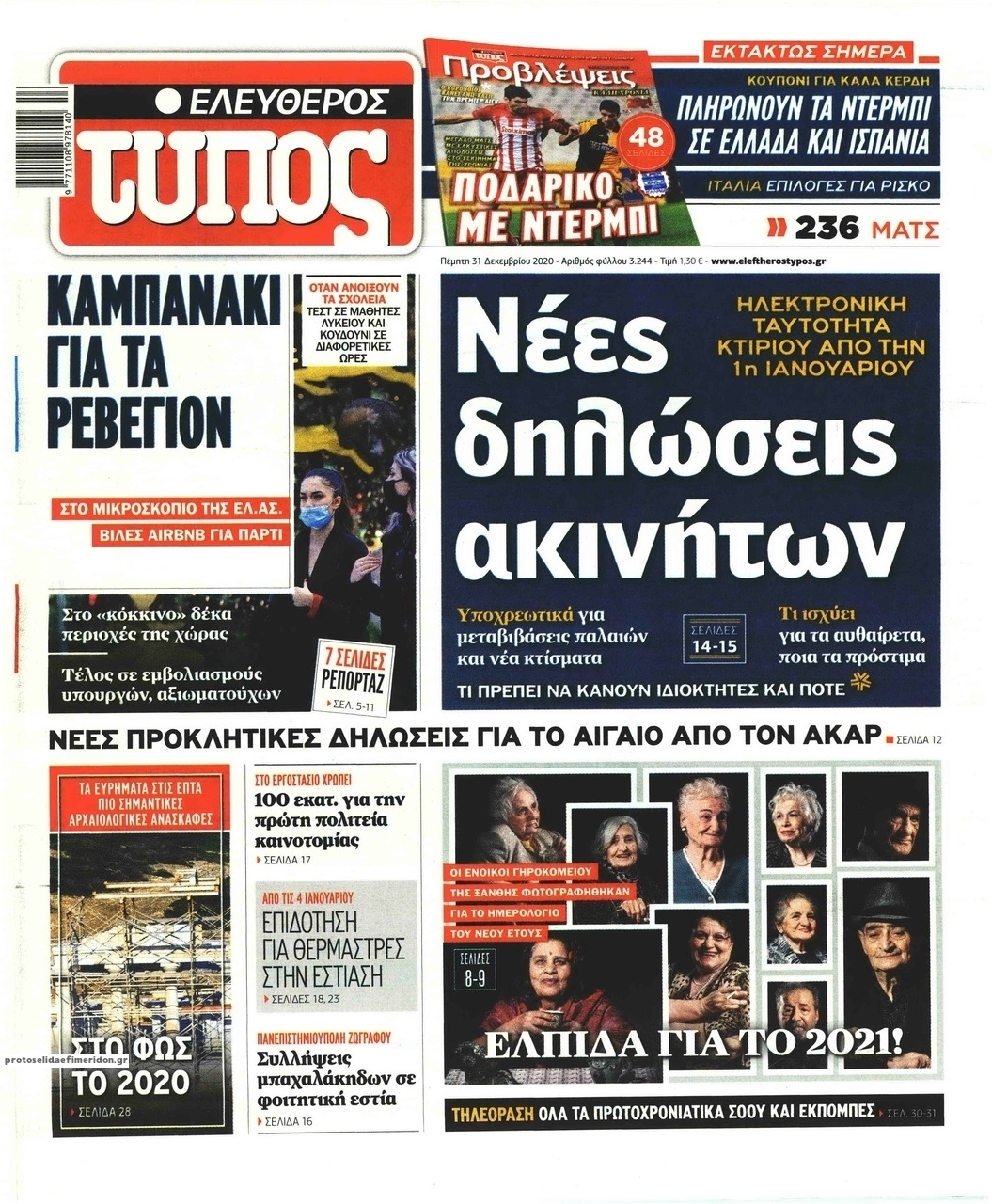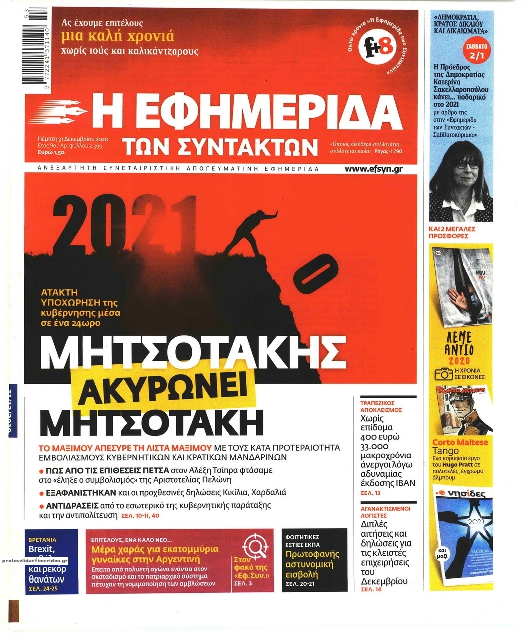 NewsMEDIASLIDER Διαβάστε όλα τα πρωτοσέλιδα των πολιτικών εφημερίδων της Πέμπτης 31 Δεκεμβρίου 2020 FacebookXEmailViberWhatsAppCopy URLΤυπώνω Διαβάστε όλα τα πρωτοσέλιδα των πολιτικών εφημερίδων της Πέμπτης 31 Δεκεμβρίου. Πλήρης ενημέρωση με μια γρήγορη ματιά!