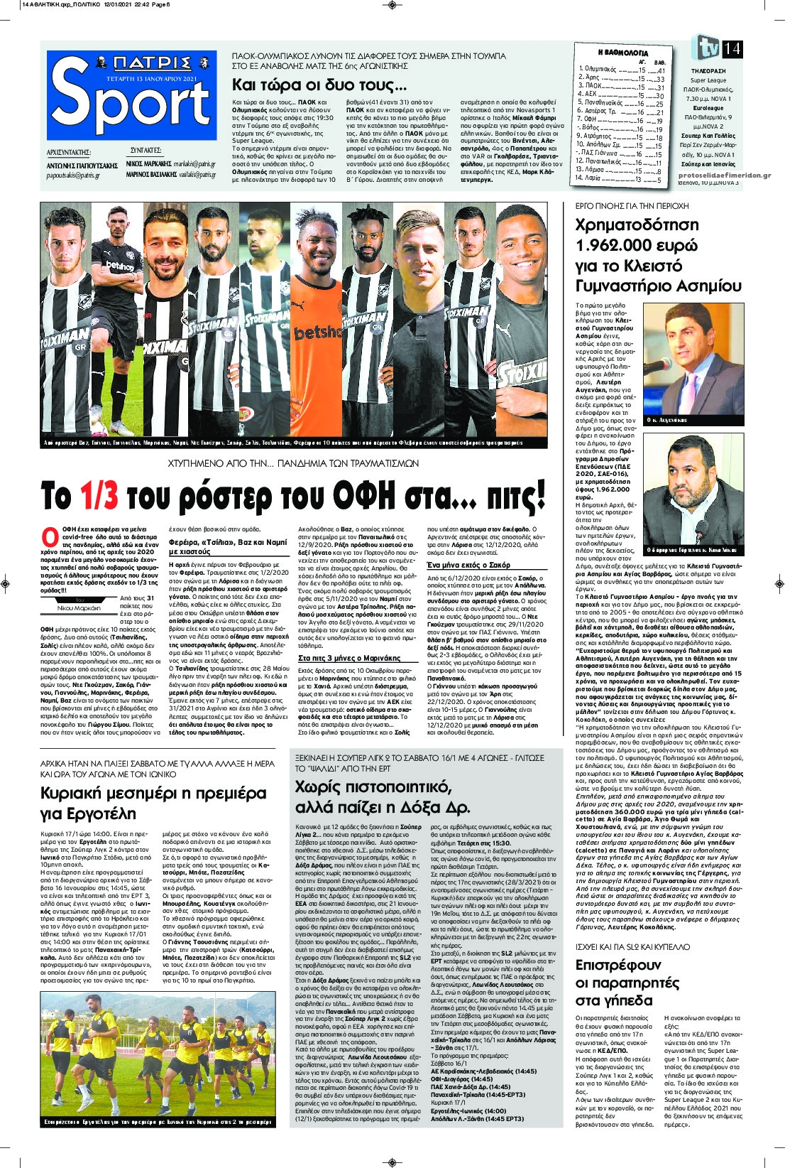 NewsMEDIA Διαβάστε όλα τα πρωτοσέλιδα των αθλητικών εφημερίδων της Τετάρτης 13 Ιανουαρίου 2021 FacebookTwitterEmailViberWhatsAppCopy URLΤυπώνω Διαβάστε όλα τα πρωτοσέλιδα των αθλητικών εφημερίδων της Τετάρτης 13 Ιανουαρίου. Πλήρης ενημέρωση με μια γρήγορη ματιά!
