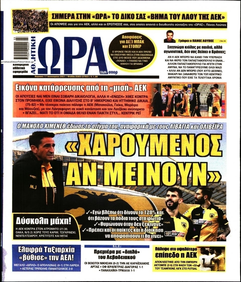 NewsMEDIA Διαβάστε όλα τα πρωτοσέλιδα των αθλητικών εφημερίδων της Κυριακής 17 Ιανουαρίου 2021 FacebookTwitterEmailViberWhatsAppCopy URLΤυπώνω Διαβάστε όλα τα πρωτοσέλιδα των αθλητικών εφημερίδων της Κυριακής 17 Ιανουαρίου. Πλήρης ενημέρωση με μια γρήγορη ματιά!