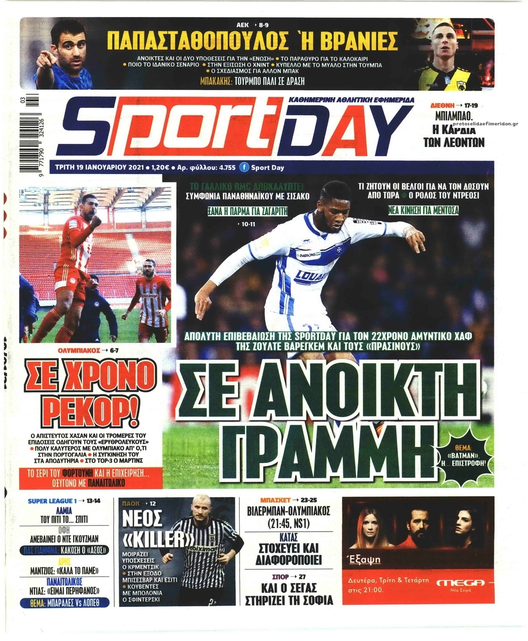 NewsMEDIA Διαβάστε όλα τα πρωτοσέλιδα των αθλητικών εφημερίδων της Τρίτης 19 Ιανουαρίου 2021 FacebookTwitterEmailViberWhatsAppCopy URLΤυπώνω Διαβάστε όλα τα πρωτοσέλιδα των αθλητικών εφημερίδων της Τρίτης 19 Ιανουαρίου. Πλήρης ενημέρωση με μια γρήγορη ματιά!