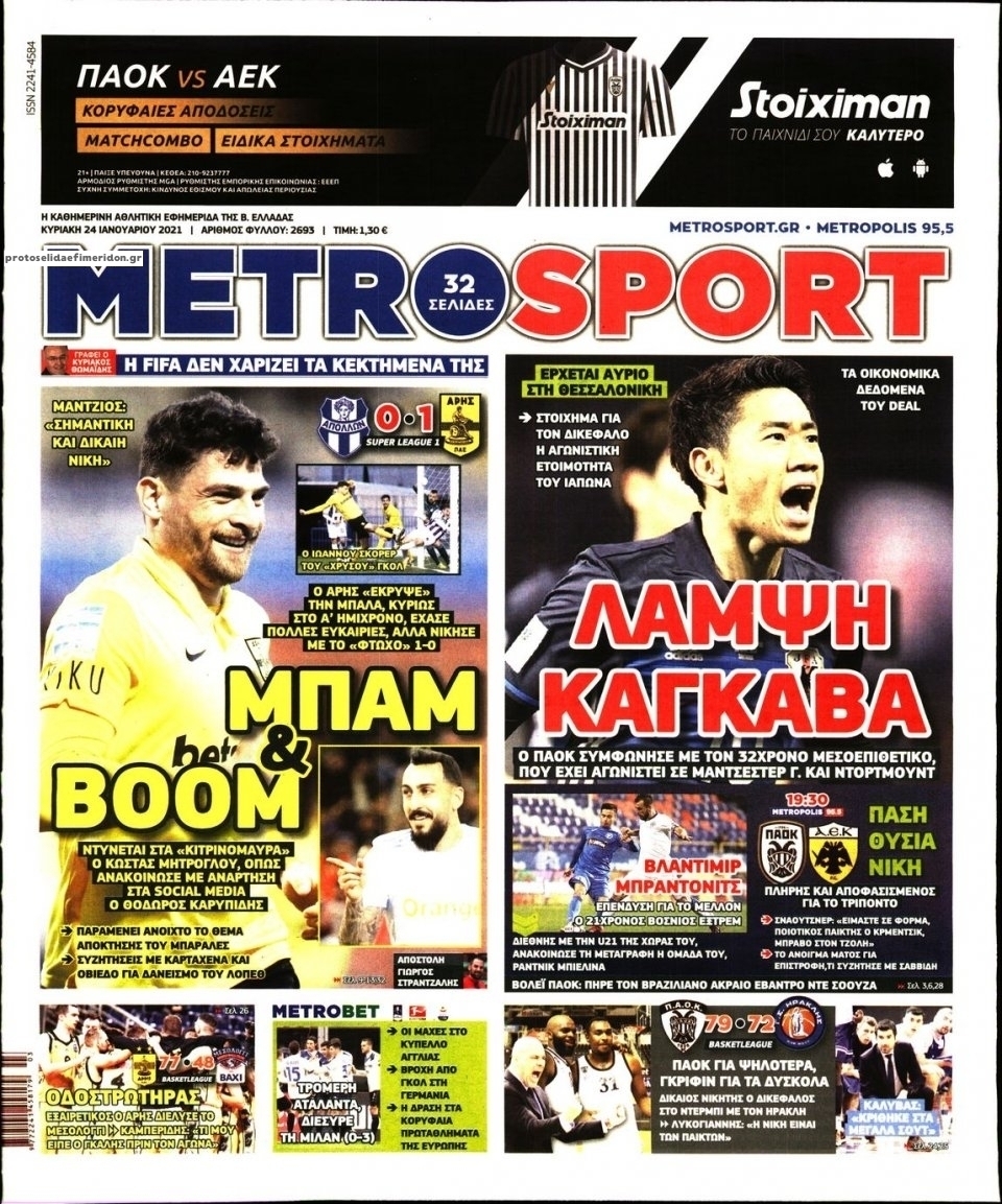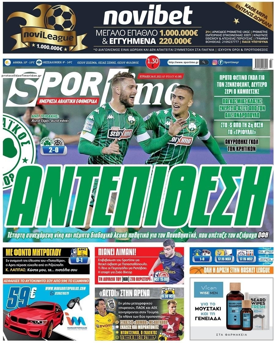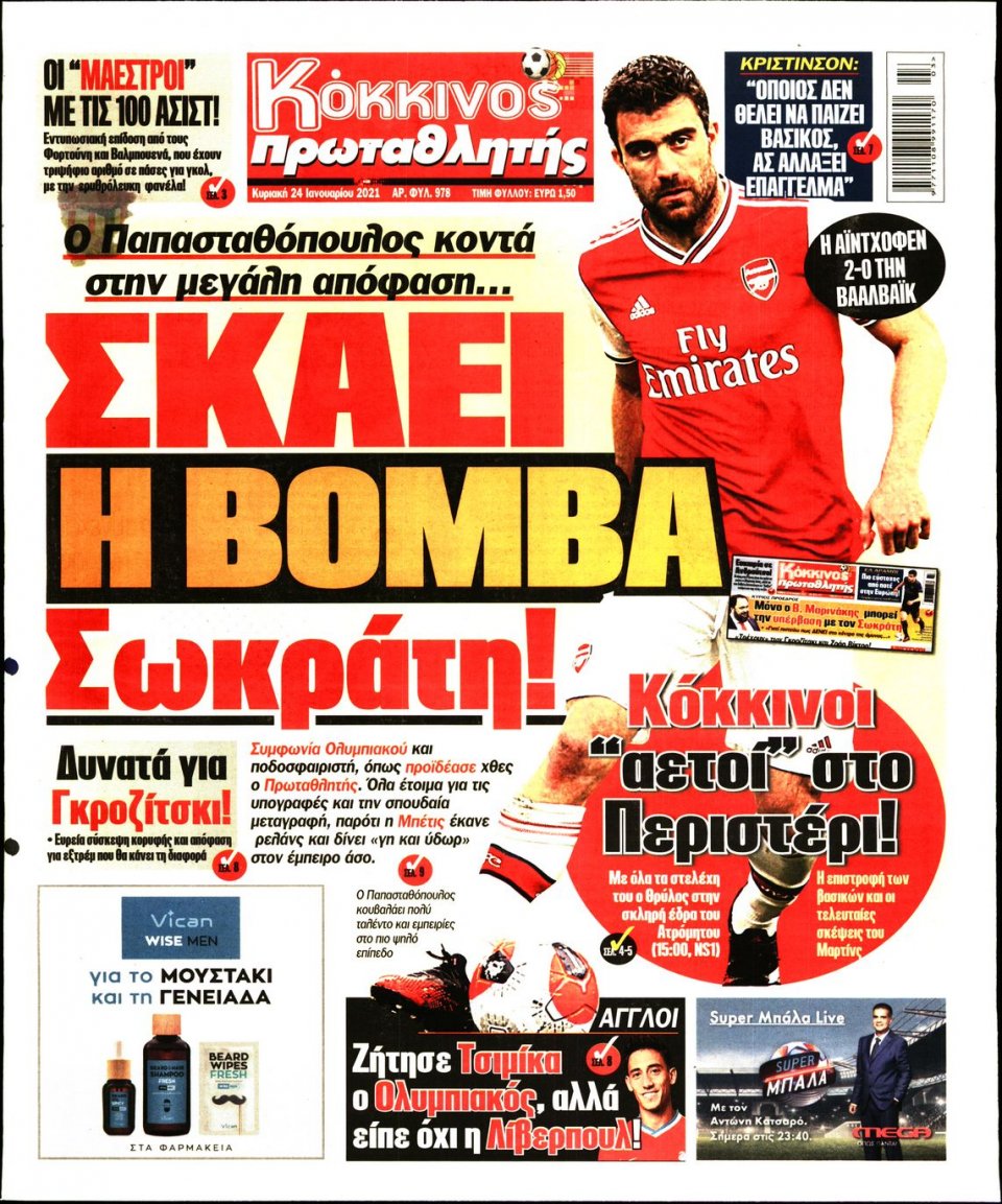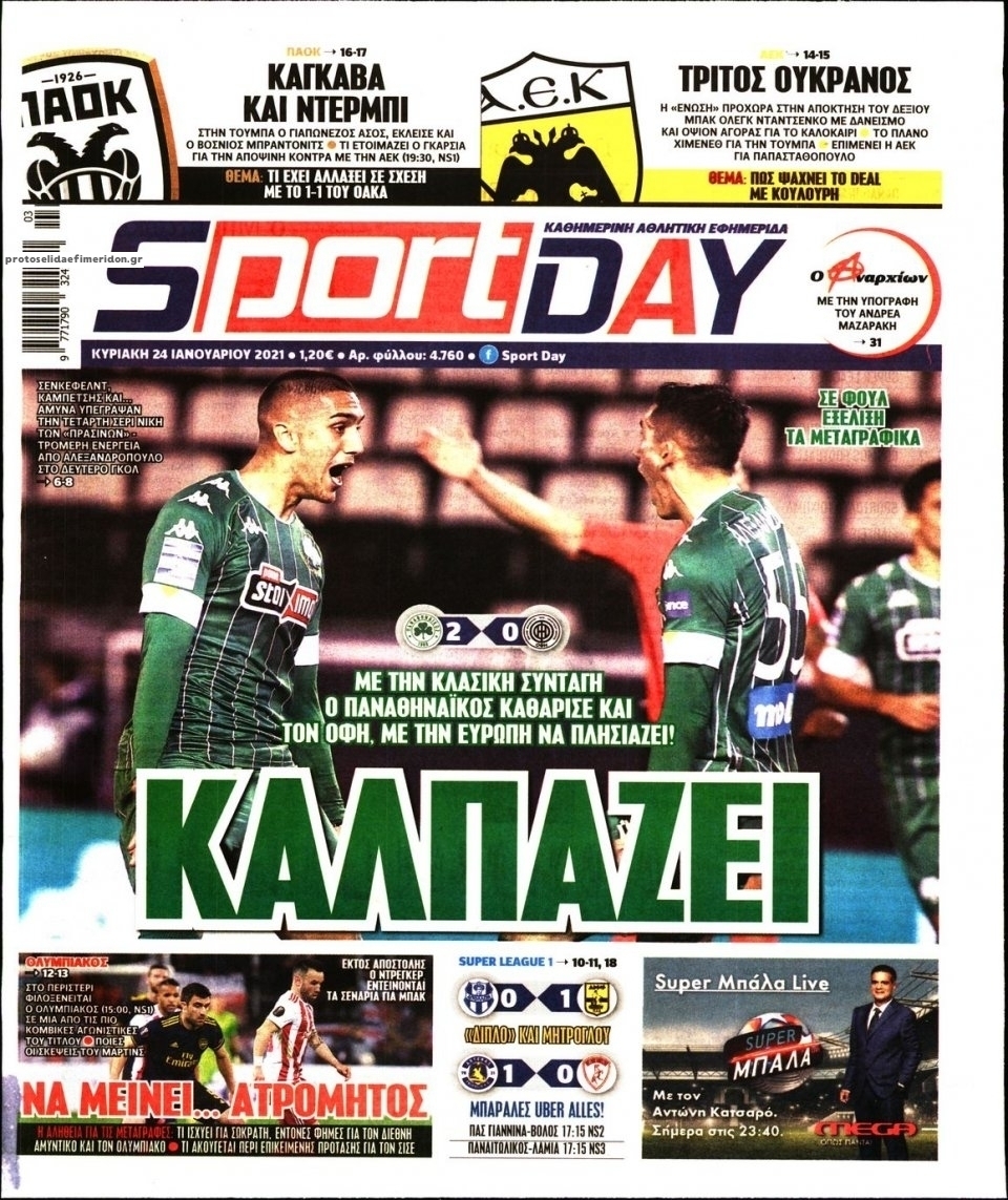 NewsMEDIA Διαβάστε όλα τα πρωτοσέλιδα των αθλητικών εφημερίδων της Κυριακής 24 Ιανουαρίου 2021 FacebookTwitterEmailViberWhatsAppCopy URLΤυπώνω Διαβάστε όλα τα πρωτοσέλιδα των αθλητικών εφημερίδων της Κυριακής 24 Ιανουαρίου. Πλήρης ενημέρωση με μια γρήγορη ματιά!
