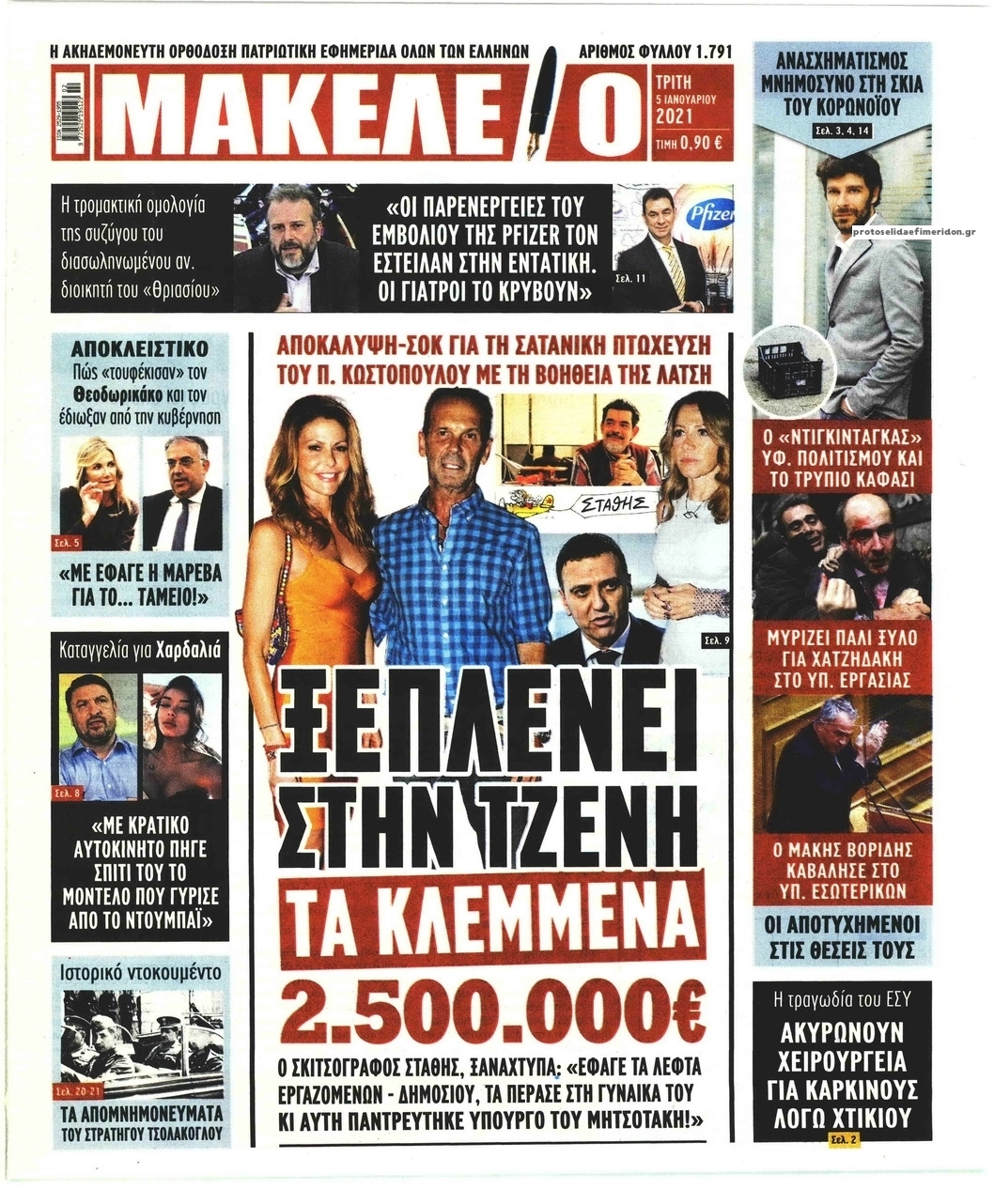 NewsMEDIA Διαβάστε όλα τα πρωτοσέλιδα των πολιτικών εφημερίδων της Τρίτης 5 Ιανουαρίου 2021 FacebookTwitterEmailViberWhatsAppCopy URLΤυπώνω Διαβάστε όλα τα πρωτοσέλιδα των πολιτικών εφημερίδων της Τρίτης 5 Ιανουαρίου. Πλήρης ενημέρωση με μια γρήγορη ματιά!