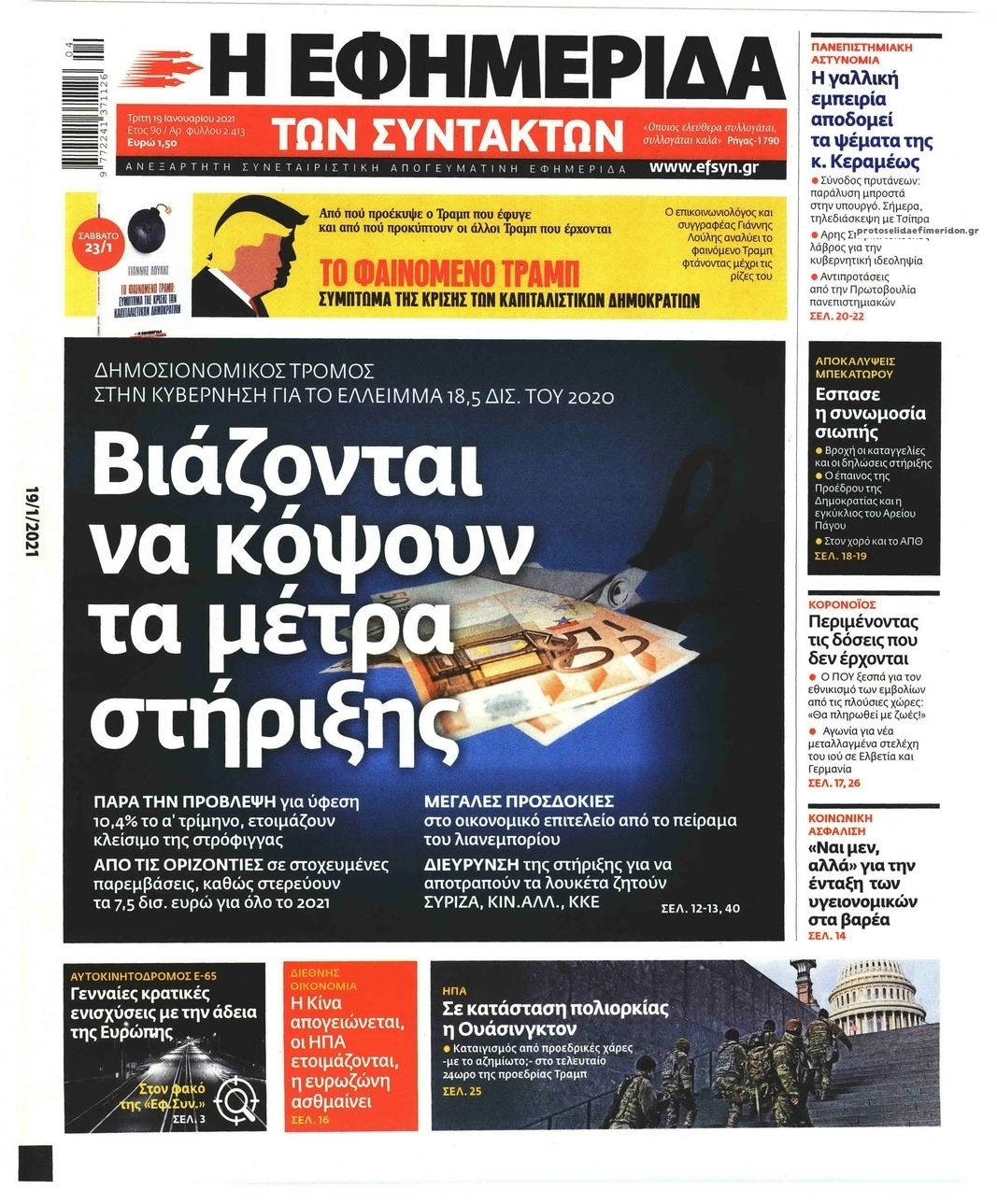NewsMEDIASLIDER Διαβάστε όλα τα πρωτοσέλιδα των πολιτικών εφημερίδων της Τρίτης 19 Ιανουαρίου 2021 FacebookTwitterEmailViberWhatsAppCopy URLΤυπώνω Διαβάστε όλα τα πρωτοσέλιδα των πολιτικών εφημερίδων της Τρίτης 19 Ιανουαρίου. Πλήρης ενημέρωση με μια γρήγορη ματιά!