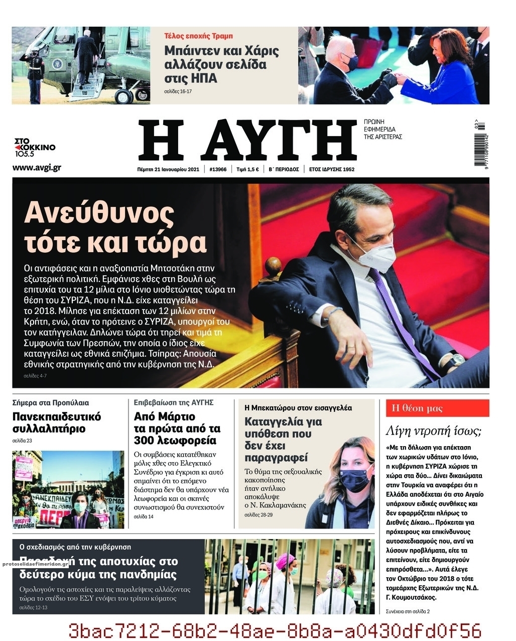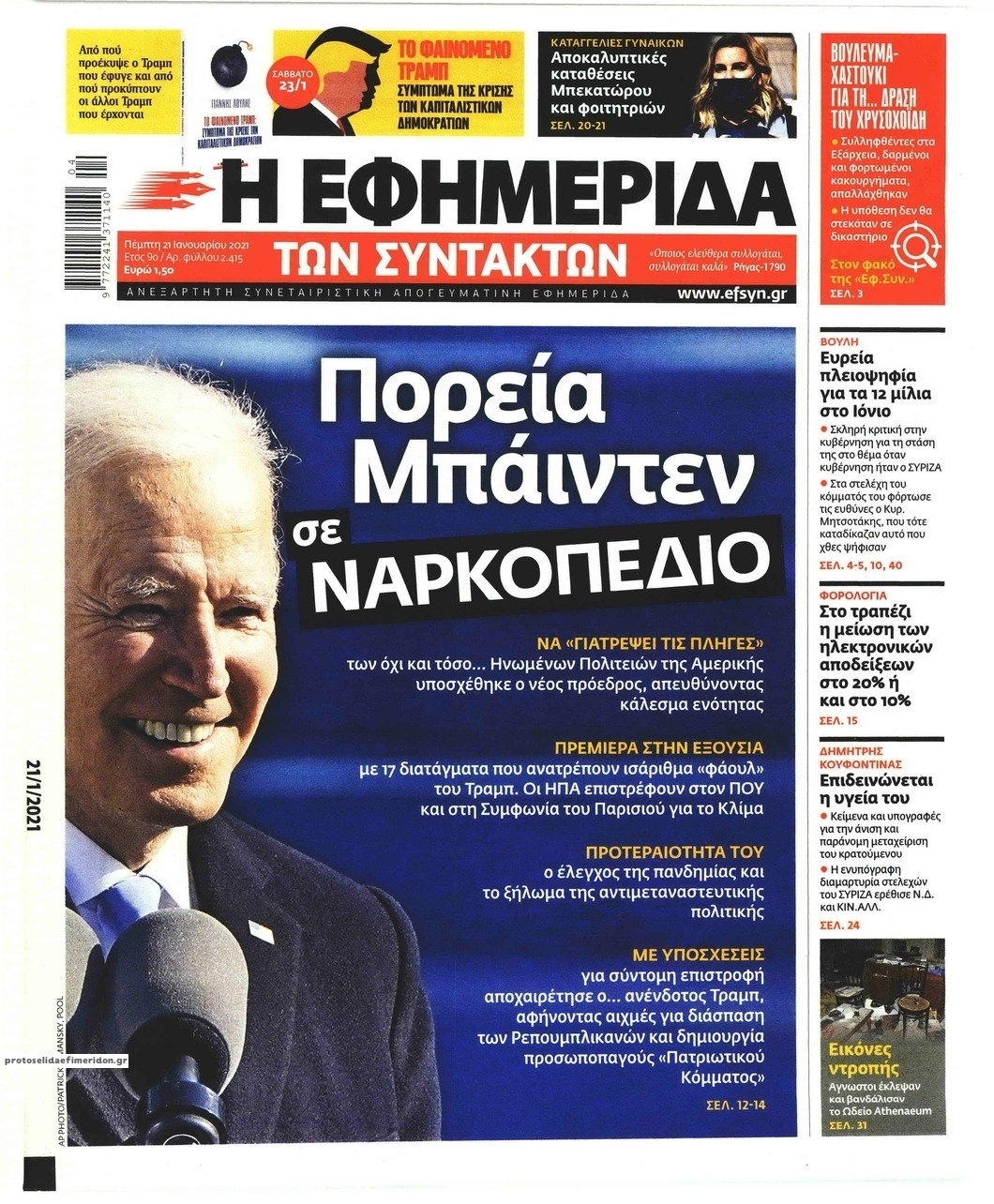 NewsMEDIASLIDER Διαβάστε όλα τα πρωτοσέλιδα των πολιτικών εφημερίδων της Πέμπτης 21 Ιανουαρίου 2021 FacebookTwitterEmailViberWhatsAppCopy URLΤυπώνω Διαβάστε όλα τα πρωτοσέλιδα των πολιτικών εφημερίδων της Πέμπτης 21 Ιανουαρίου. Πλήρης ενημέρωση με μια γρήγορη ματιά!