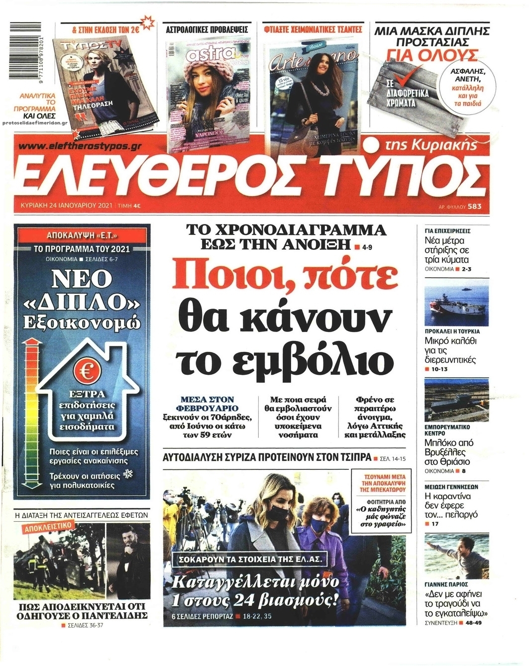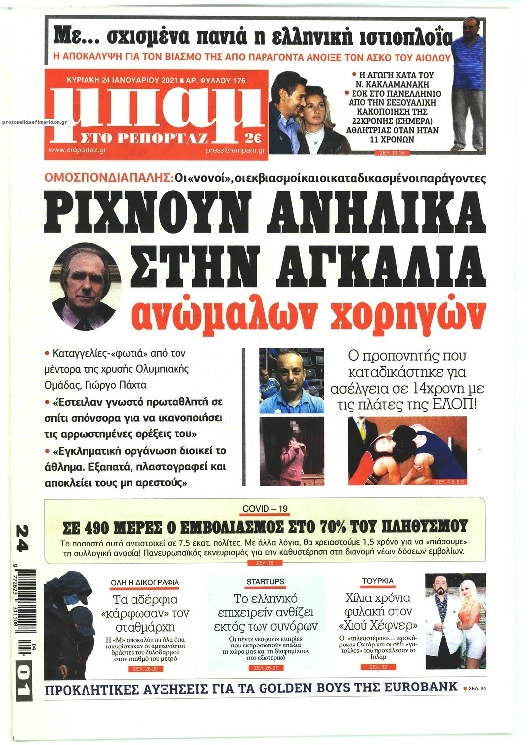 NewsMEDIASLIDER Διαβάστε όλα τα πρωτοσέλιδα των πολιτικών εφημερίδων της Κυριακής 24 Ιανουαρίου 2021 FacebookTwitterEmailViberWhatsAppCopy URLΤυπώνω Διαβάστε όλα τα πρωτοσέλιδα των πολιτικών εφημερίδων της Κυριακής 24 Ιανουαρίου. Πλήρης ενημέρωση με μια γρήγορη ματιά!