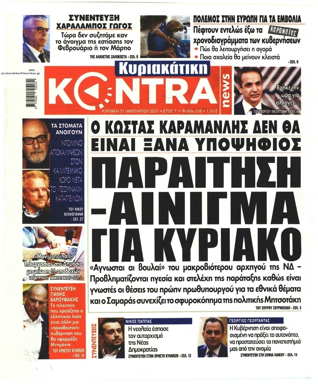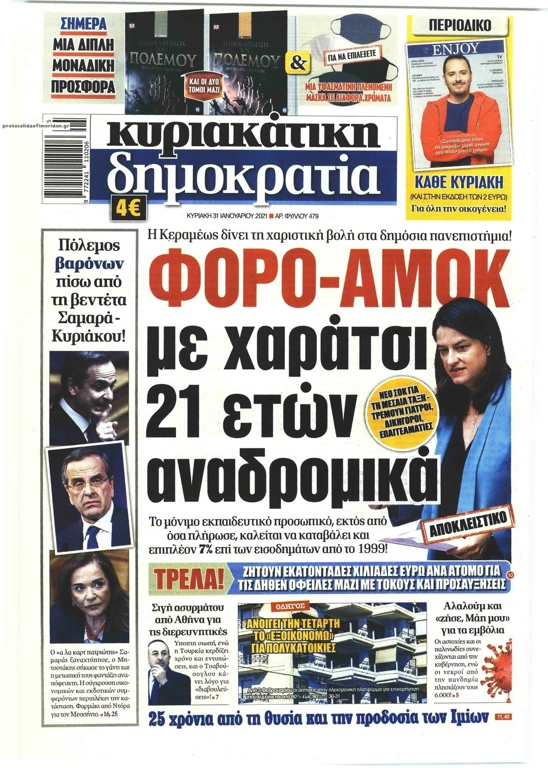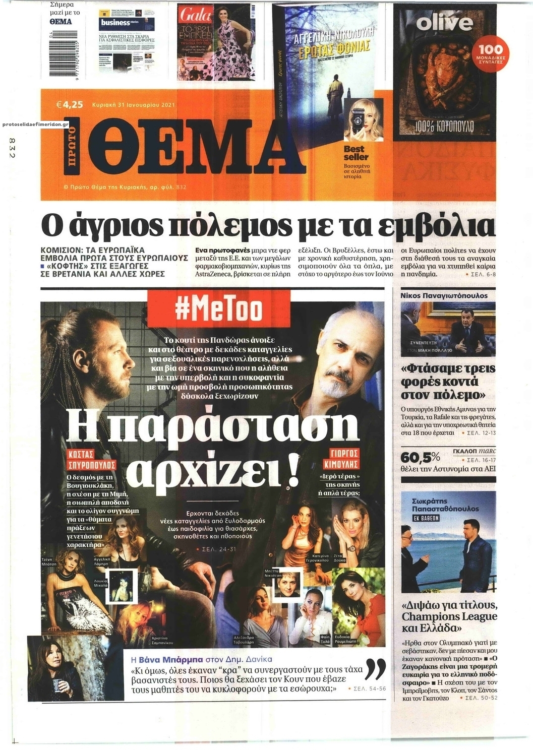 NewsMEDIASLIDER Διαβάστε όλα τα πρωτοσέλιδα των πολιτικών εφημερίδων της Κυριακής 31 Ιανουαρίου 2021 FacebookXEmailViberWhatsAppCopy URLΤυπώνω Διαβάστε όλα τα πρωτοσέλιδα των πολιτικών εφημερίδων της Κυριακής 31 Ιανουαρίου. Πλήρης ενημέρωση με μια γρήγορη ματιά!