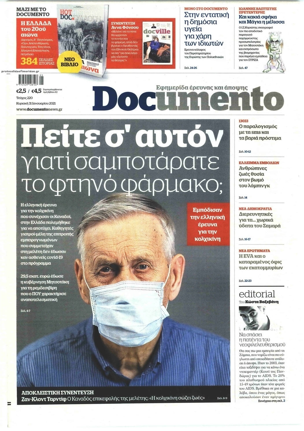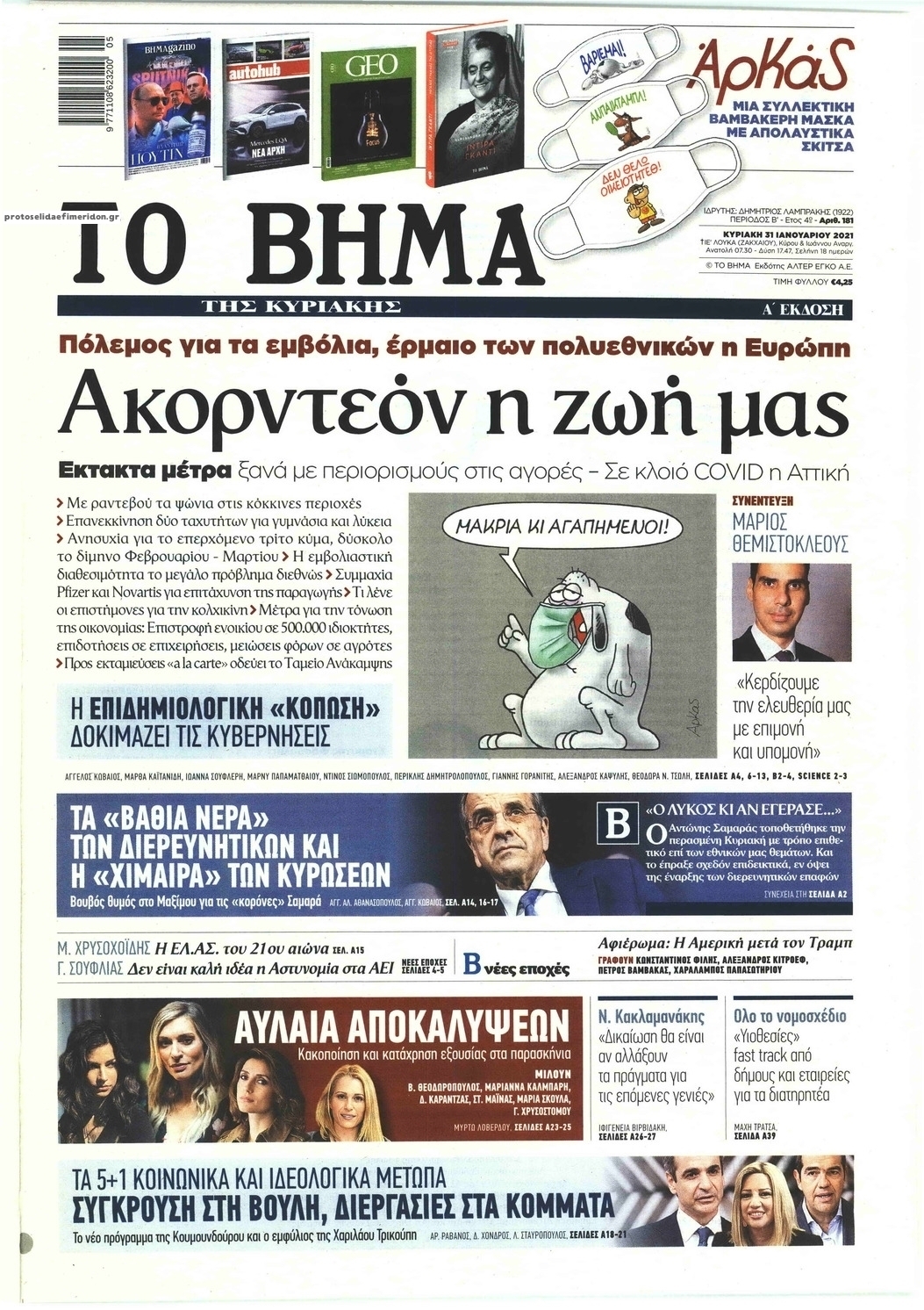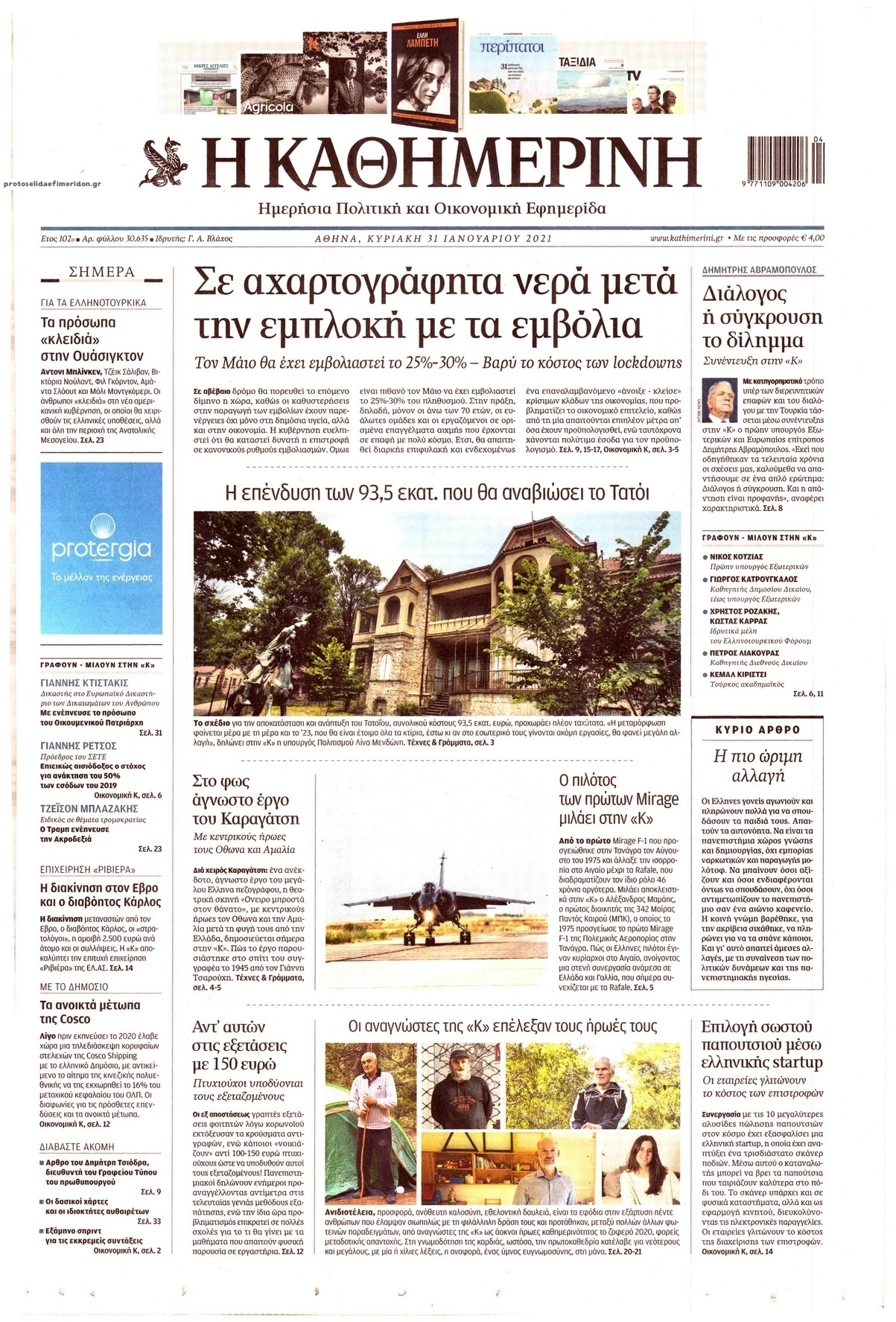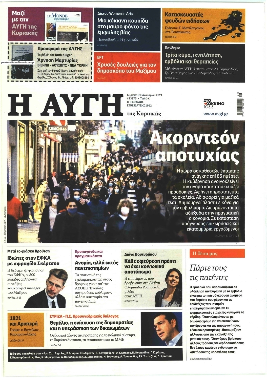 NewsMEDIASLIDER Διαβάστε όλα τα πρωτοσέλιδα των πολιτικών εφημερίδων της Κυριακής 31 Ιανουαρίου 2021 FacebookXEmailViberWhatsAppCopy URLΤυπώνω Διαβάστε όλα τα πρωτοσέλιδα των πολιτικών εφημερίδων της Κυριακής 31 Ιανουαρίου. Πλήρης ενημέρωση με μια γρήγορη ματιά!