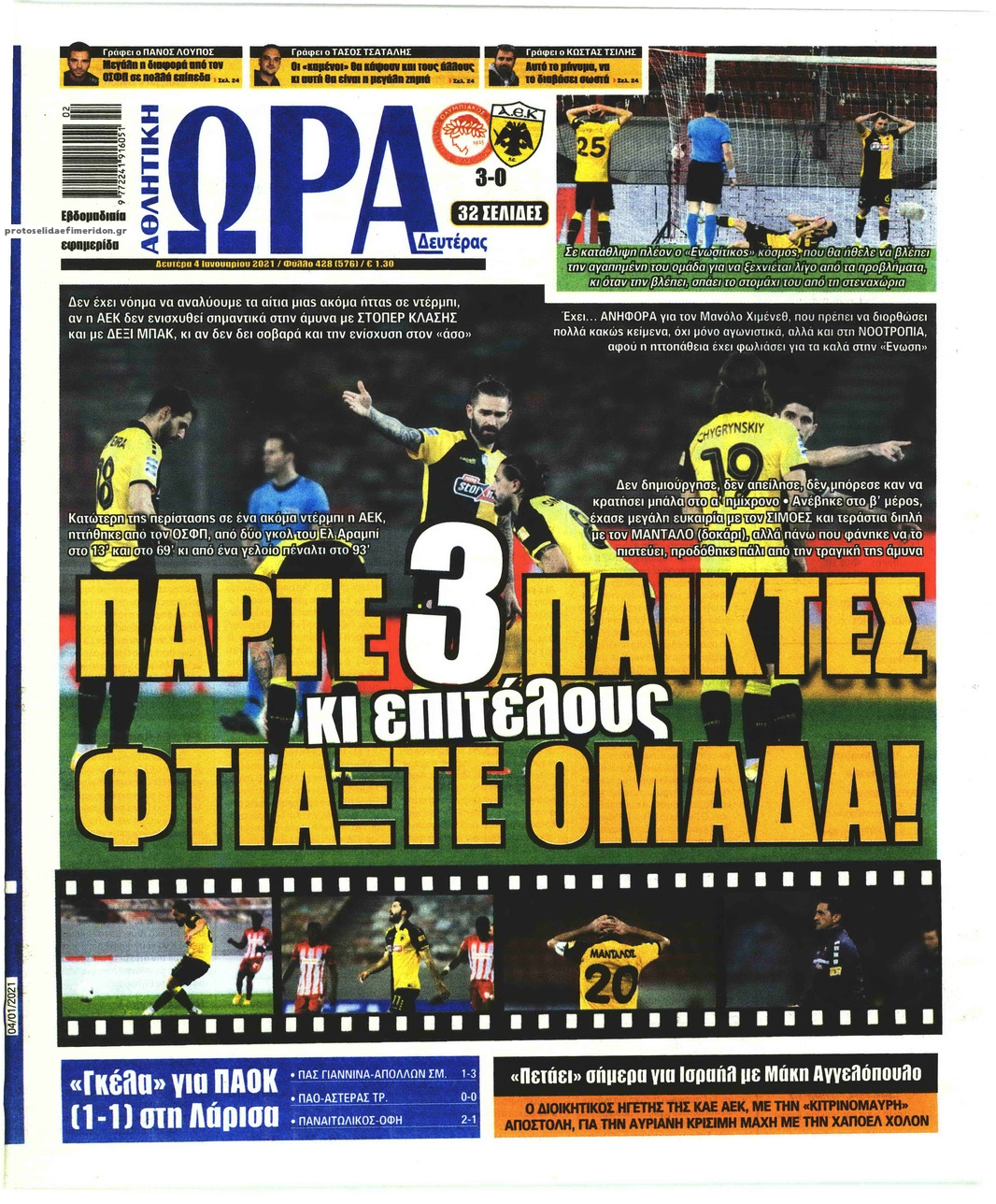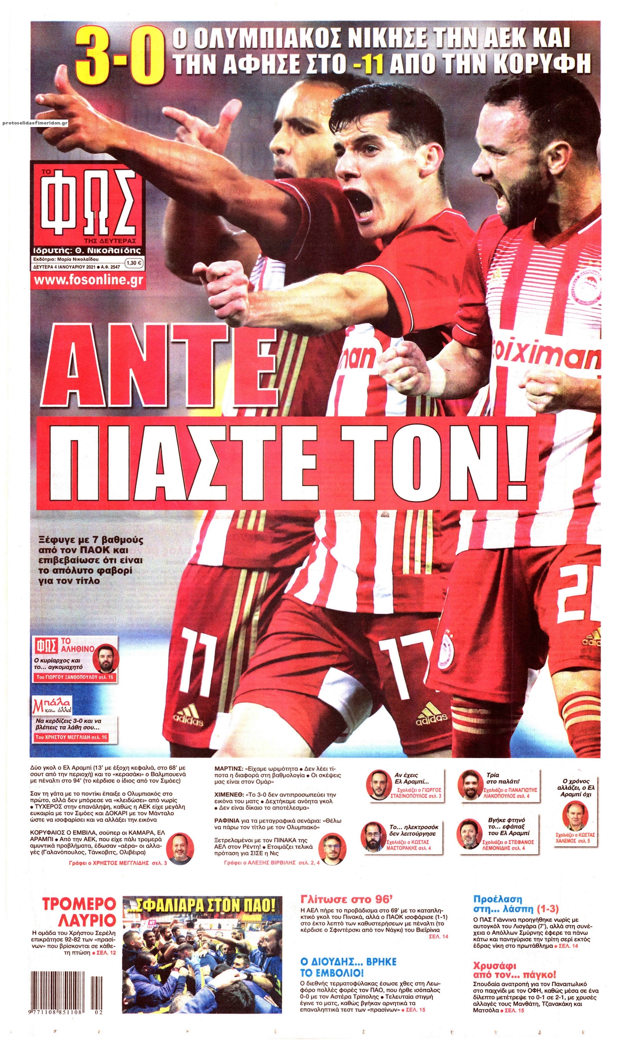 NewsMEDIA Διαβάστε όλα τα πρωτοσέλιδα των αθλητικών εφημερίδων της Δευτέρας 4 Ιανουαρίου 2021 FacebookTwitterEmailViberWhatsAppCopy URLΤυπώνω Διαβάστε όλα τα πρωτοσέλιδα των αθλητικών εφημερίδων της Δευτέρας 4 Ιανουαρίου. Πλήρης ενημέρωση με μια γρήγορη ματιά!