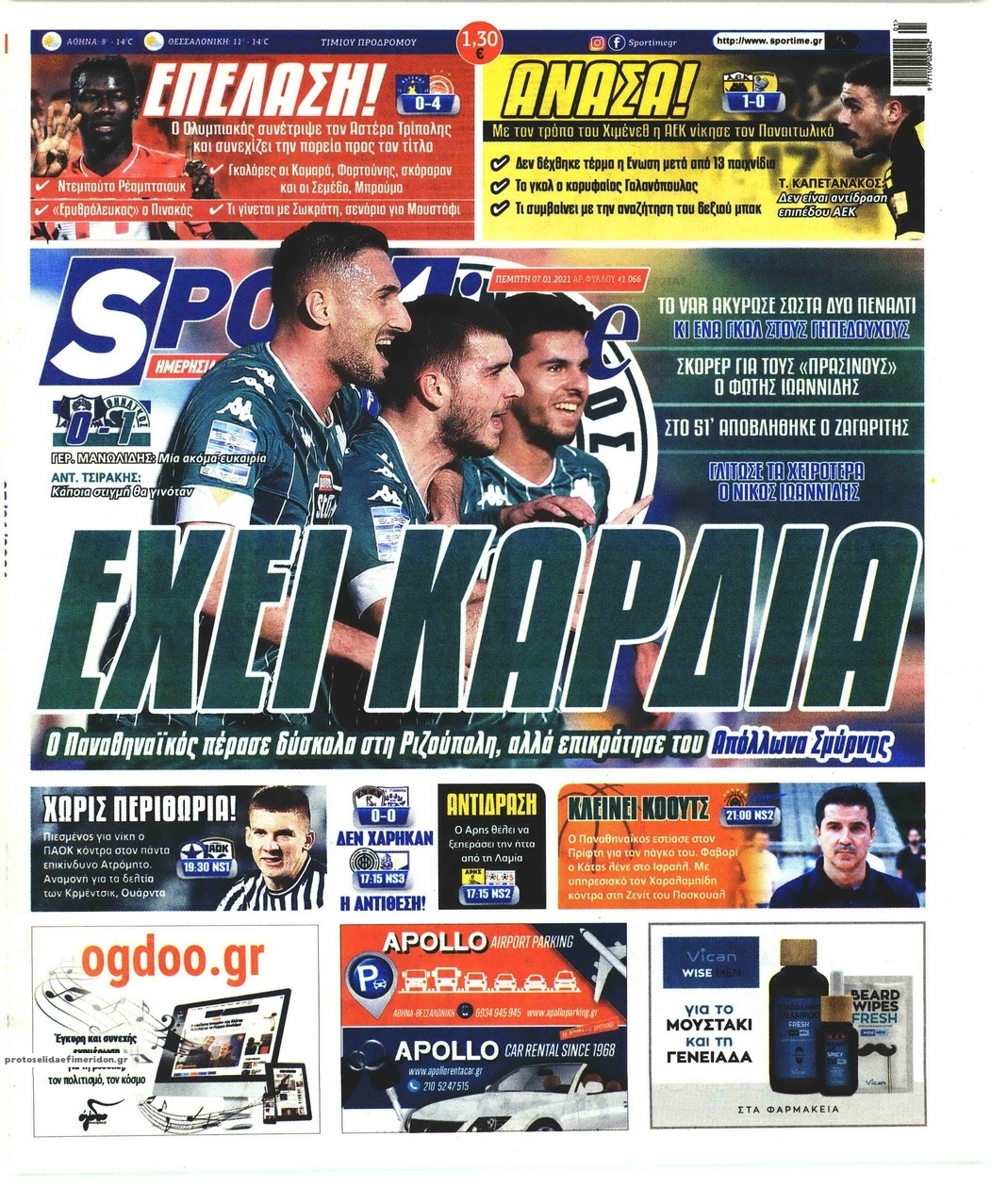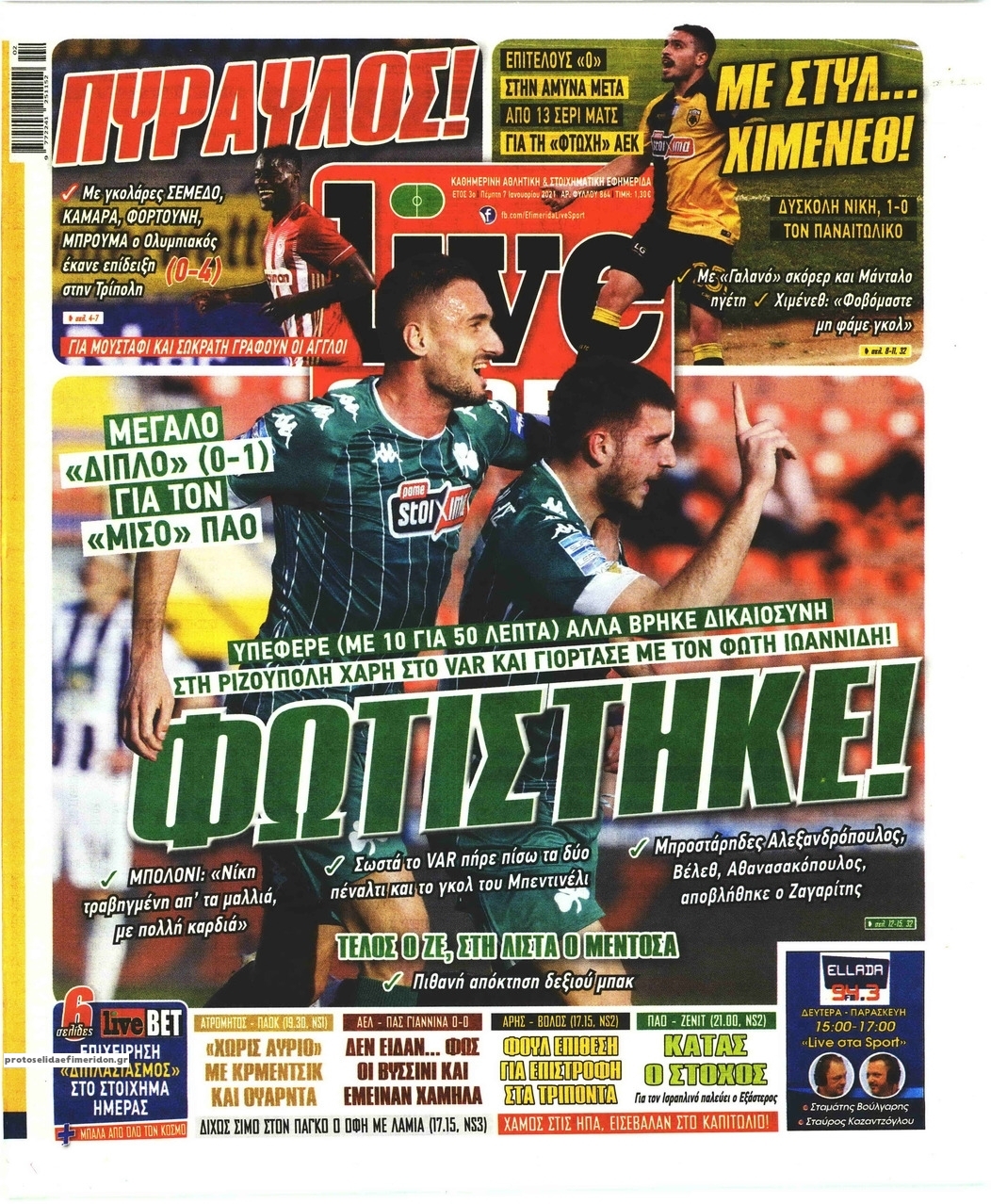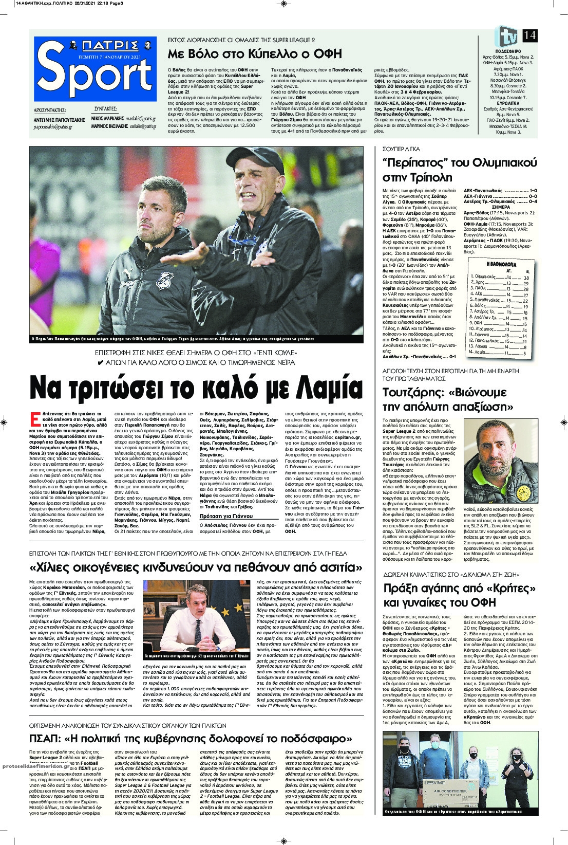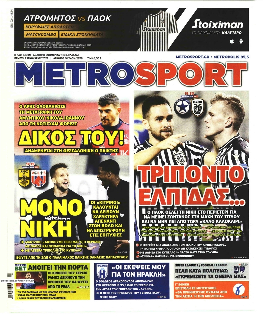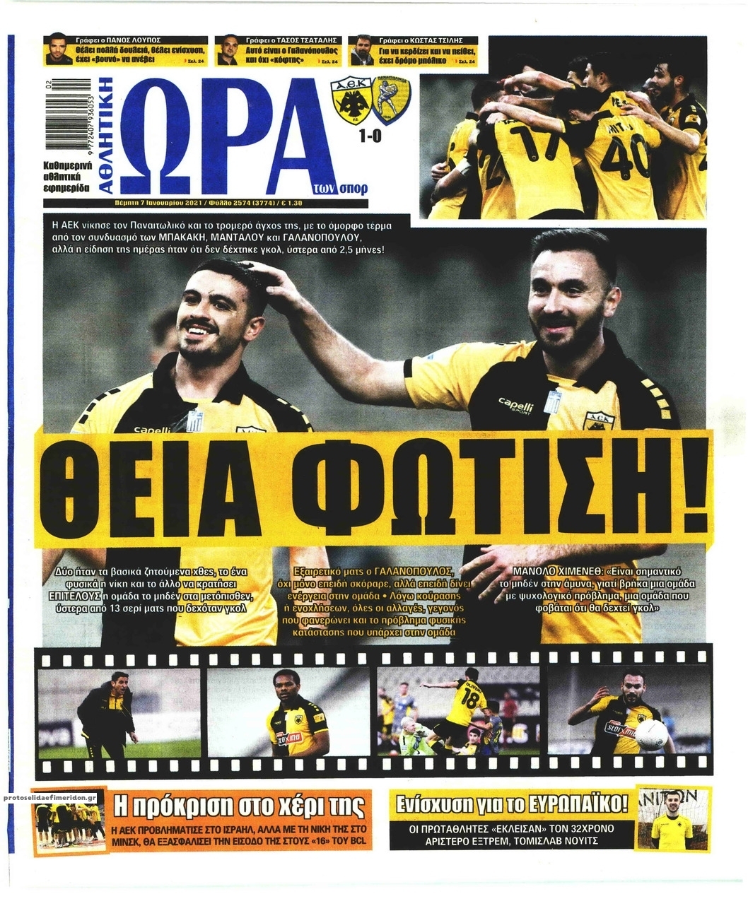 NewsMEDIA Διαβάστε όλα τα πρωτοσέλιδα των αθλητικών εφημερίδων της Πέμπτης 7 Ιανουαρίου 2021 FacebookTwitterEmailViberWhatsAppCopy URLΤυπώνω Διαβάστε όλα τα πρωτοσέλιδα των αθλητικών εφημερίδων της Πέμπτης 7 Ιανουαρίου. Πλήρης ενημέρωση με μια γρήγορη ματιά!
