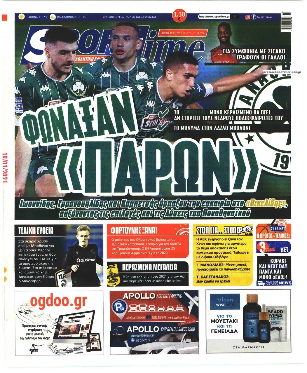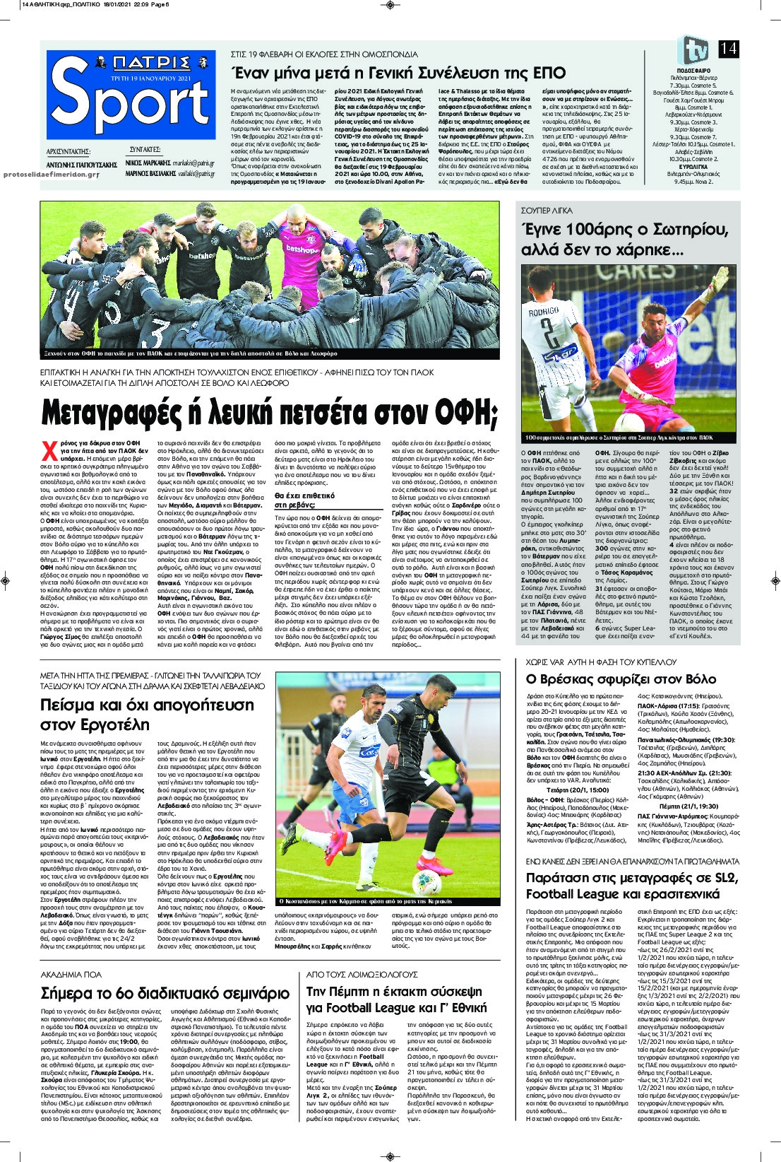 NewsMEDIA Διαβάστε όλα τα πρωτοσέλιδα των αθλητικών εφημερίδων της Τρίτης 19 Ιανουαρίου 2021 FacebookTwitterEmailViberWhatsAppCopy URLΤυπώνω Διαβάστε όλα τα πρωτοσέλιδα των αθλητικών εφημερίδων της Τρίτης 19 Ιανουαρίου. Πλήρης ενημέρωση με μια γρήγορη ματιά!