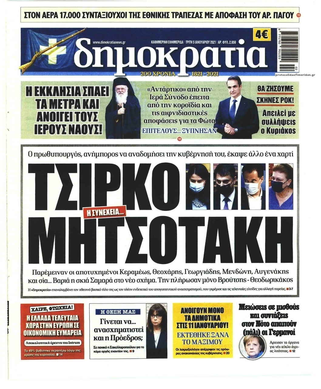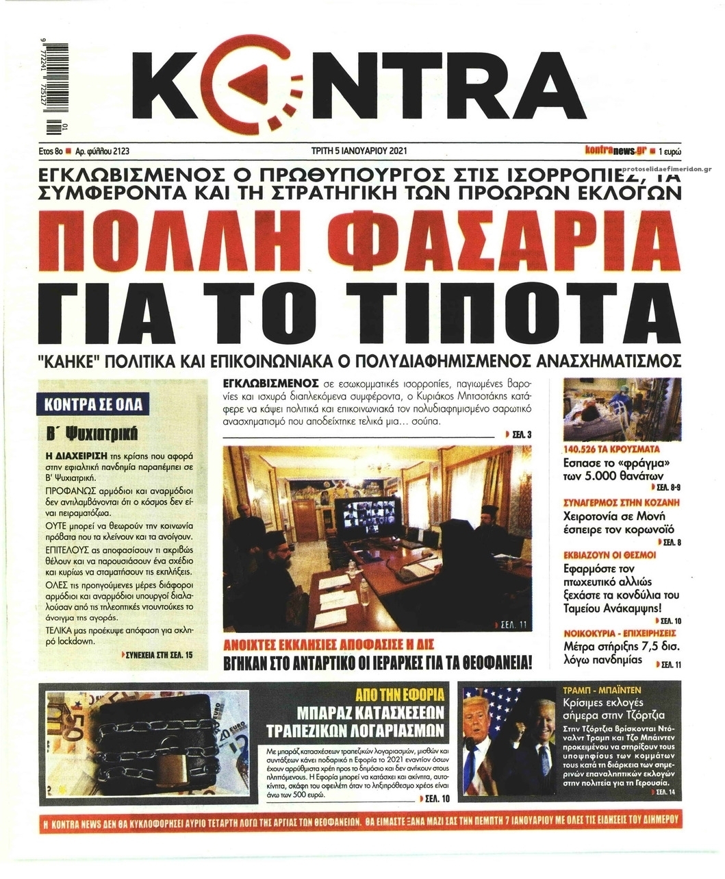 NewsMEDIA Διαβάστε όλα τα πρωτοσέλιδα των πολιτικών εφημερίδων της Τρίτης 5 Ιανουαρίου 2021 FacebookTwitterEmailViberWhatsAppCopy URLΤυπώνω Διαβάστε όλα τα πρωτοσέλιδα των πολιτικών εφημερίδων της Τρίτης 5 Ιανουαρίου. Πλήρης ενημέρωση με μια γρήγορη ματιά!