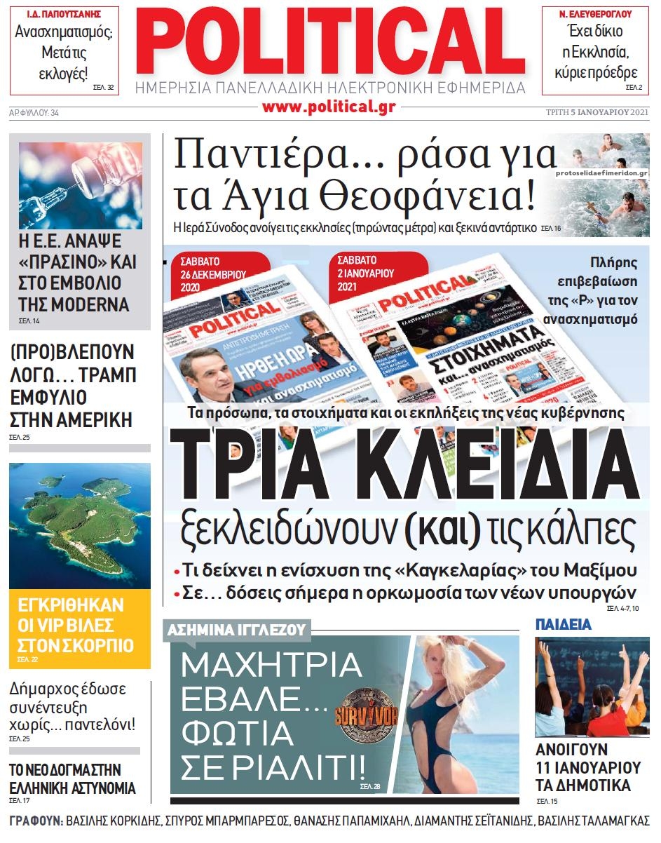 NewsMEDIA Διαβάστε όλα τα πρωτοσέλιδα των πολιτικών εφημερίδων της Τρίτης 5 Ιανουαρίου 2021 FacebookXEmailViberWhatsAppCopy URLΤυπώνω Διαβάστε όλα τα πρωτοσέλιδα των πολιτικών εφημερίδων της Τρίτης 5 Ιανουαρίου. Πλήρης ενημέρωση με μια γρήγορη ματιά!