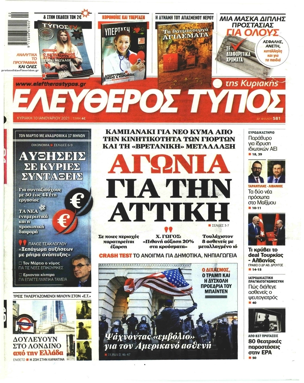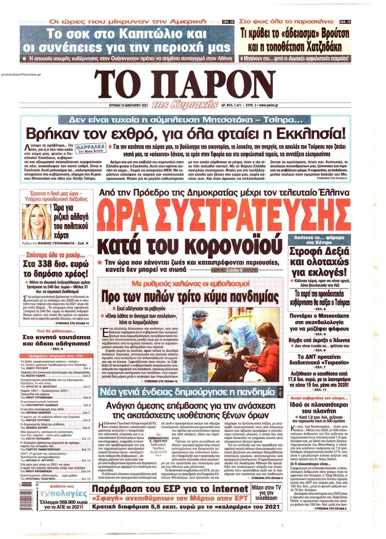NewsMEDIASLIDER Διαβάστε όλα τα πρωτοσέλιδα των πολιτικών εφημερίδων της Κυριακής 10 Ιανουαρίου 2021 FacebookXEmailViberWhatsAppCopy URLΤυπώνω Διαβάστε όλα τα πρωτοσέλιδα των πολιτικών εφημερίδων της Κυριακής 10 Ιανουαρίου. Πλήρης ενημέρωση με μια γρήγορη ματιά!