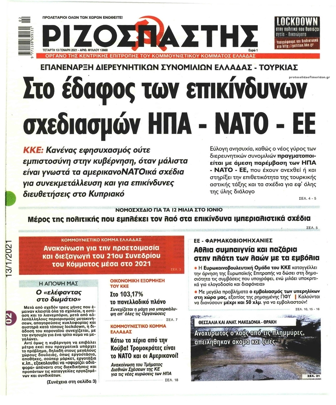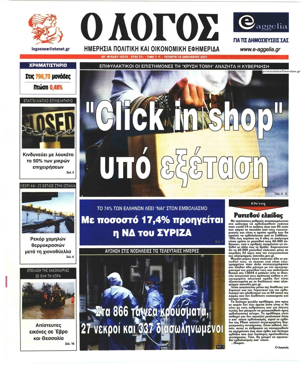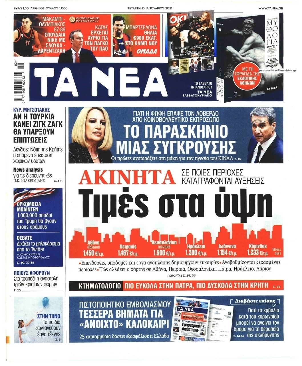 NewsMEDIASLIDER Διαβάστε όλα τα πρωτοσέλιδα των πολιτικών εφημερίδων της Τετάρτης 13 Ιανουαρίου 2021 FacebookTwitterEmailViberWhatsAppCopy URLΤυπώνω Διαβάστε όλα τα πρωτοσέλιδα των πολιτικών εφημερίδων της Τετάρτης 13 Ιανουαρίου. Πλήρης ενημέρωση με μια γρήγορη ματιά!