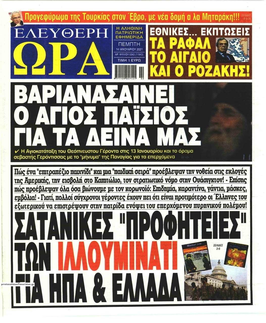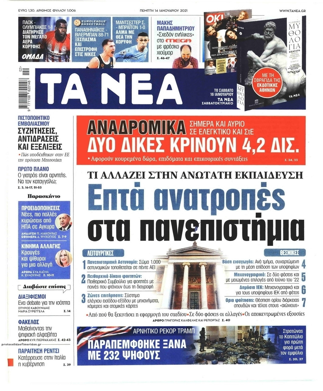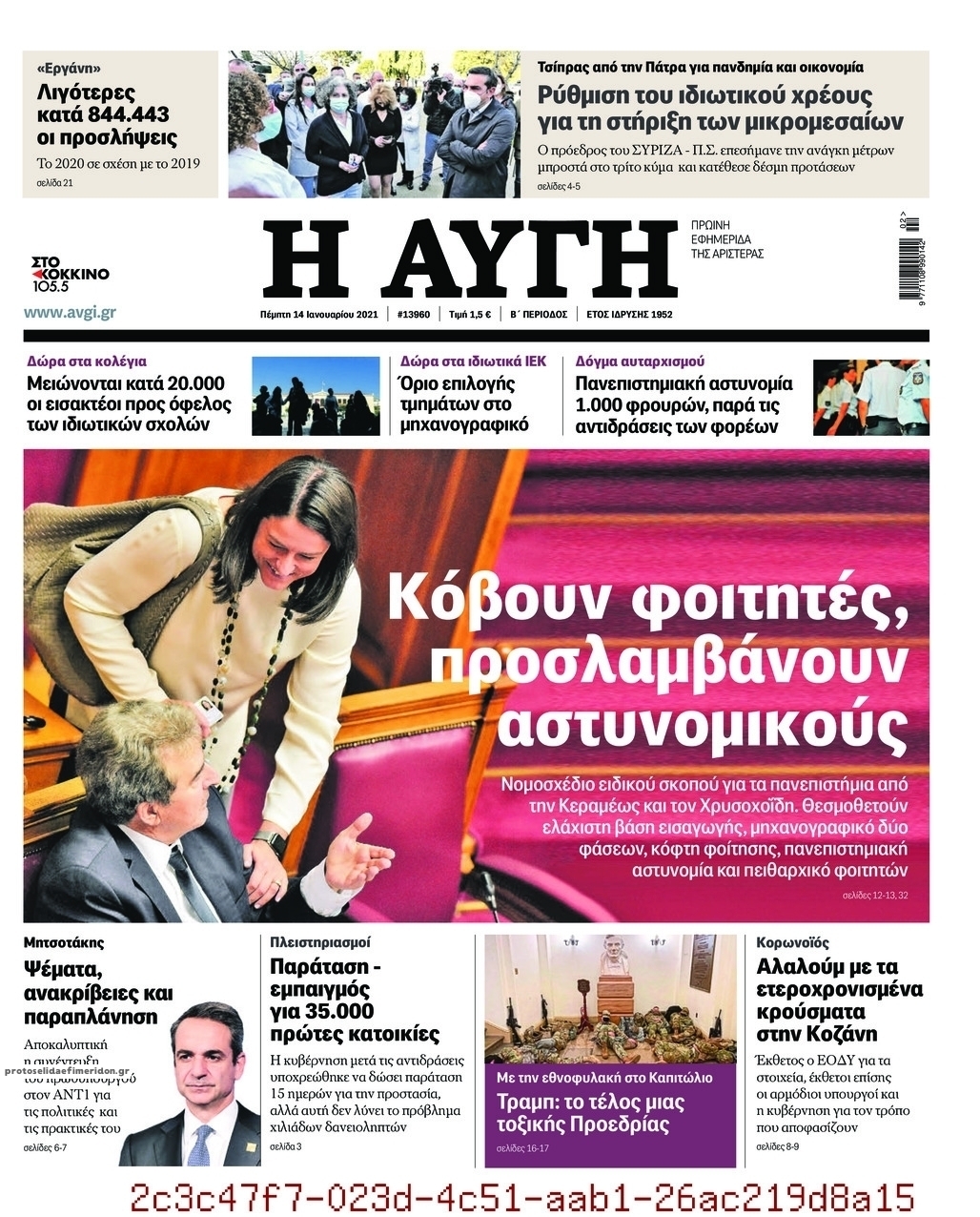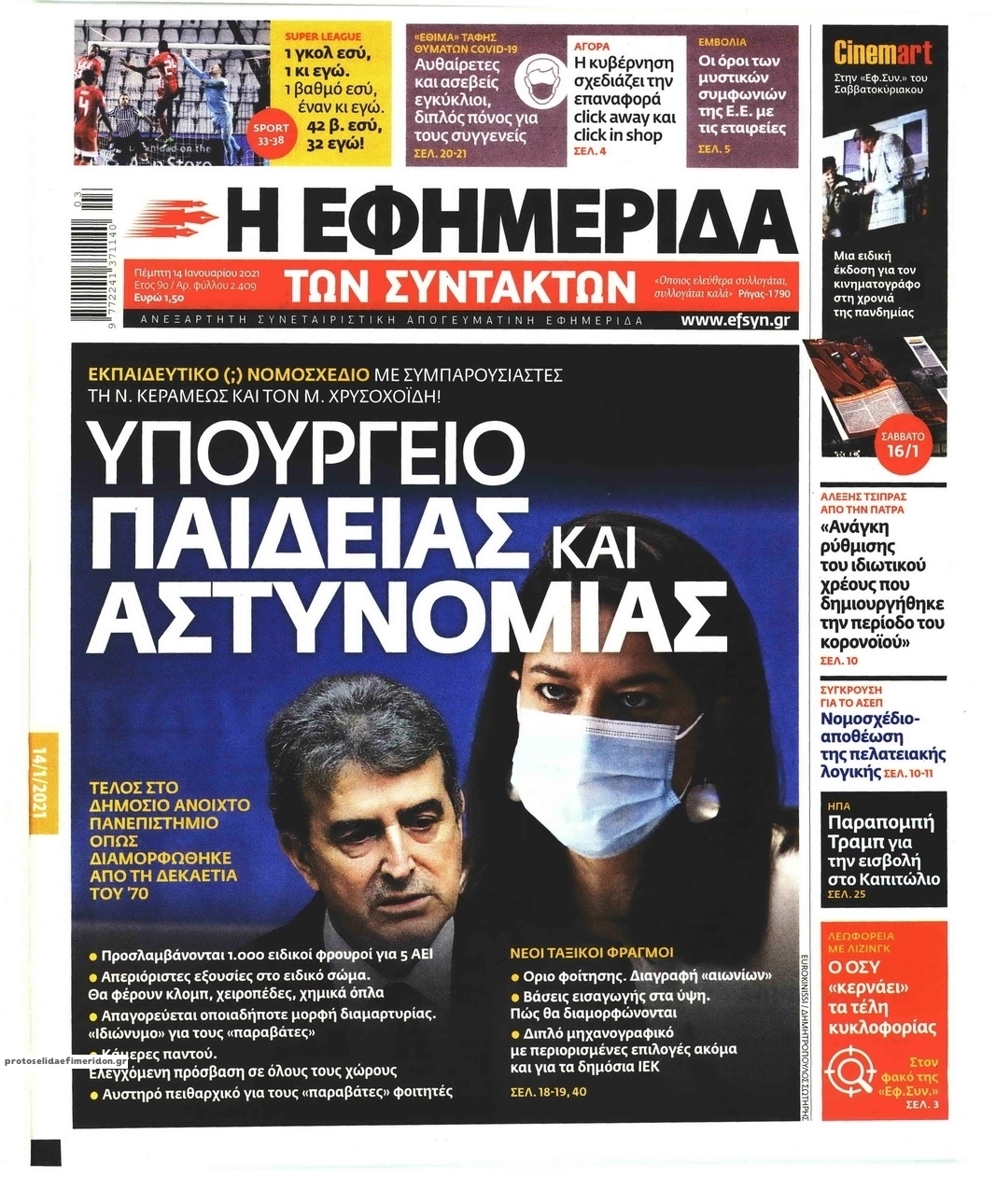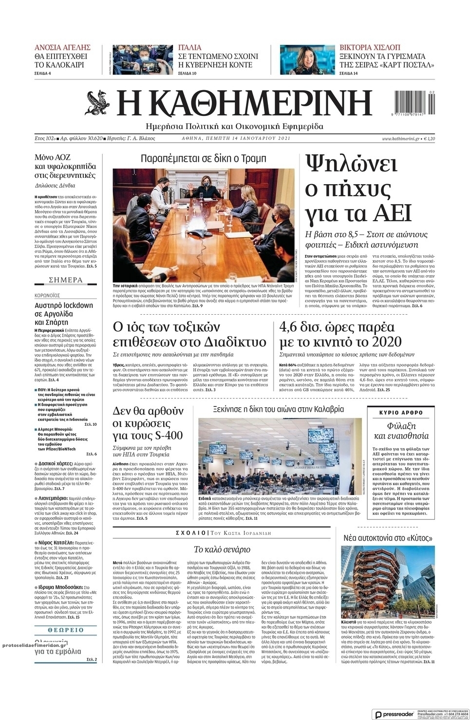 NewsMEDIASLIDER Διαβάστε όλα τα πρωτοσέλιδα των πολιτικών εφημερίδων της Πέμπτης 14 Ιανουαρίου 2021 FacebookTwitterEmailViberWhatsAppCopy URLΤυπώνω Διαβάστε όλα τα πρωτοσέλιδα των πολιτικών εφημερίδων της Πέμπτης 14 Ιανουαρίου. Πλήρης ενημέρωση με μια γρήγορη ματιά!