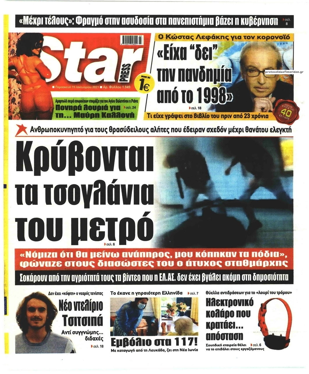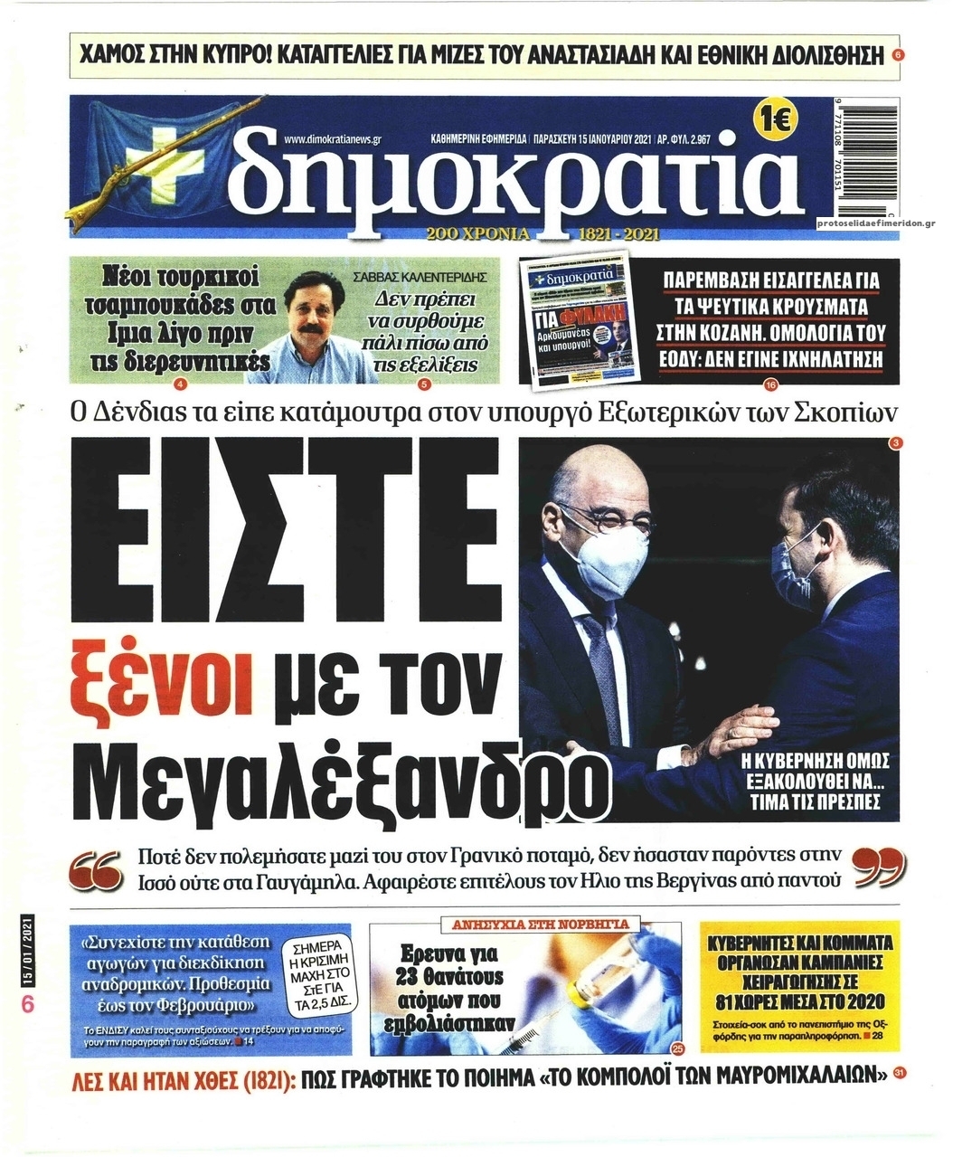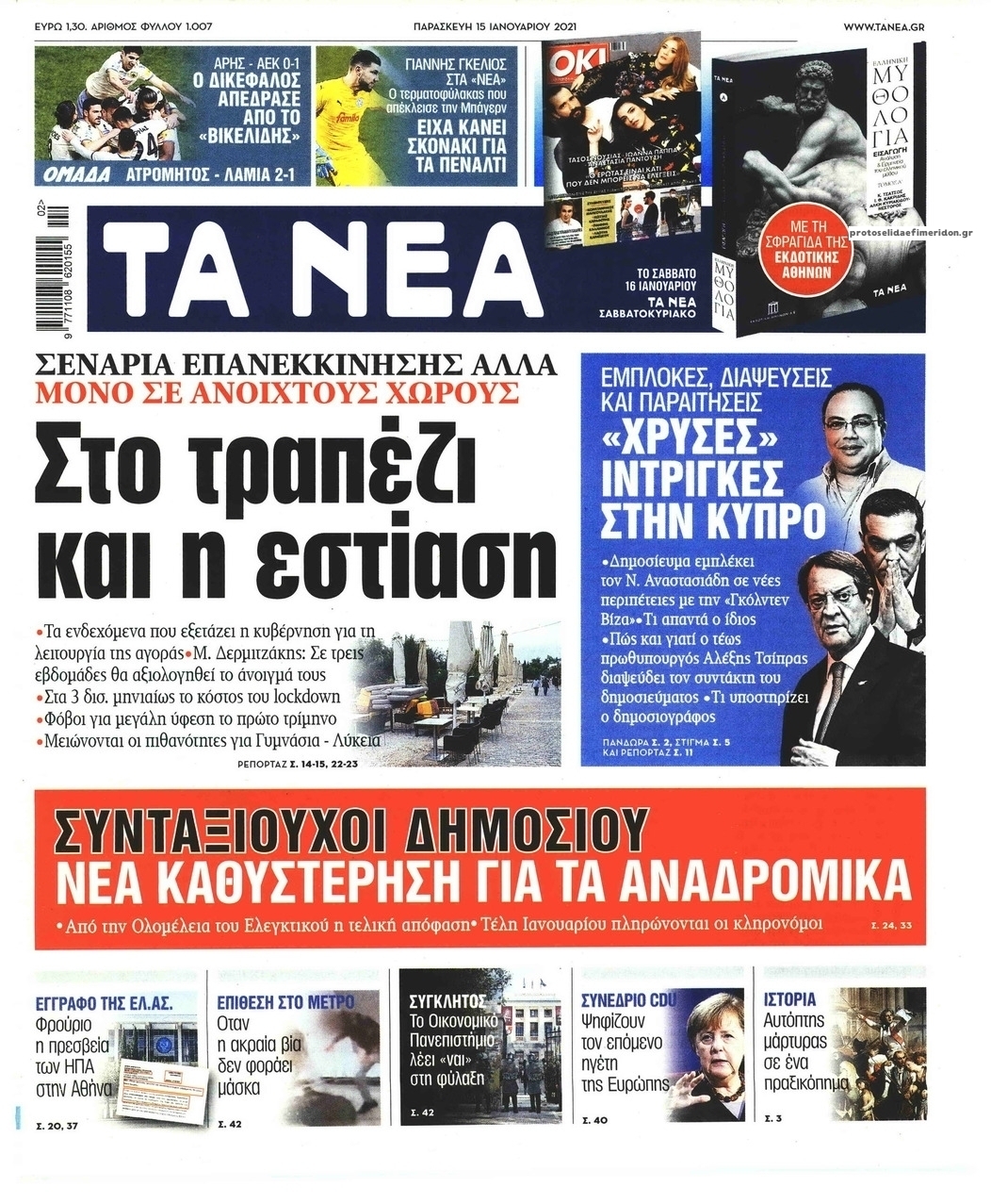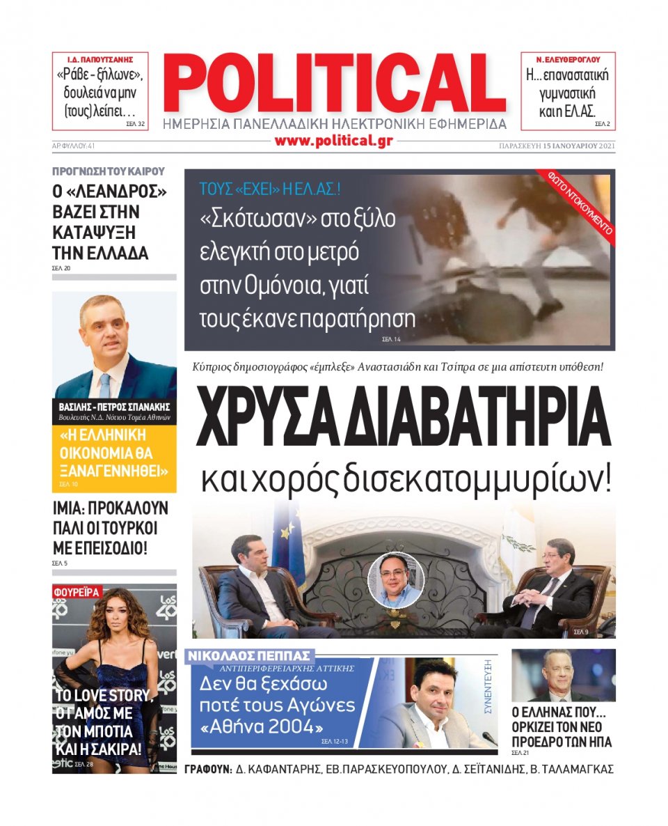 Διαβάστε όλα τα πρωτοσέλιδα των πολιτικών εφημερίδων της Παρασκευής 15 Ιανουαρίου. Πλήρης ενημέρωση με μια γρήγορη ματιά!