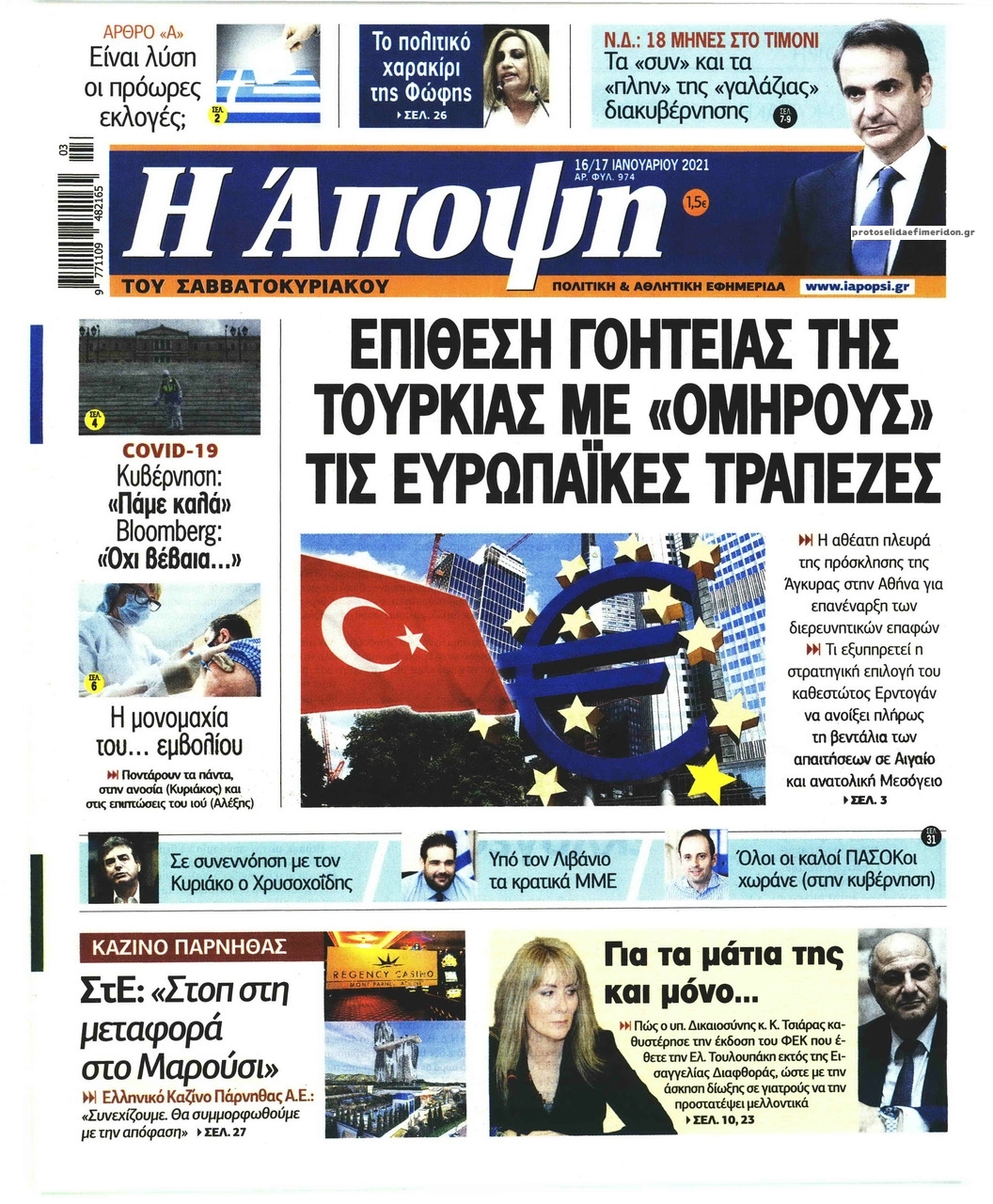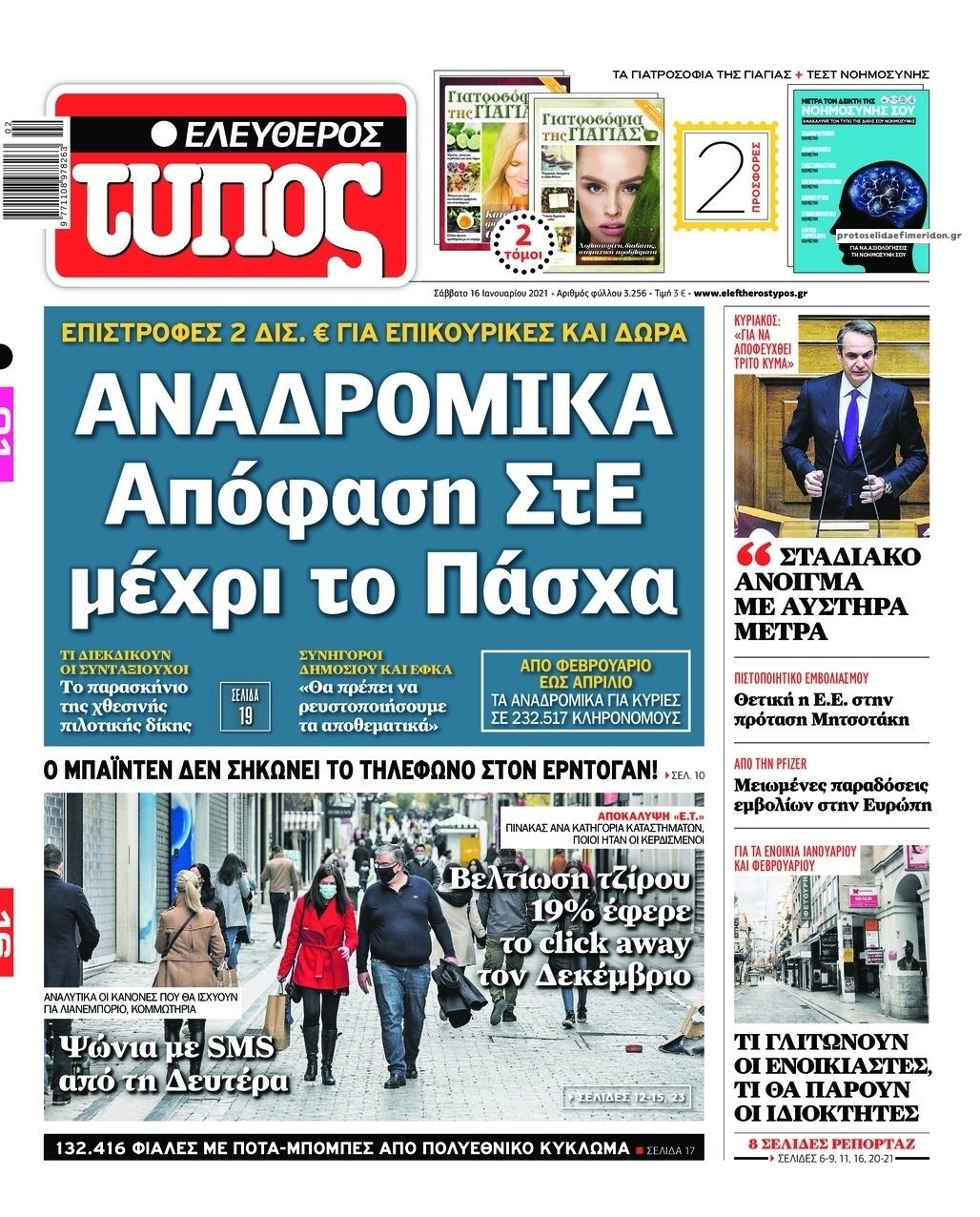 NewsMEDIASLIDER Διαβάστε όλα τα πρωτοσέλιδα των πολιτικών εφημερίδων του Σαββάτου 16 Ιανουαρίου 2021 FacebookXEmailViberWhatsAppCopy URLΤυπώνω Διαβάστε όλα τα πρωτοσέλιδα των πολιτικών εφημερίδων του Σαββάτου 16 Ιανουαρίου. Πλήρης ενημέρωση με μια γρήγορη ματιά!