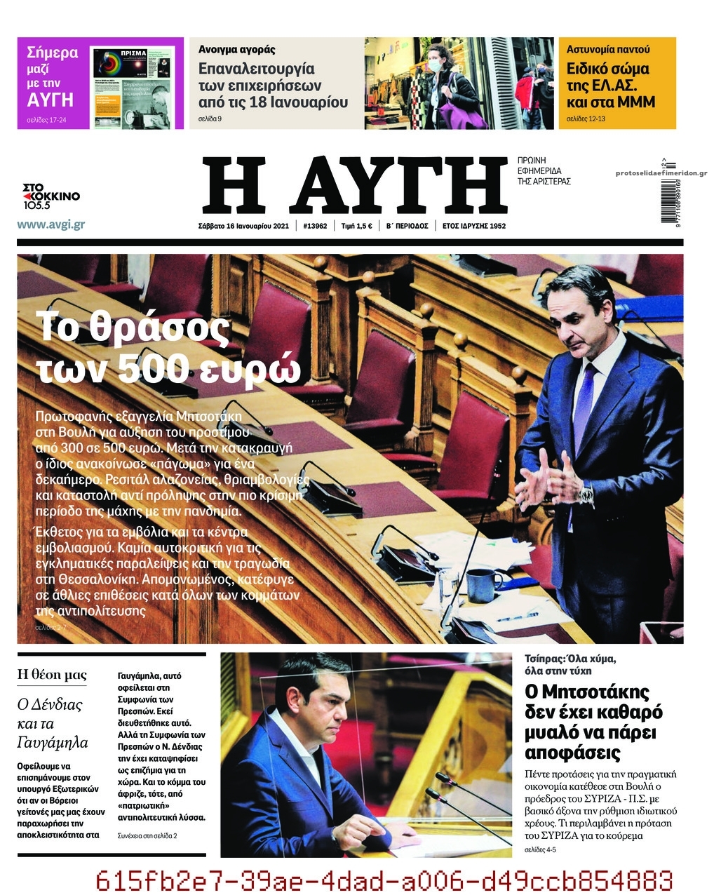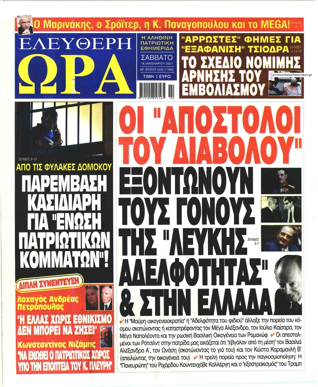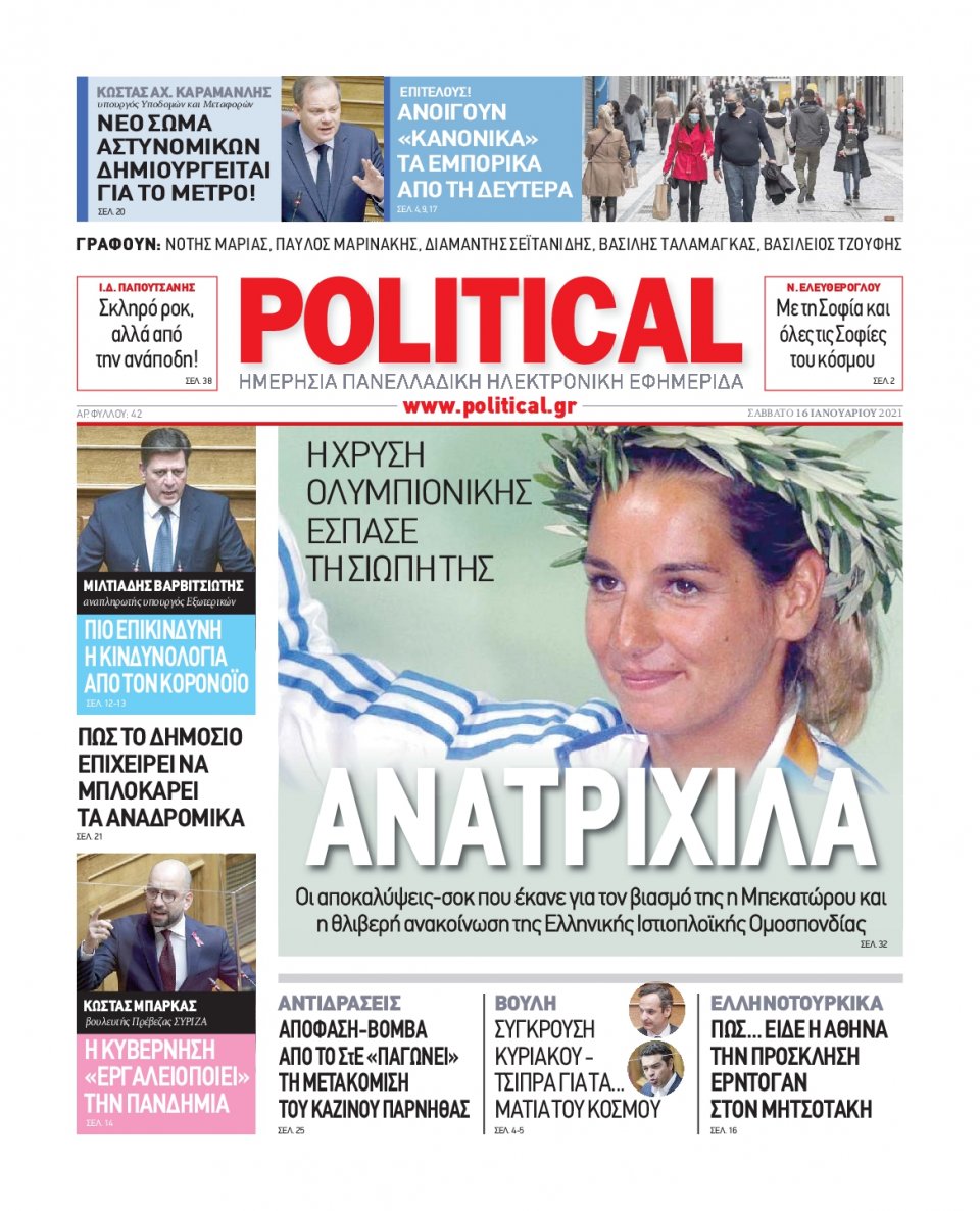 NewsMEDIASLIDER Διαβάστε όλα τα πρωτοσέλιδα των πολιτικών εφημερίδων του Σαββάτου 16 Ιανουαρίου 2021 FacebookTwitterEmailViberWhatsAppCopy URLΤυπώνω Διαβάστε όλα τα πρωτοσέλιδα των πολιτικών εφημερίδων του Σαββάτου 16 Ιανουαρίου. Πλήρης ενημέρωση με μια γρήγορη ματιά!