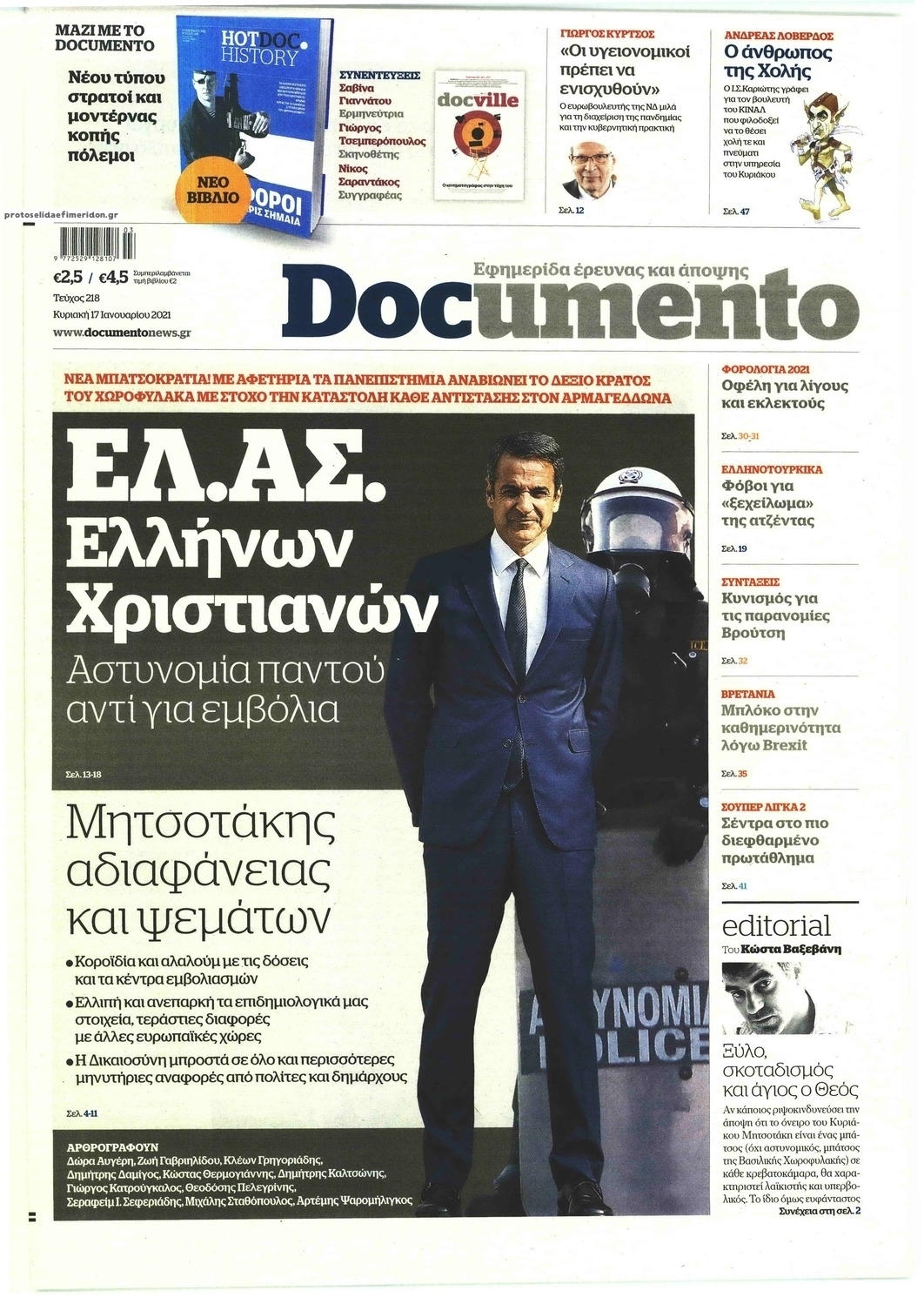 NewsMEDIASLIDER Διαβάστε όλα τα πρωτοσέλιδα των πολιτικών εφημερίδων της Κυριακής 17 Ιανουαρίου 2021 FacebookTwitterEmailViberWhatsAppCopy URLΤυπώνω Διαβάστε όλα τα πρωτοσέλιδα των πολιτικών εφημερίδων της Κυριακής 17 Ιανουαρίου. Πλήρης ενημέρωση με μια γρήγορη ματιά!