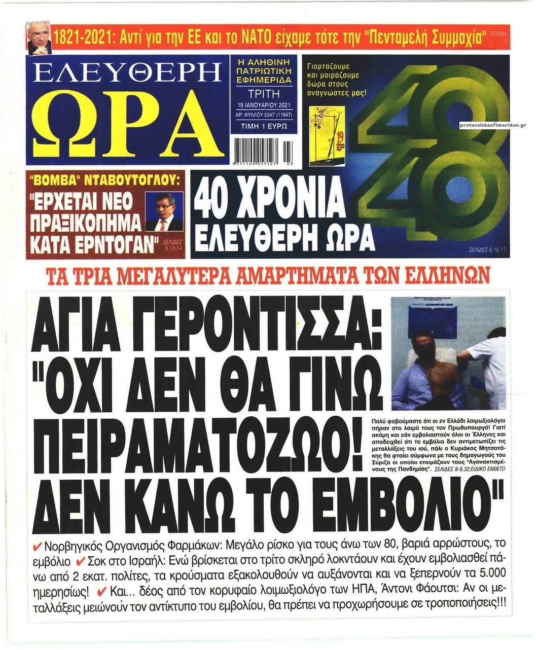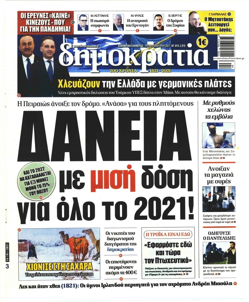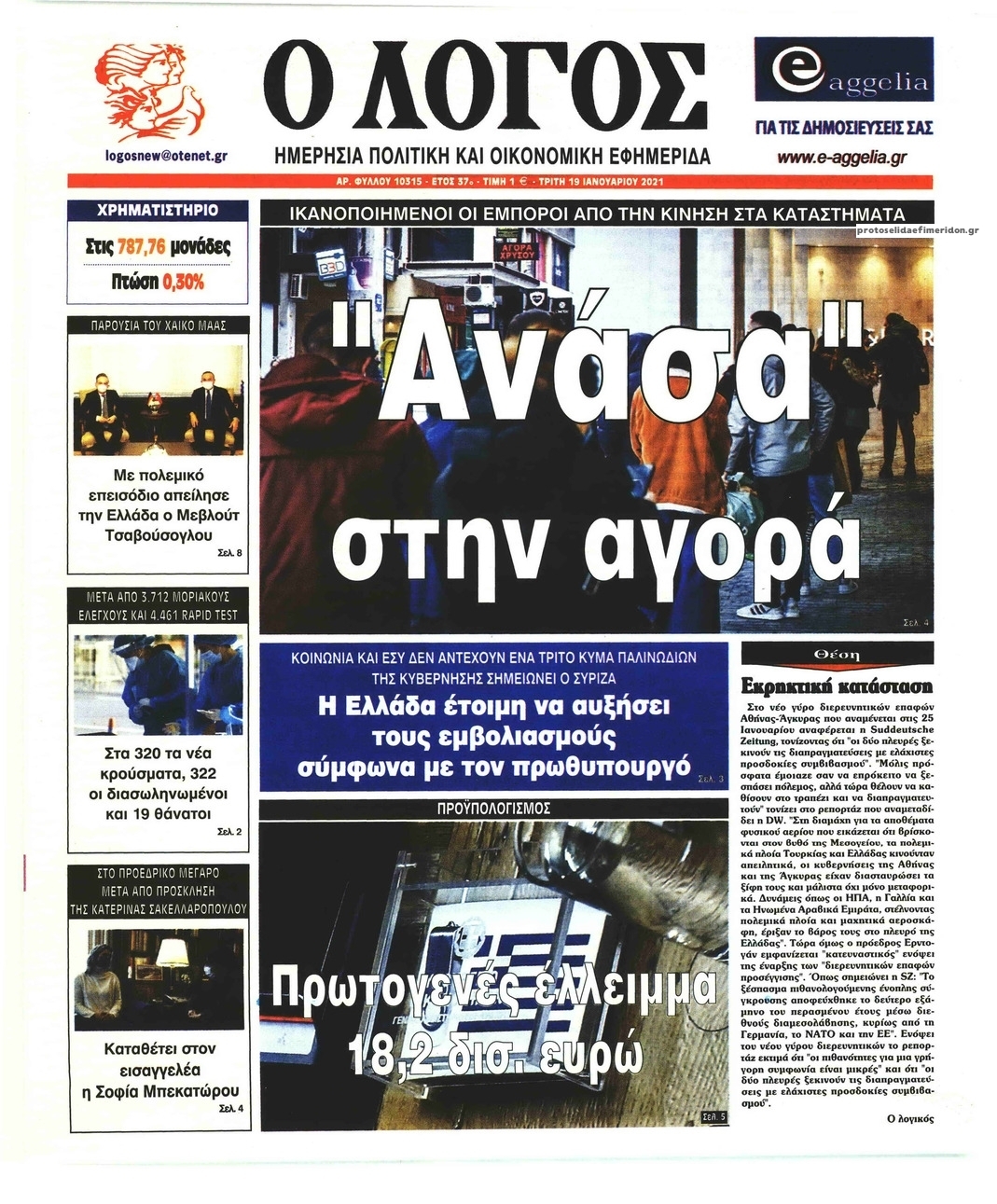 NewsMEDIASLIDER Διαβάστε όλα τα πρωτοσέλιδα των πολιτικών εφημερίδων της Τρίτης 19 Ιανουαρίου 2021 FacebookTwitterEmailViberWhatsAppCopy URLΤυπώνω Διαβάστε όλα τα πρωτοσέλιδα των πολιτικών εφημερίδων της Τρίτης 19 Ιανουαρίου. Πλήρης ενημέρωση με μια γρήγορη ματιά!