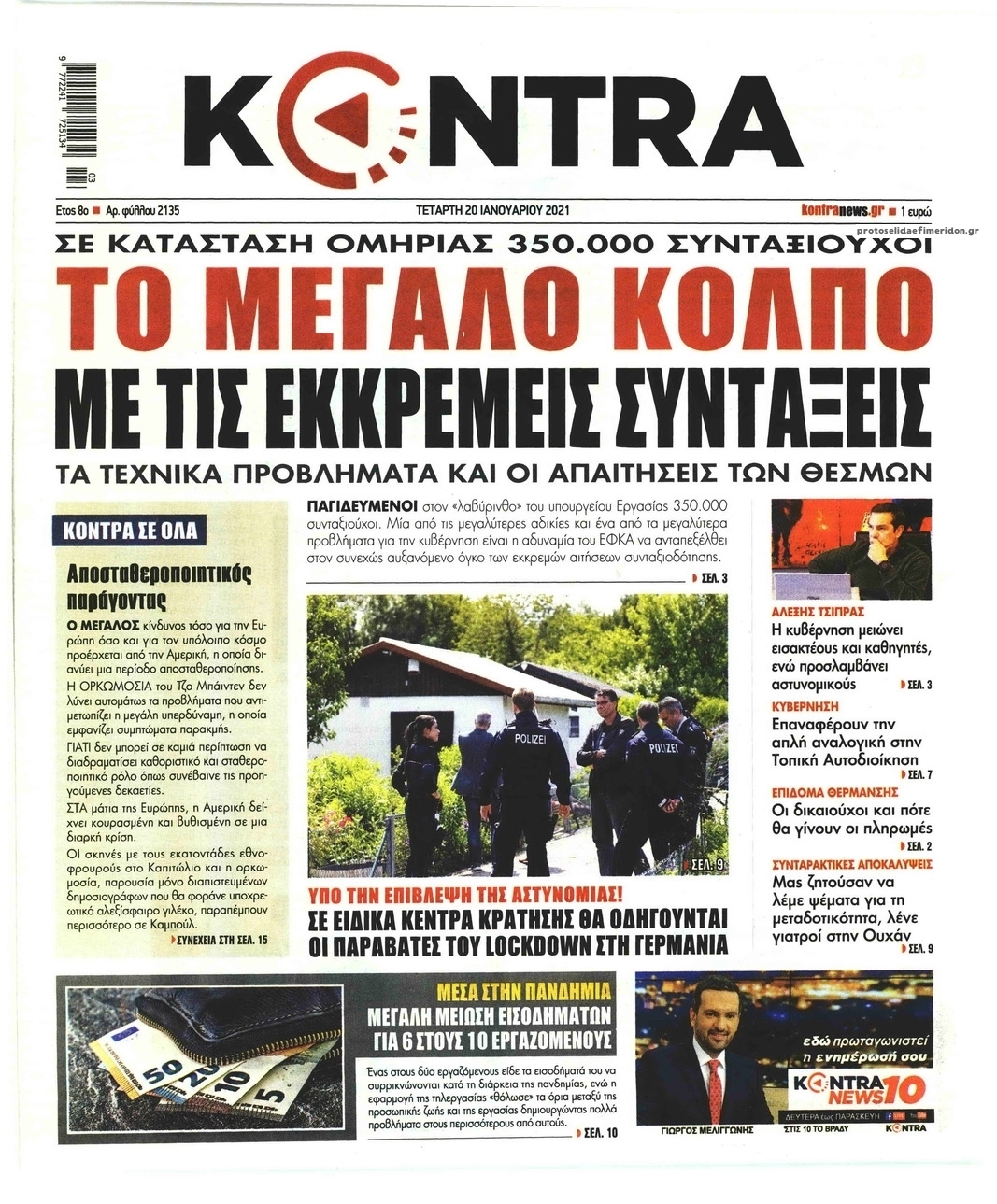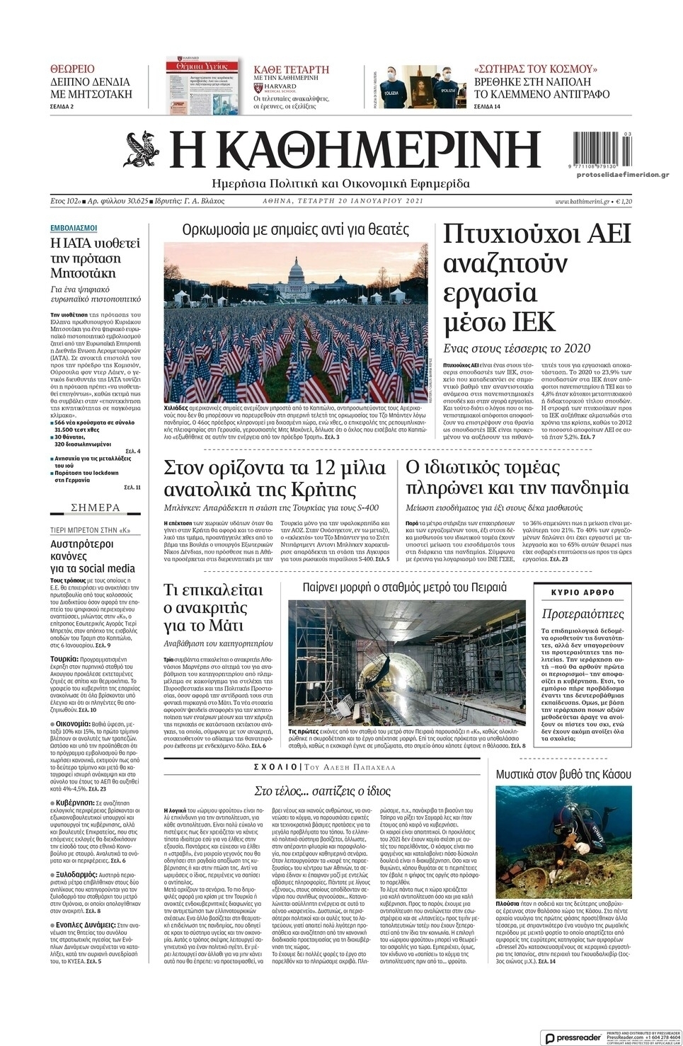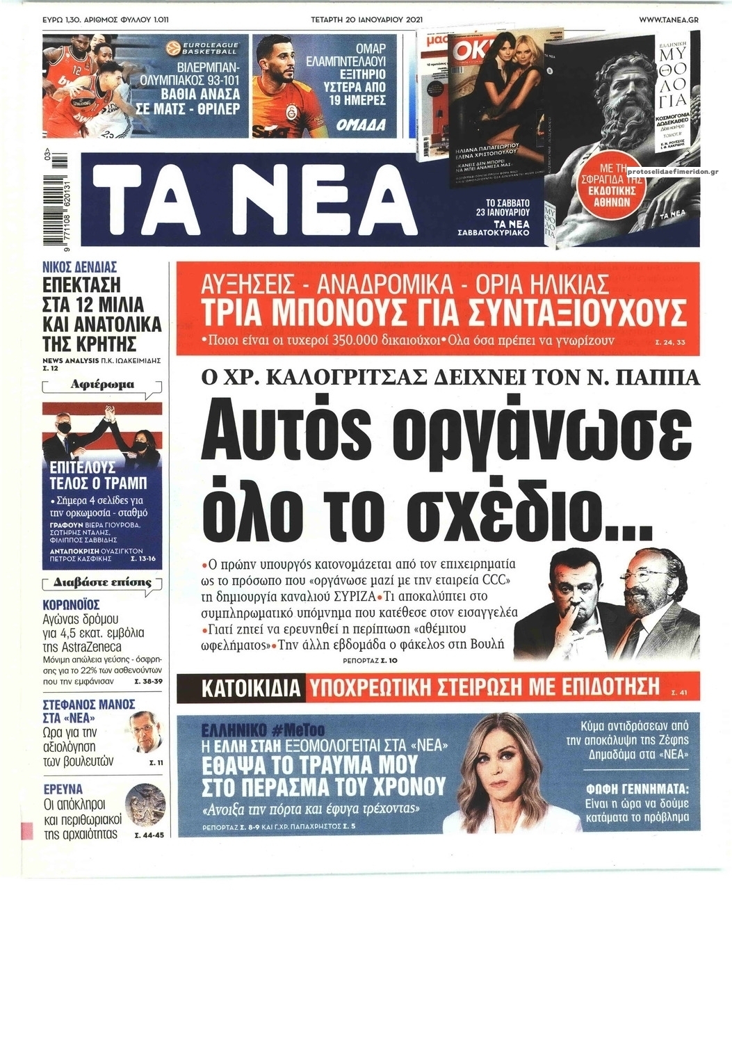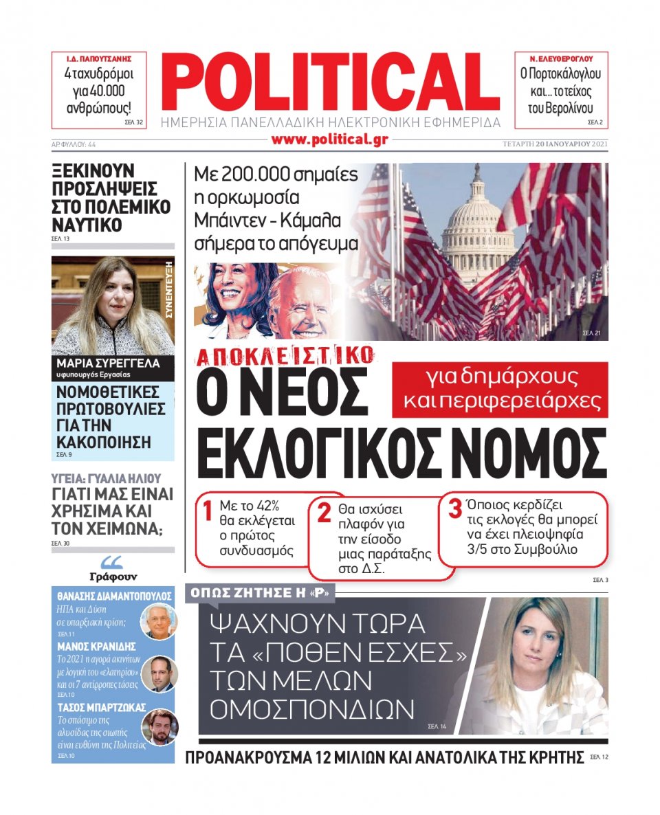 NewsMEDIASLIDER Διαβάστε όλα τα πρωτοσέλιδα των πολιτικών εφημερίδων της Τετάρτης 20 Ιανουαρίου 2021 FacebookTwitterEmailViberWhatsAppCopy URLΤυπώνω Διαβάστε όλα τα πρωτοσέλιδα των πολιτικών εφημερίδων της Τετάρτης 20 Ιανουαρίου. Πλήρης ενημέρωση με μια γρήγορη ματιά!