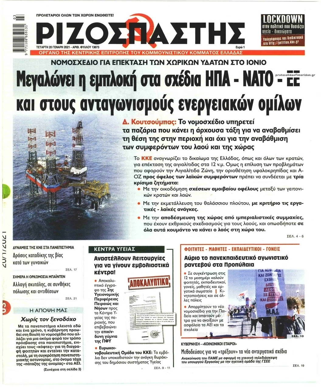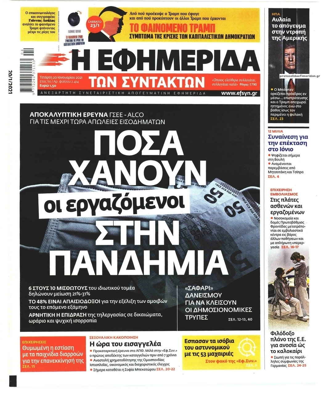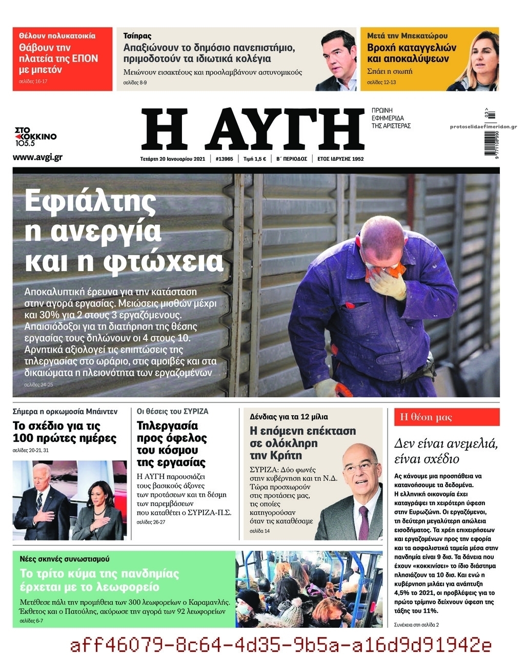 NewsMEDIASLIDER Διαβάστε όλα τα πρωτοσέλιδα των πολιτικών εφημερίδων της Τετάρτης 20 Ιανουαρίου 2021 FacebookTwitterEmailViberWhatsAppCopy URLΤυπώνω Διαβάστε όλα τα πρωτοσέλιδα των πολιτικών εφημερίδων της Τετάρτης 20 Ιανουαρίου. Πλήρης ενημέρωση με μια γρήγορη ματιά!