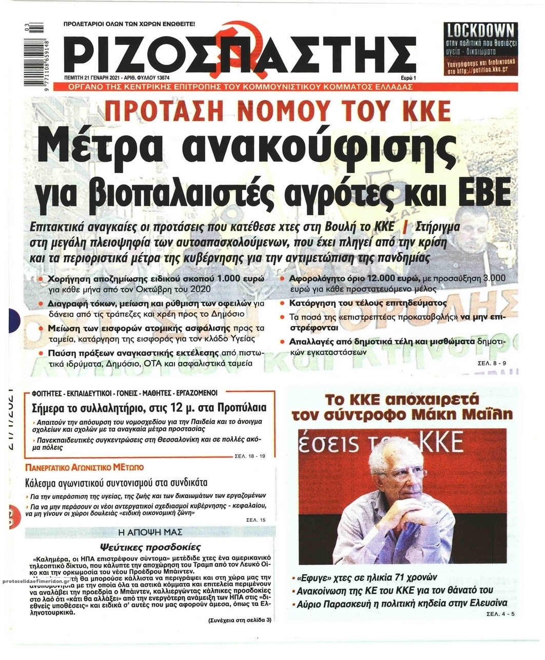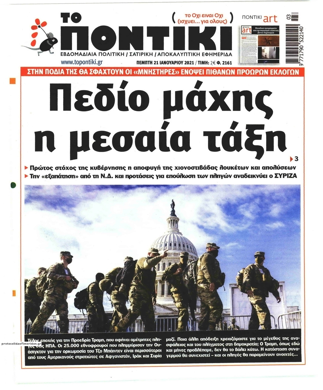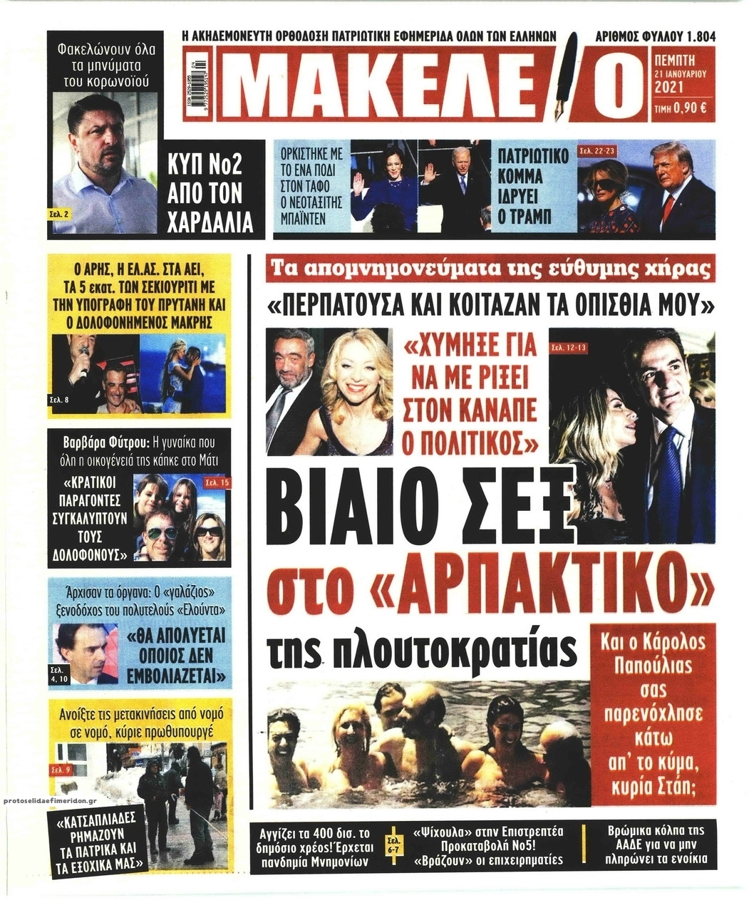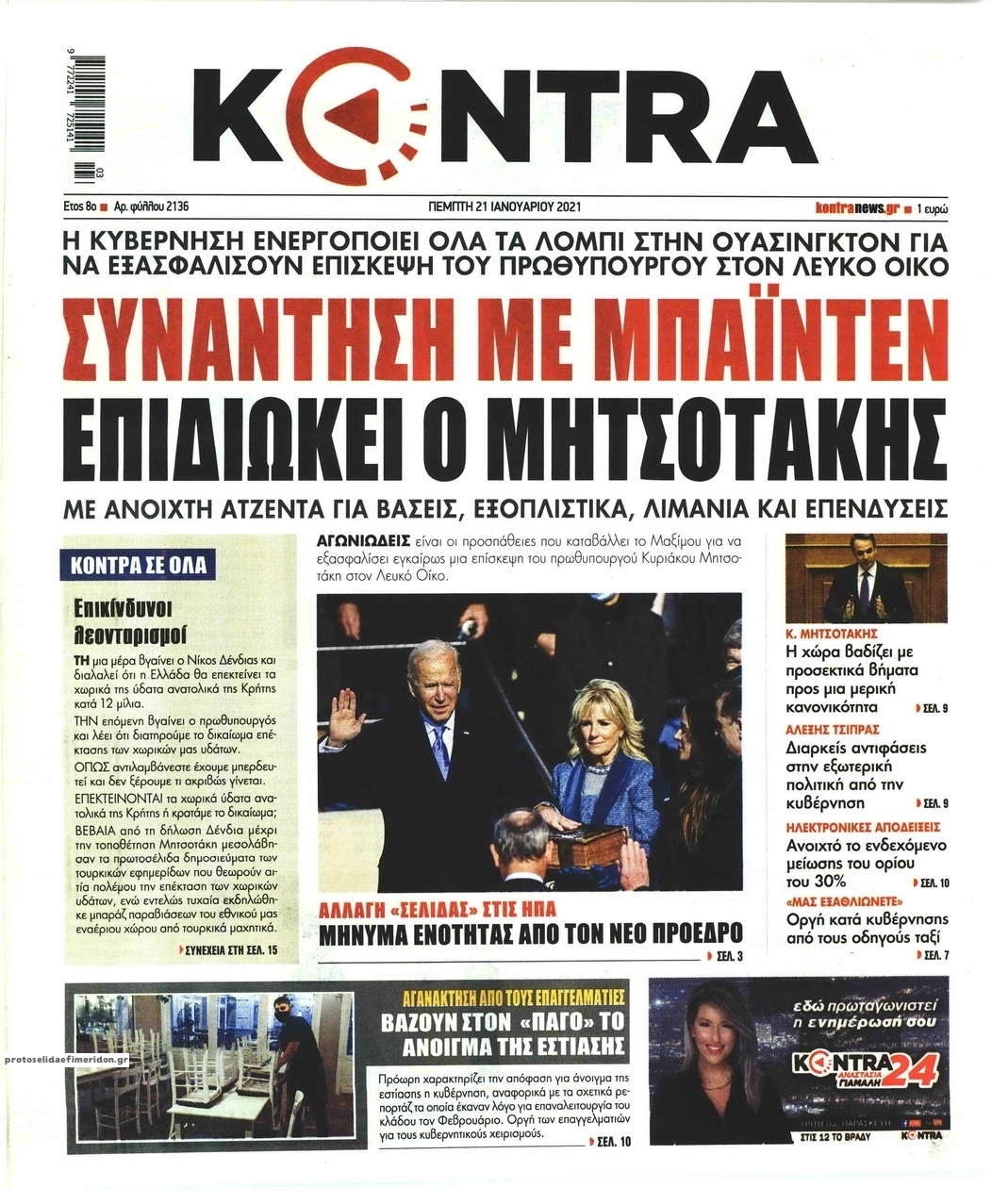 NewsMEDIASLIDER Διαβάστε όλα τα πρωτοσέλιδα των πολιτικών εφημερίδων της Πέμπτης 21 Ιανουαρίου 2021 FacebookTwitterEmailViberWhatsAppCopy URLΤυπώνω Διαβάστε όλα τα πρωτοσέλιδα των πολιτικών εφημερίδων της Πέμπτης 21 Ιανουαρίου. Πλήρης ενημέρωση με μια γρήγορη ματιά!