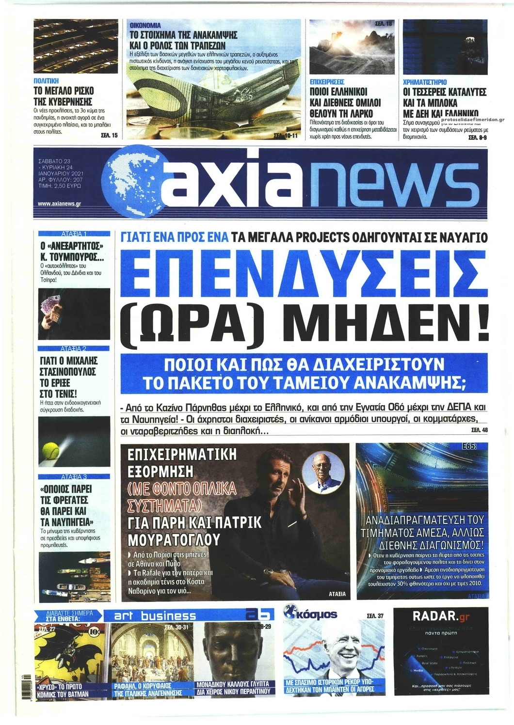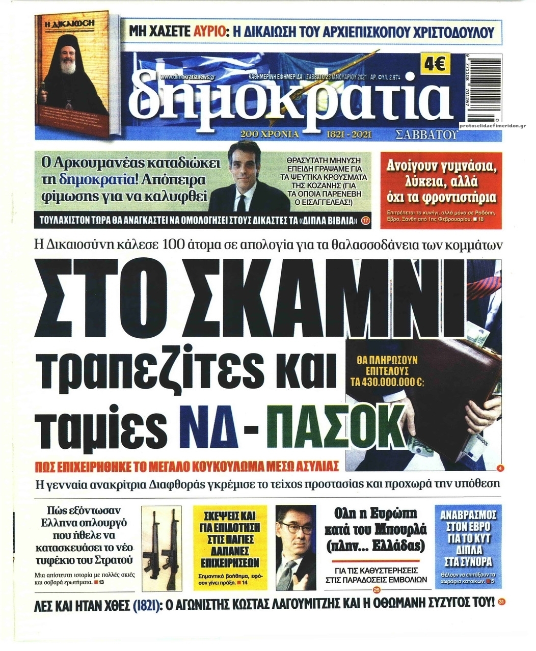 NewsMEDIA Διαβάστε όλα τα πρωτοσέλιδα των πολιτικών εφημερίδων του Σαββάτου 23 Ιανουαρίου 2021 FacebookTwitterEmailViberWhatsAppCopy URLΤυπώνω Διαβάστε όλα τα πρωτοσέλιδα των πολιτικών εφημερίδων του Σαββάτου 23 Ιανουαρίου. Πλήρης ενημέρωση με μια γρήγορη ματιά!