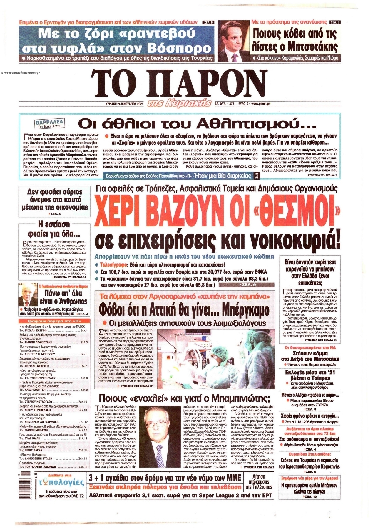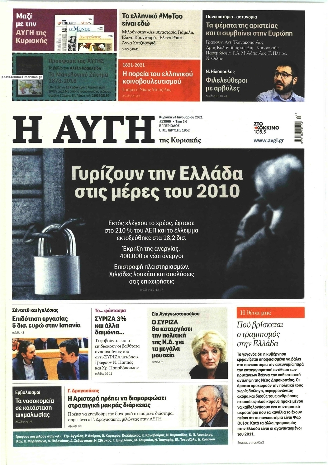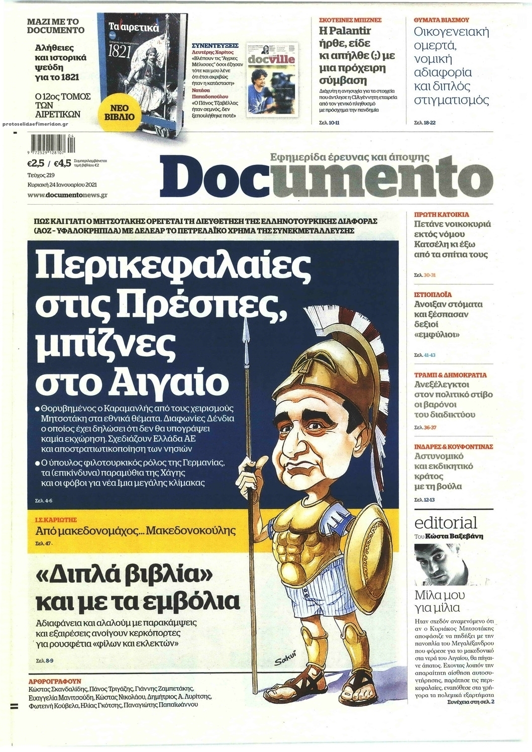 NewsMEDIASLIDER Διαβάστε όλα τα πρωτοσέλιδα των πολιτικών εφημερίδων της Κυριακής 24 Ιανουαρίου 2021 FacebookTwitterEmailViberWhatsAppCopy URLΤυπώνω Διαβάστε όλα τα πρωτοσέλιδα των πολιτικών εφημερίδων της Κυριακής 24 Ιανουαρίου. Πλήρης ενημέρωση με μια γρήγορη ματιά!