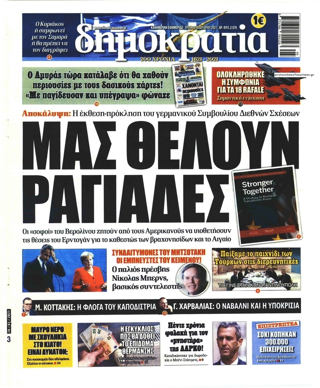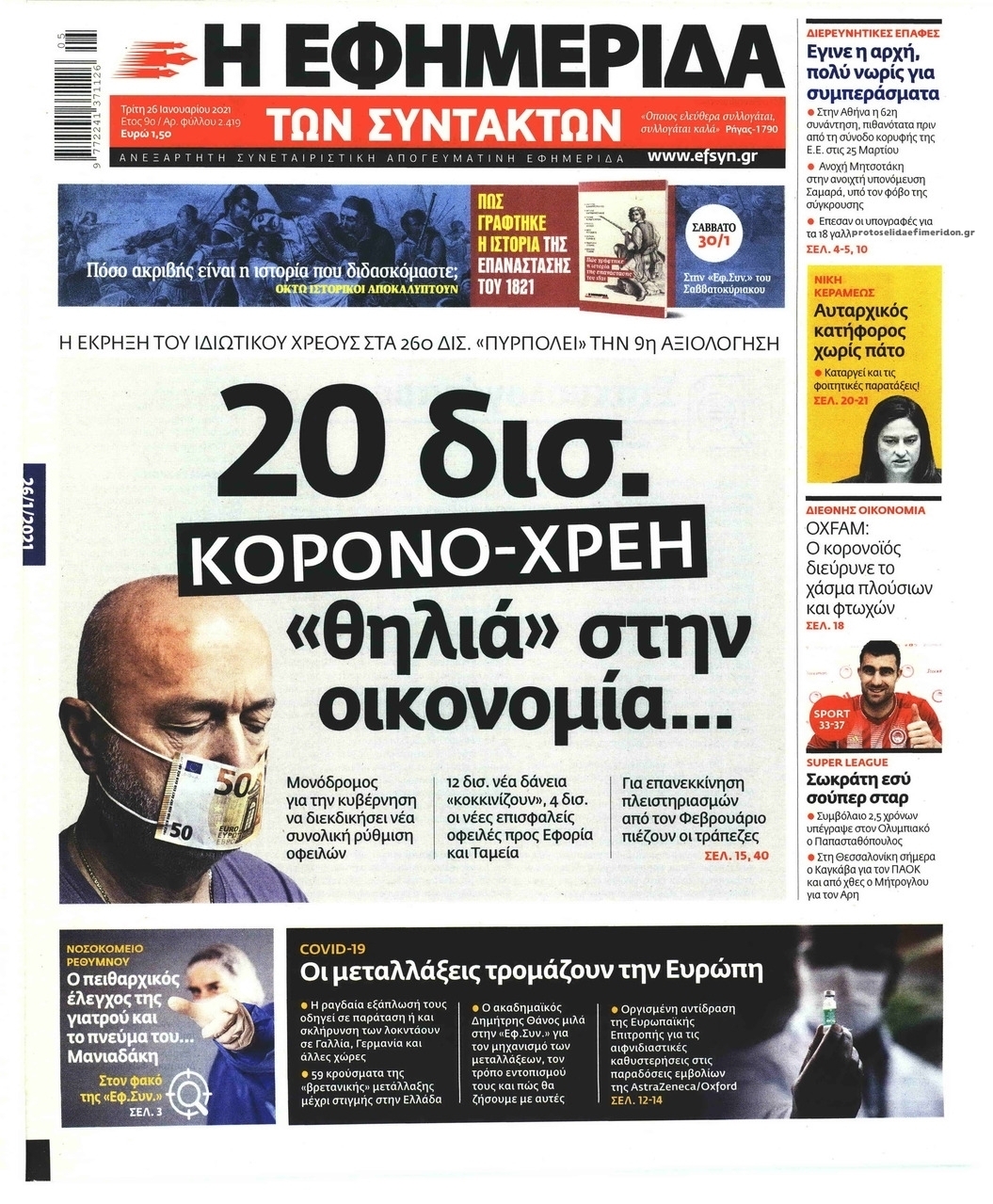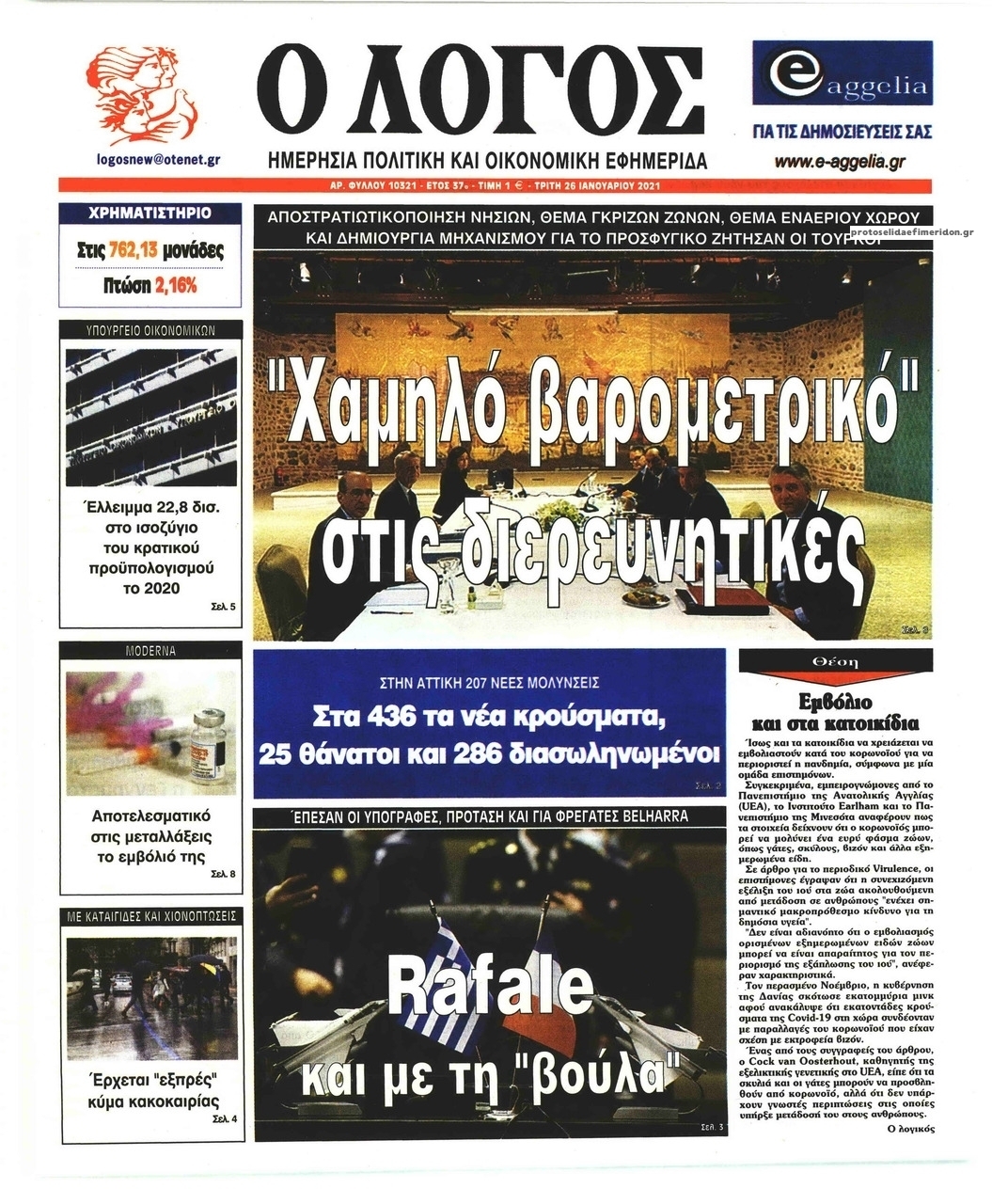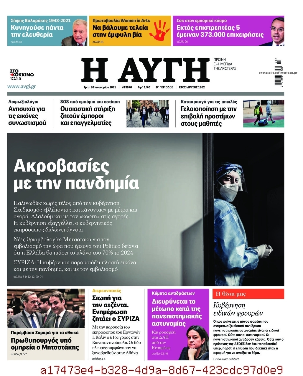 NewsMEDIA Διαβάστε όλα τα πρωτοσέλιδα των πολιτικών εφημερίδων της Τρίτης 26 Ιανουαρίου 2021 FacebookTwitterEmailViberWhatsAppCopy URLΤυπώνω Διαβάστε όλα τα πρωτοσέλιδα των πολιτικών εφημερίδων της Τρίτης 26 Ιανουαρίου. Πλήρης ενημέρωση με μια γρήγορη ματιά!